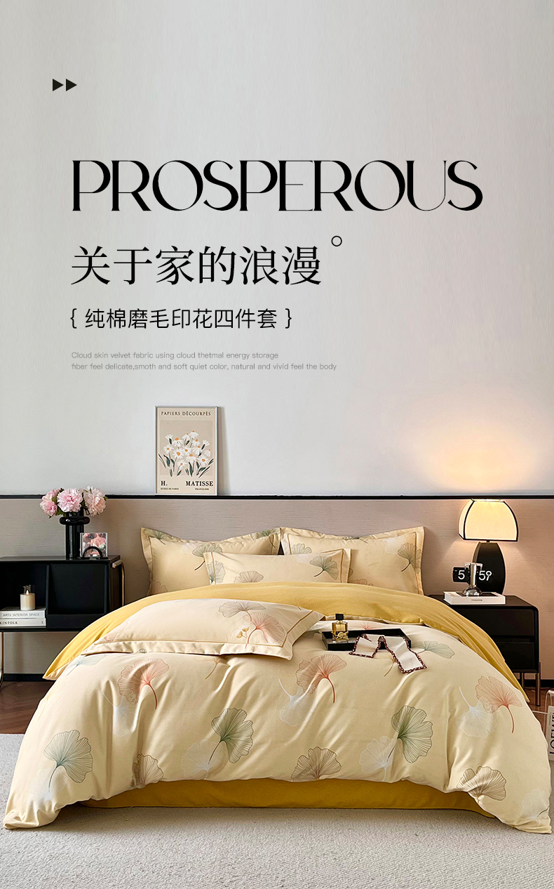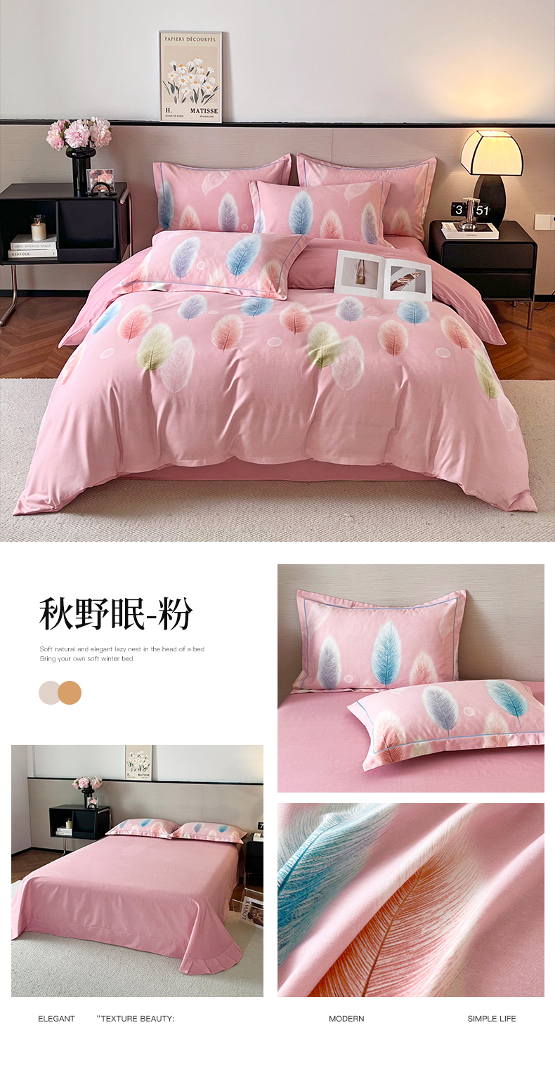 当前位置: 91家纺网 > 商品网购 > 床品套件 > 四件套 > 全棉普通四件套 > 帛美家纺 2025年新款加厚纯棉全棉磨毛印花四件套 一叶知秋