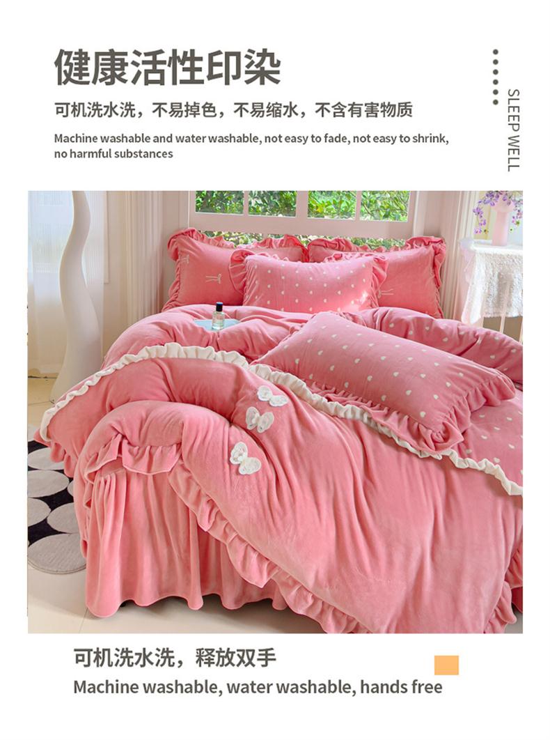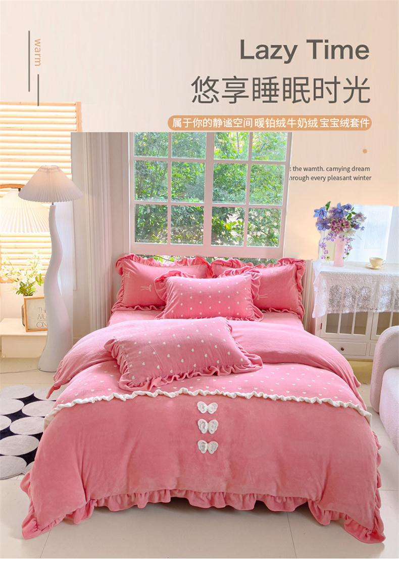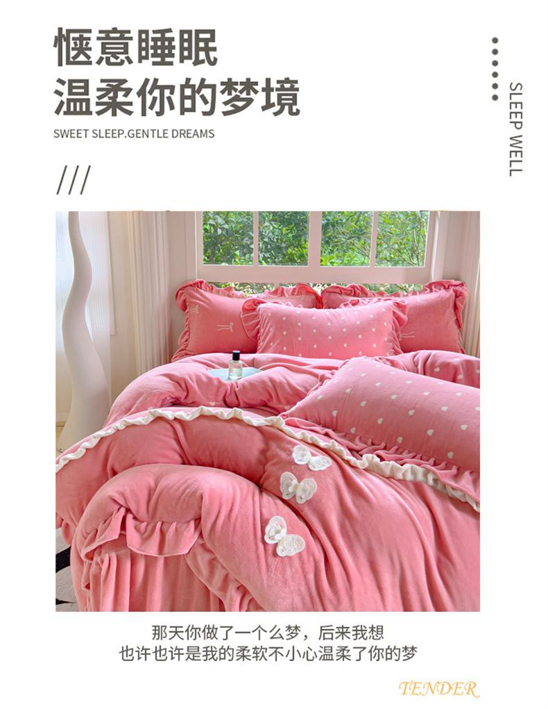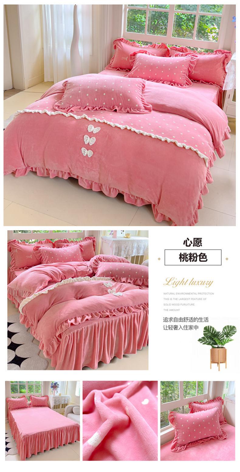 当前位置: 91家纺网 > 商品网购 > 床品套件 > 四件套 > 牛奶绒四件套 > (总)睡美人 2025韩版暖铂绒牛奶绒花边床裙床笠床单款四件套