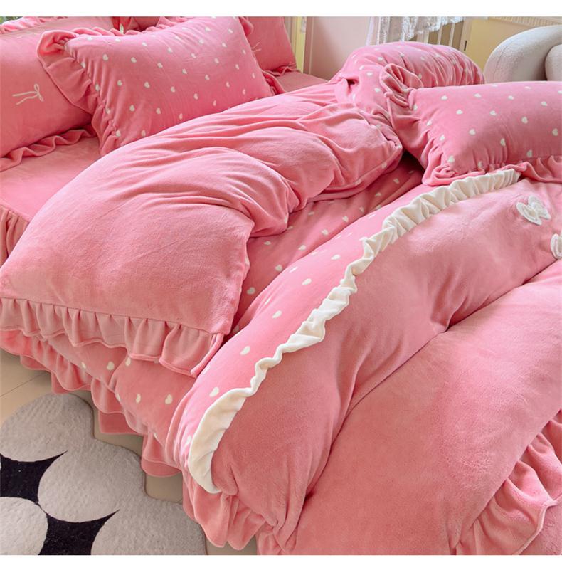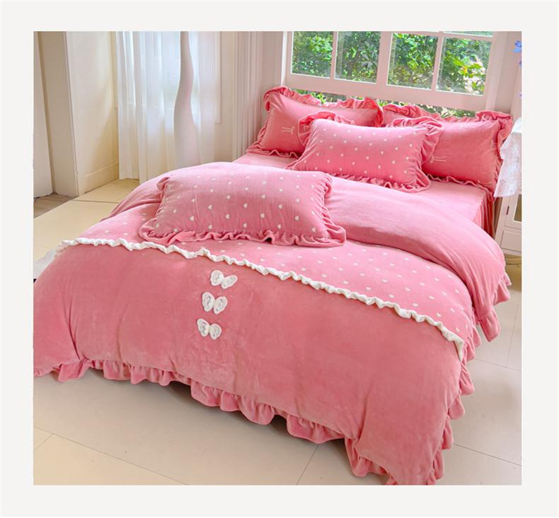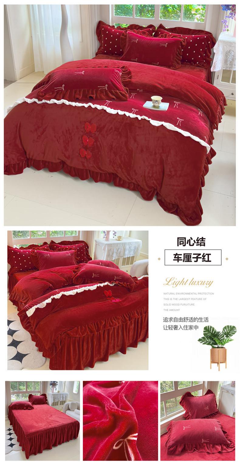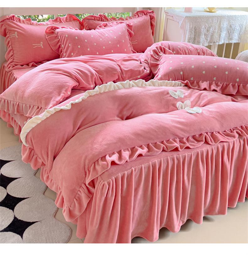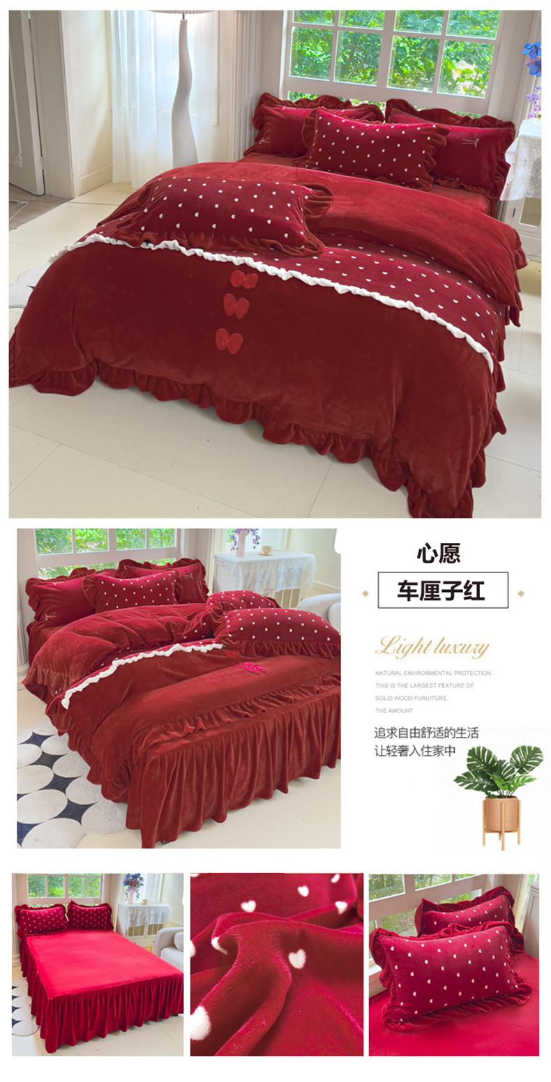当前位置: 91家纺网 > 商品网购 > 床品套件 > 四件套 > 牛奶绒四件套 > (总)睡美人 2025韩版暖铂绒牛奶绒花边床裙床笠床单款四件套