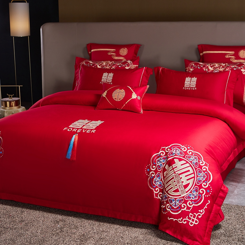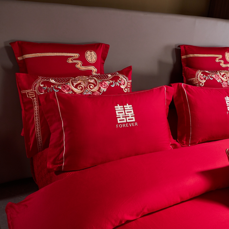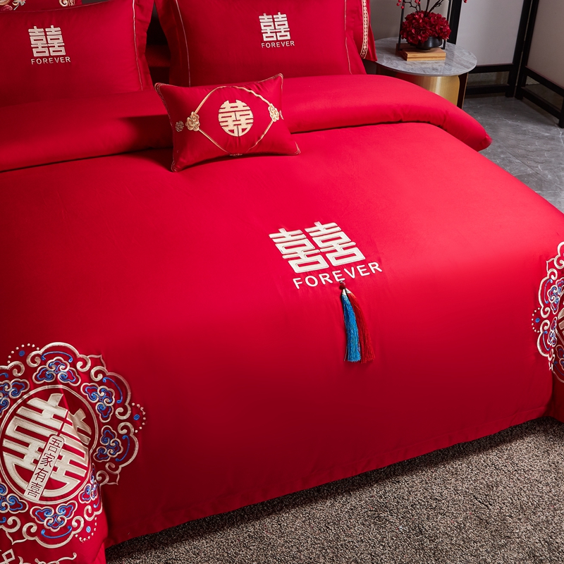 当前位置: 91家纺网 > 商品网购 > 床品套件 > 四件套 > 婚庆四件套 > 布乐意 2025新款全棉长绒棉贡缎提花全工艺喷气重工新中式绣花大红婚庆四件套多件套直播吾家有喜