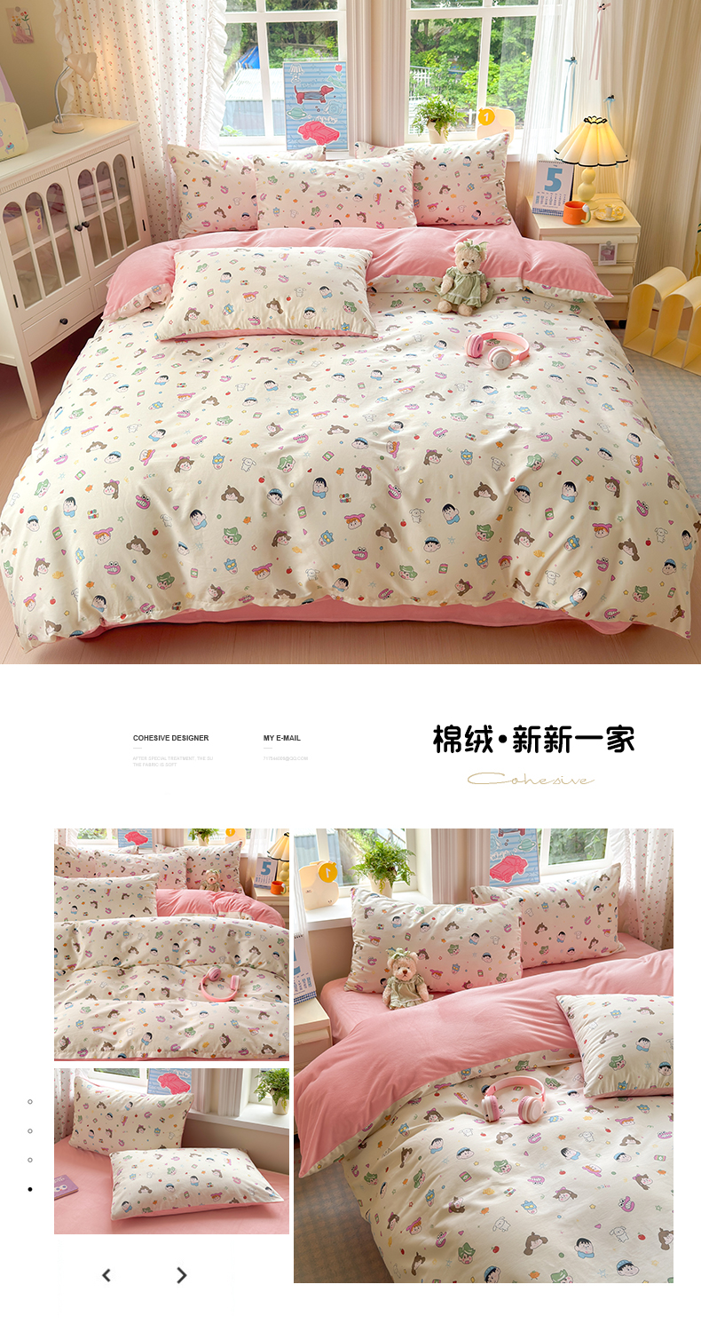 (总)清雅福 2026春夏新款INS小清新40支全棉13372四件套第一批,棒棒糖女孩,春之约定,点点小狗,动物聚会,豆丁小熊,粉心狗,富贵狗,果子象,含羞草,假日小狗