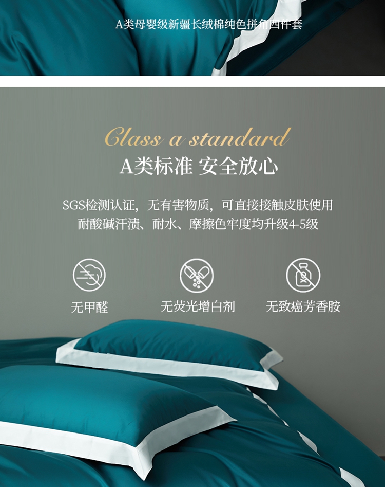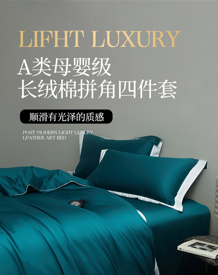 (总)柔觉家纺 新款50*50双股长绒棉纯色拼角四件套,雅-海港蓝,雅-黛绿色,雅-高贵白,雅-活力蓝,雅-牛油果绿,雅-秋波蓝,雅-帝王灰,雅-圣雅银,雅-阳光橙,雅-樱花粉,雅-芝士黄,雅-钻粉色,雅-宾利金,雅-香草粉