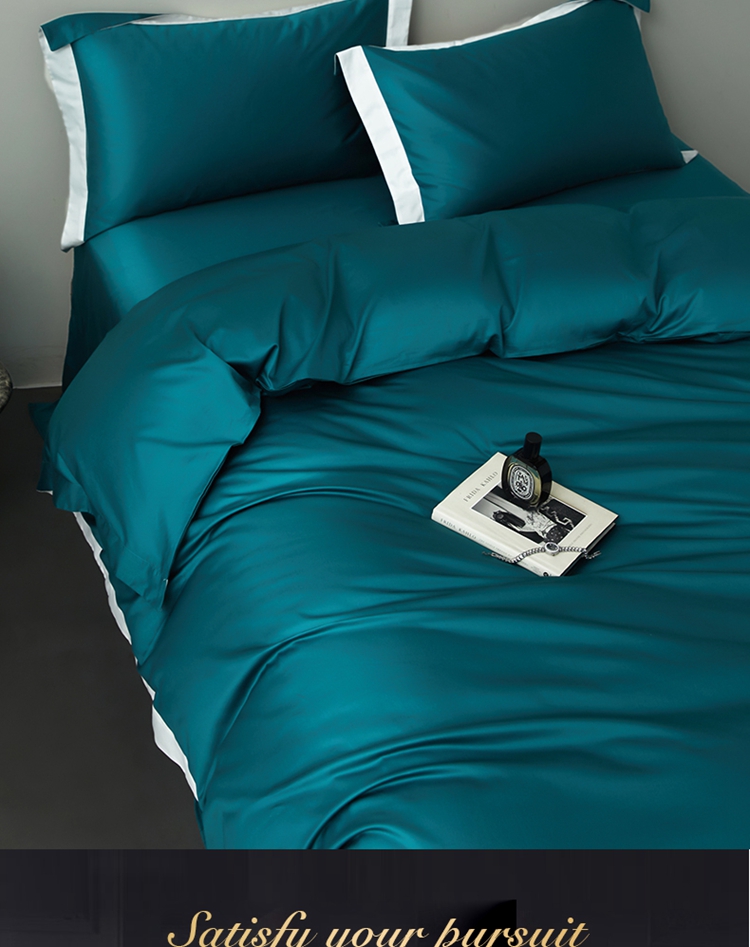 柔觉家纺 新款50*50双股长绒棉纯色拼角四件套 雅-海港蓝