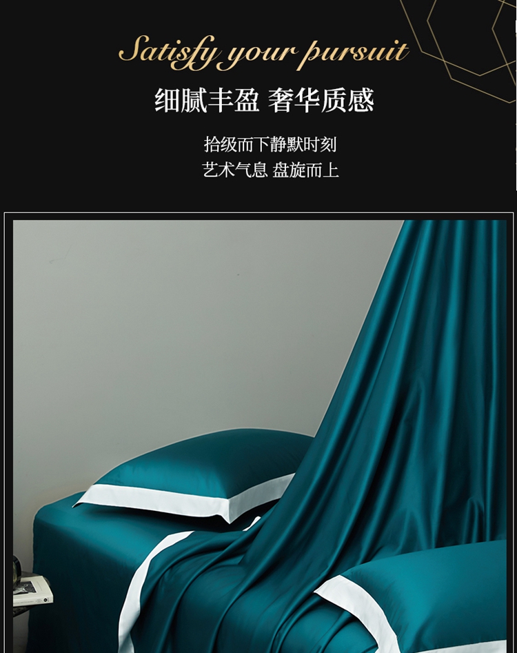 柔觉家纺 天丝刺绣贡缎提花全棉四件套,水汐-绸缎兰