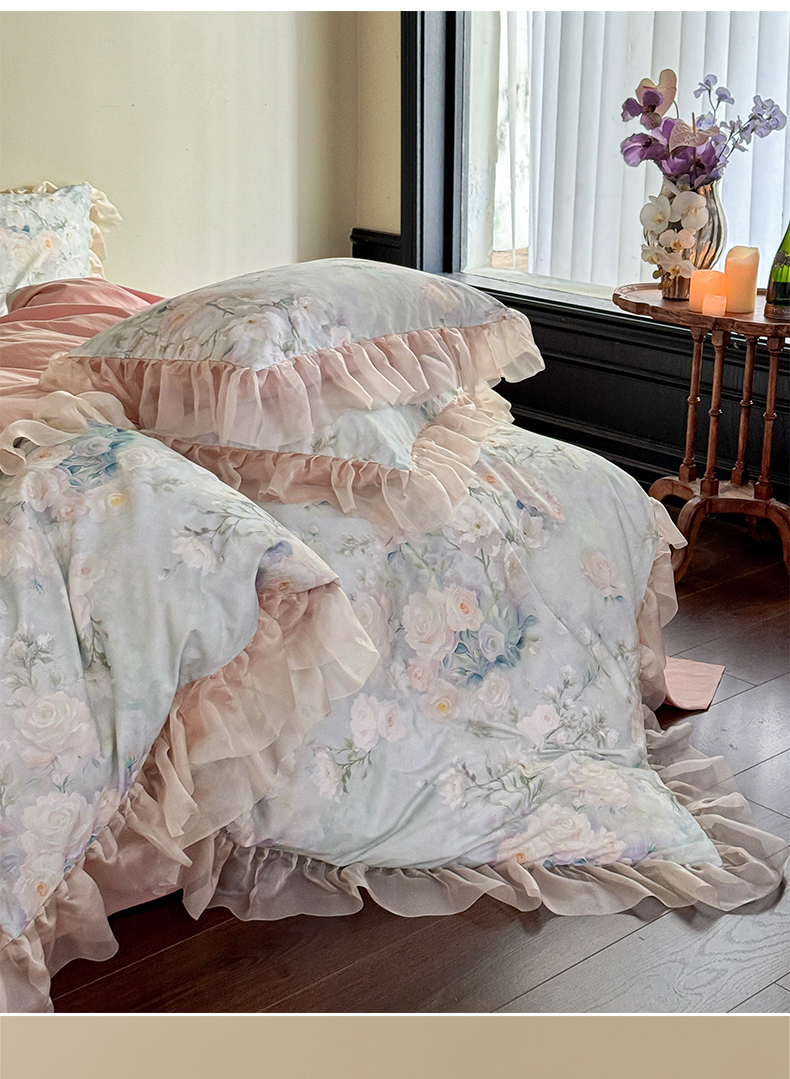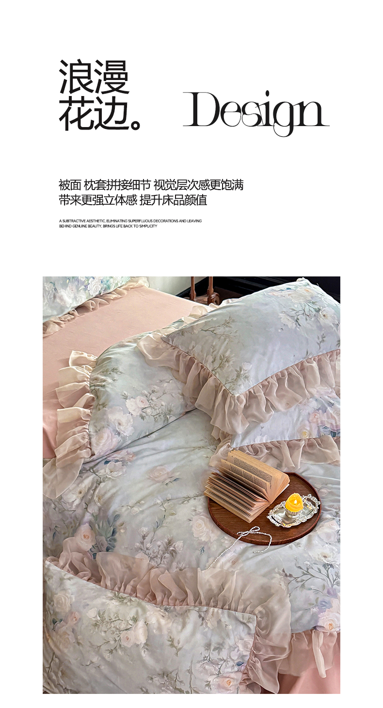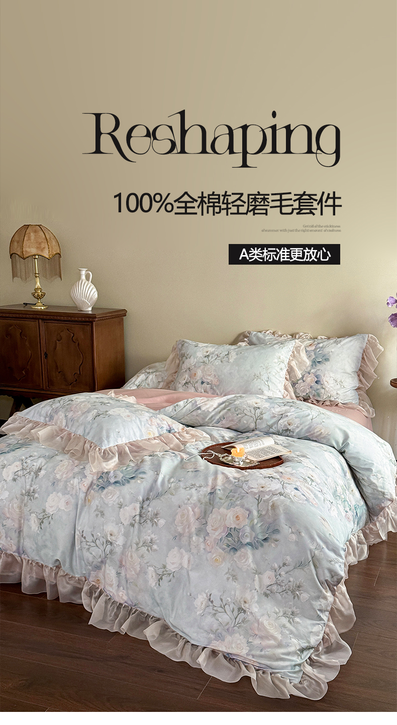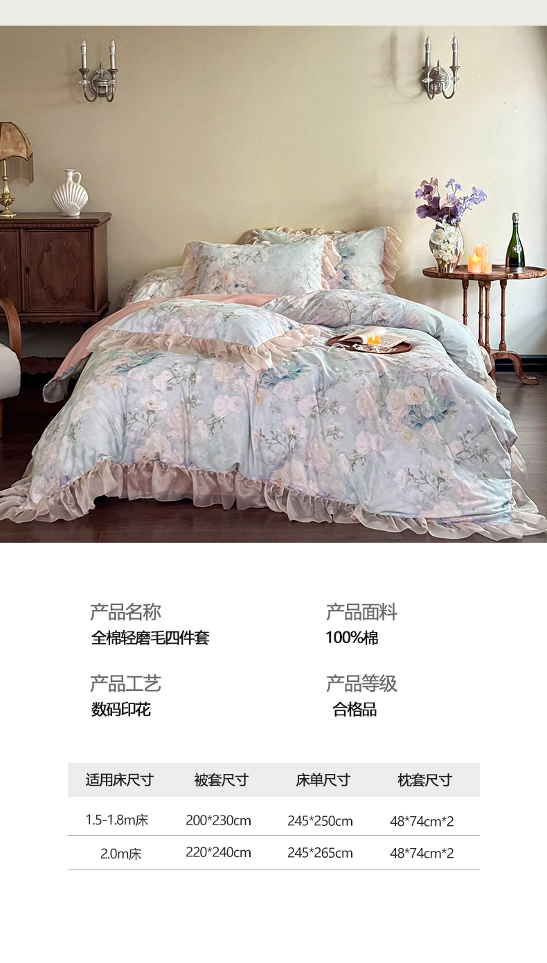 涵宸家纺 2025新款50S全棉磨毛花边四件套【更多花型联系商家电话:17798859966 微信同号,网站:www.hanchenjf.com】 花边-玫瑰庄园