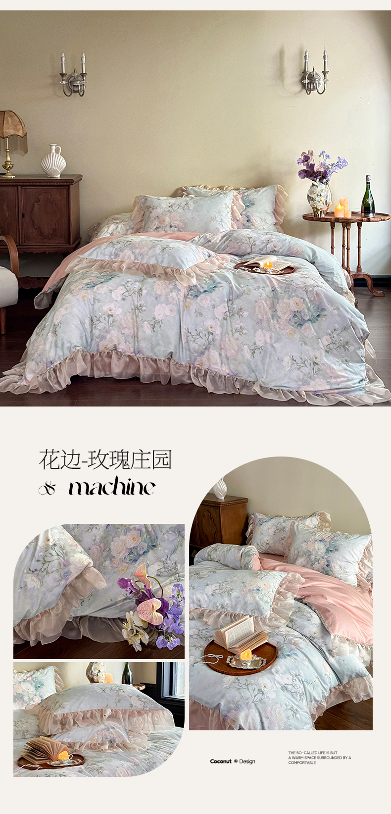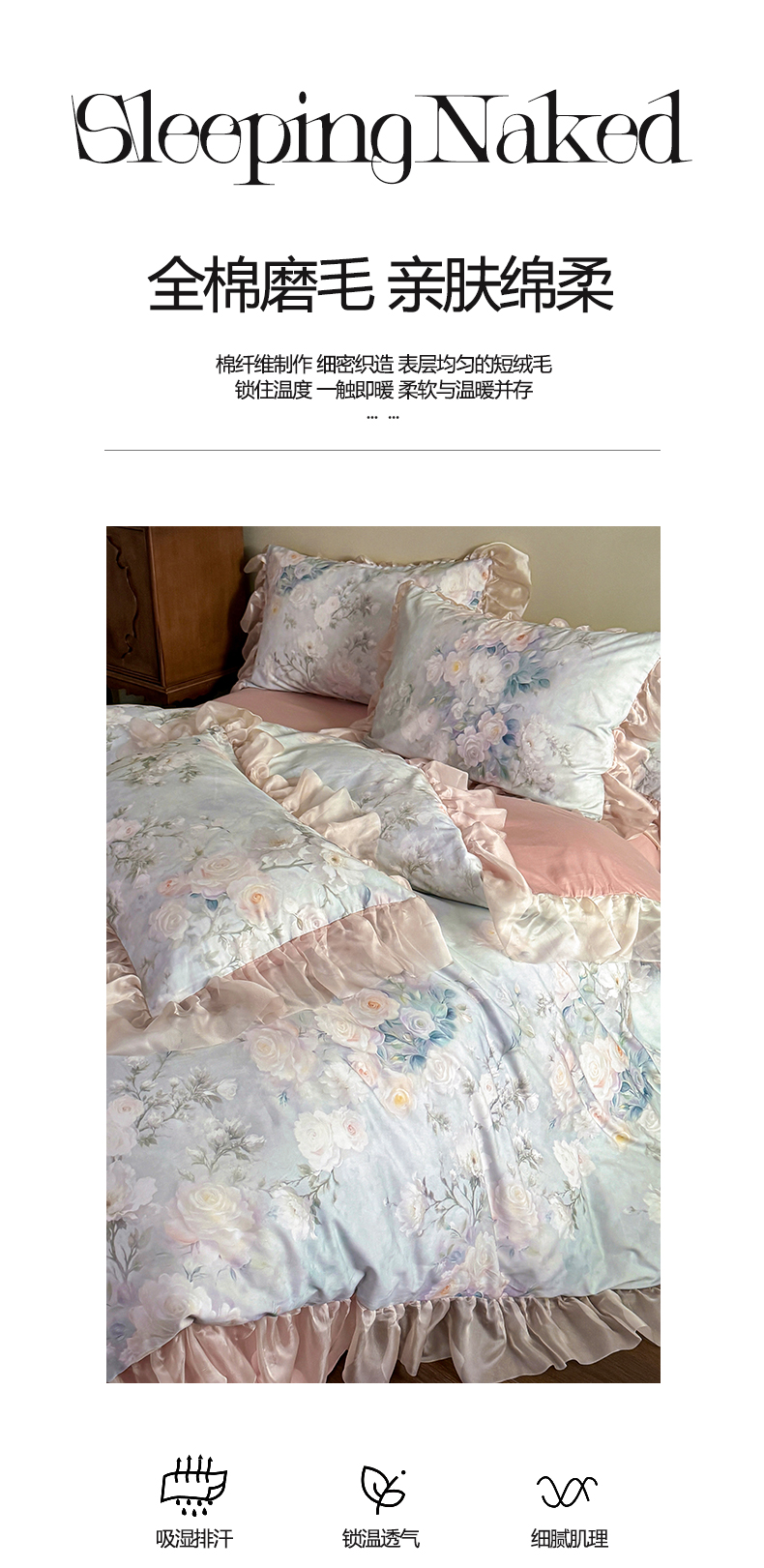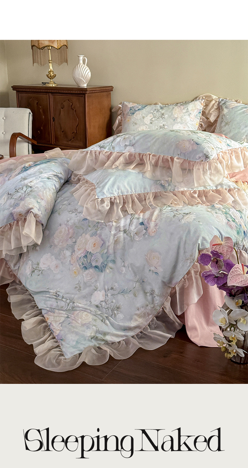涵宸家纺 2025新款50S全棉磨毛花边四件套【更多花型联系商家电话:17798859966 微信同号,网站:www.hanchenjf.com】 花边-玫瑰庄园