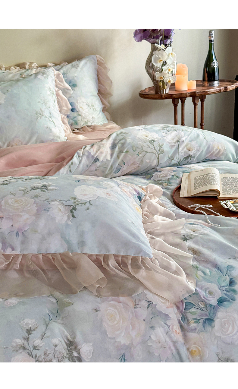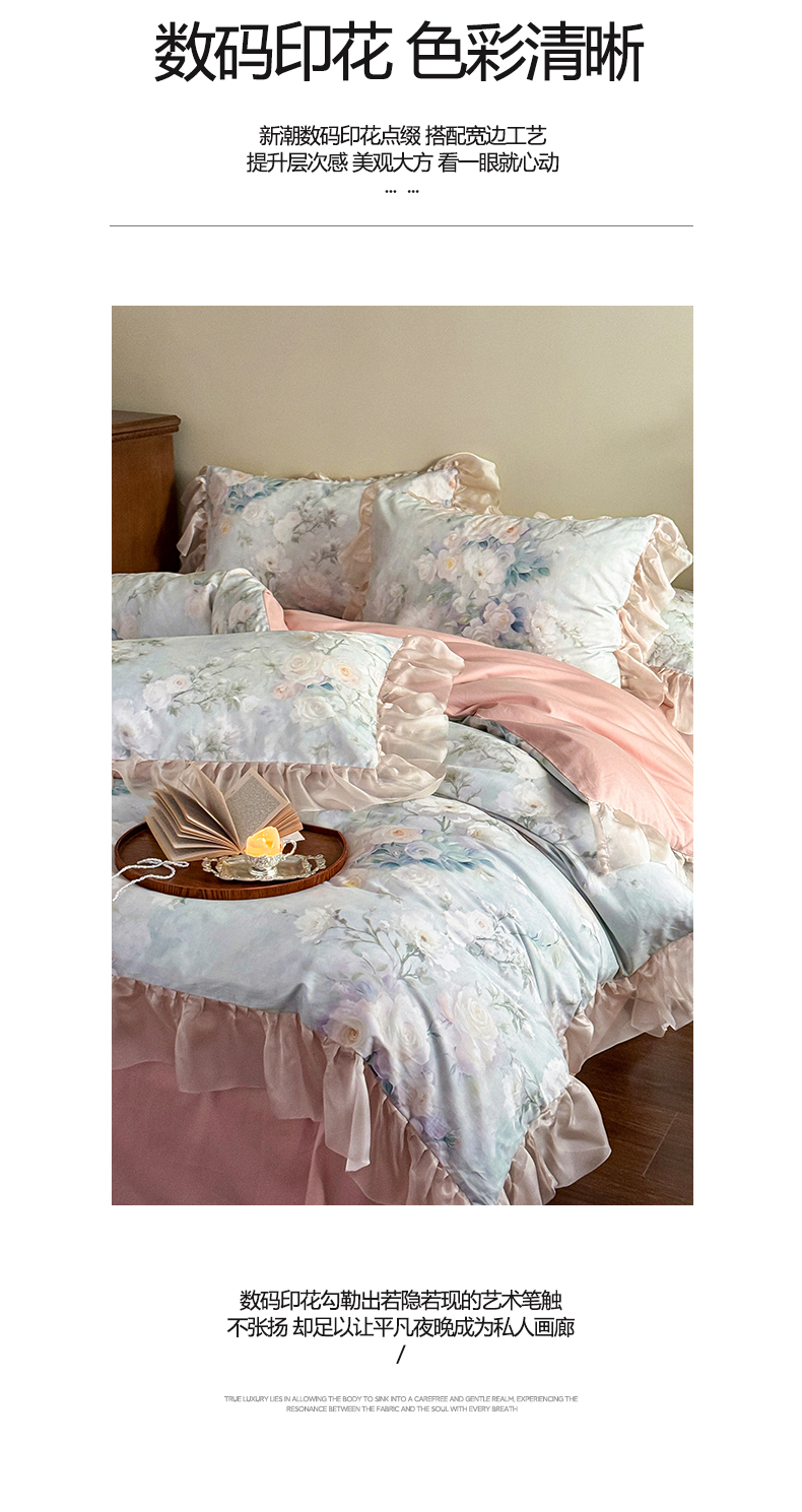 商品名称:涵宸家纺 2025新款50S全棉磨毛花边四件套【更多花型联系商家电话:17798859966 微信同号,网站:www.hanchenjf.com】 花边-玫瑰庄园