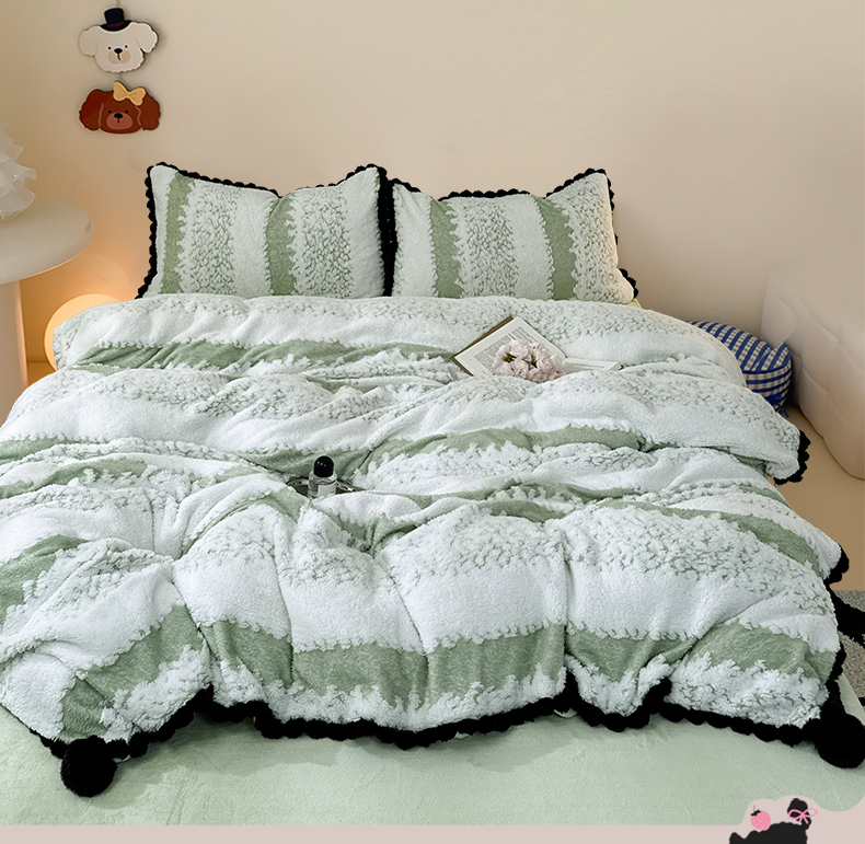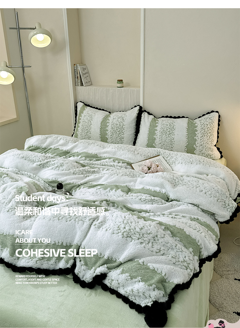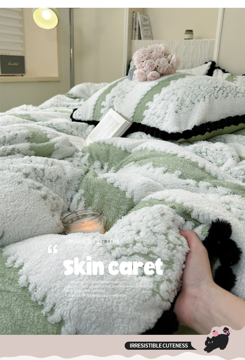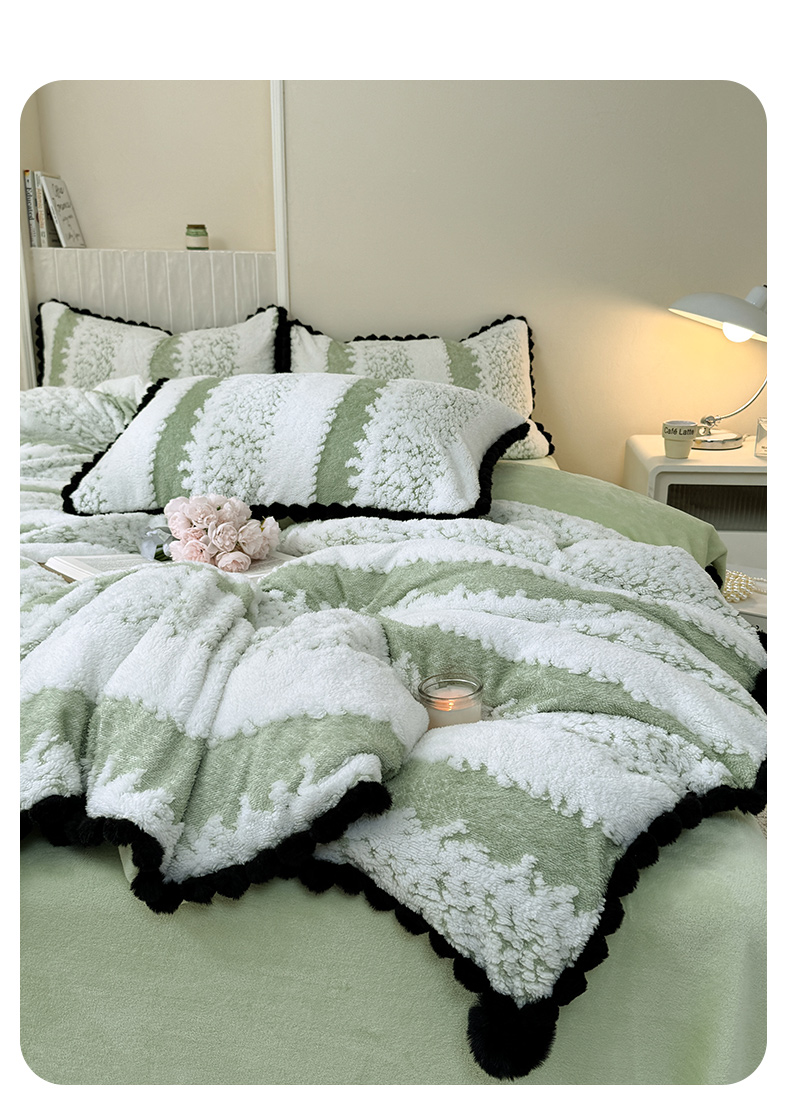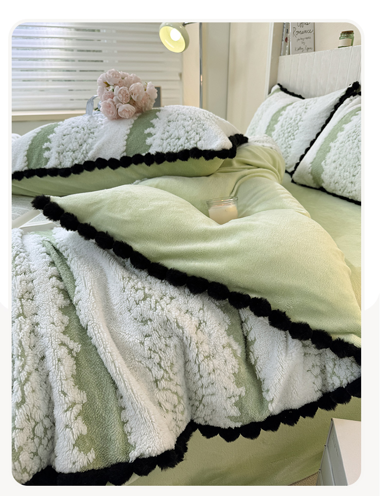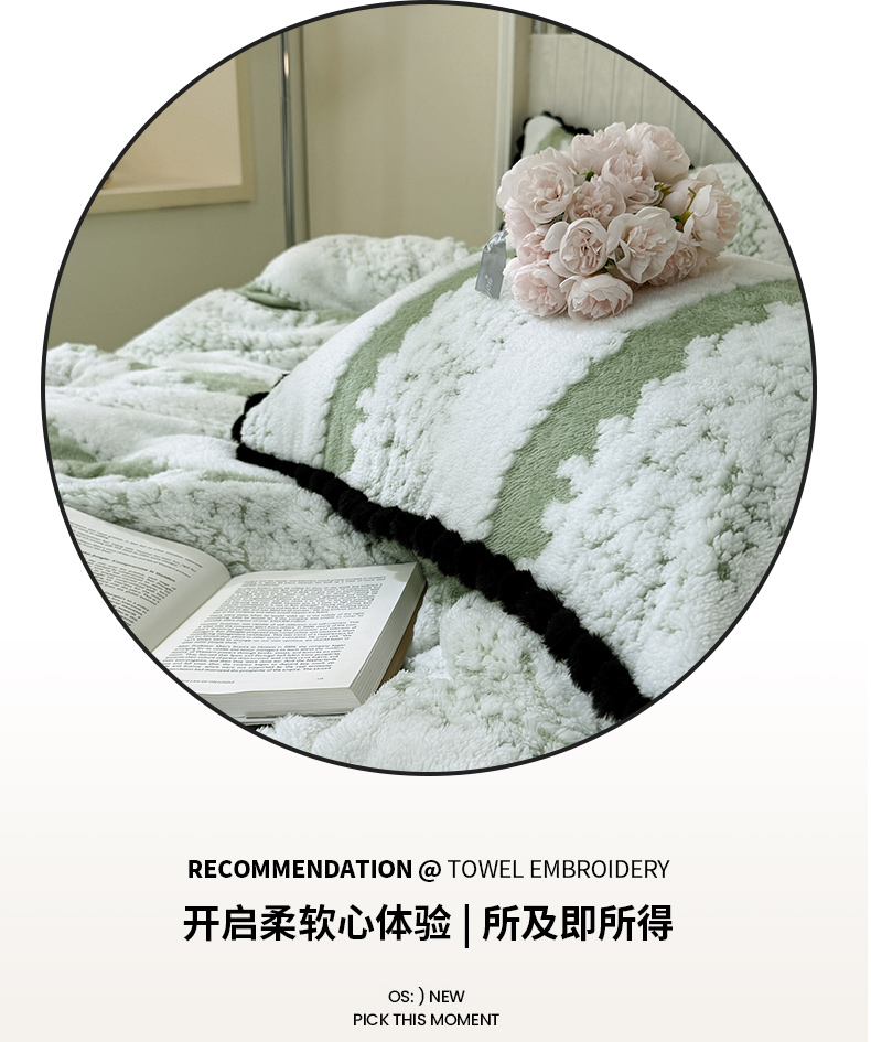 当前位置: 91家纺网 > 商品网购 > 床品套件 > 四件套 > 其它四件套 > 潮邦创意家居 2025新款冬季阳离子提花云纹绒工艺四件套-绒眠小筑系列 绒眠小筑-香草绿