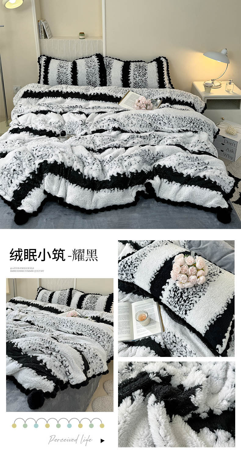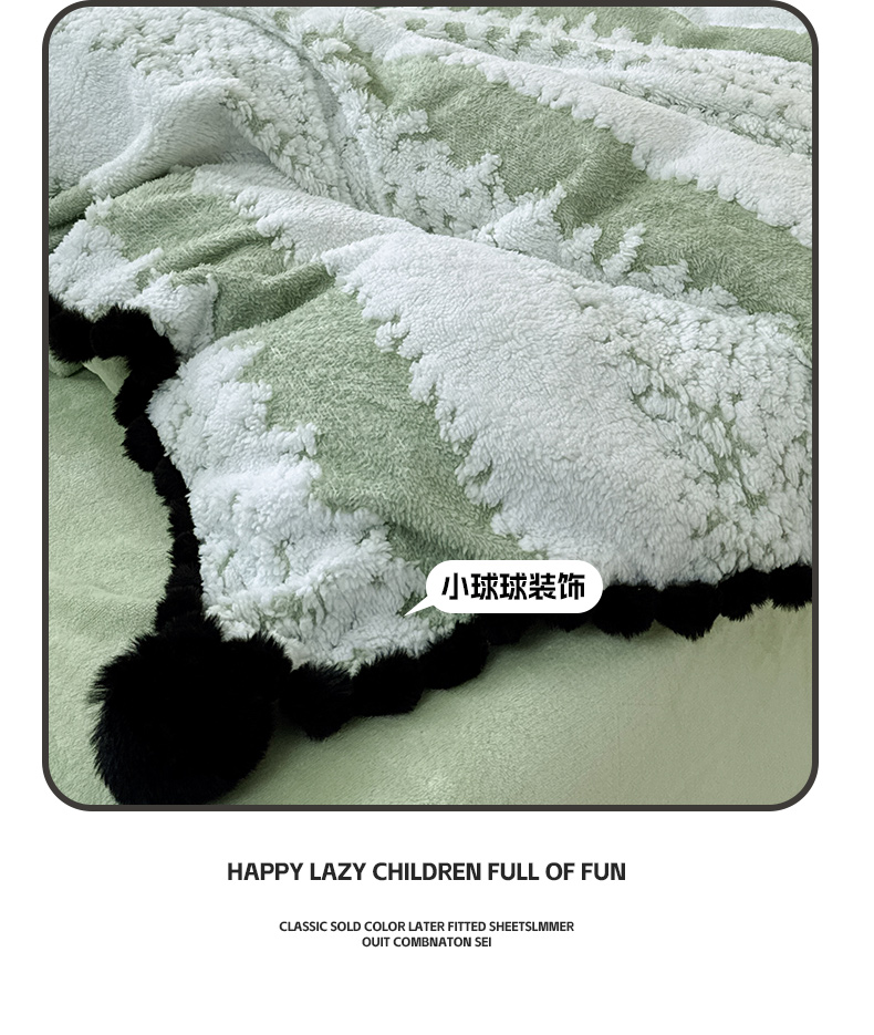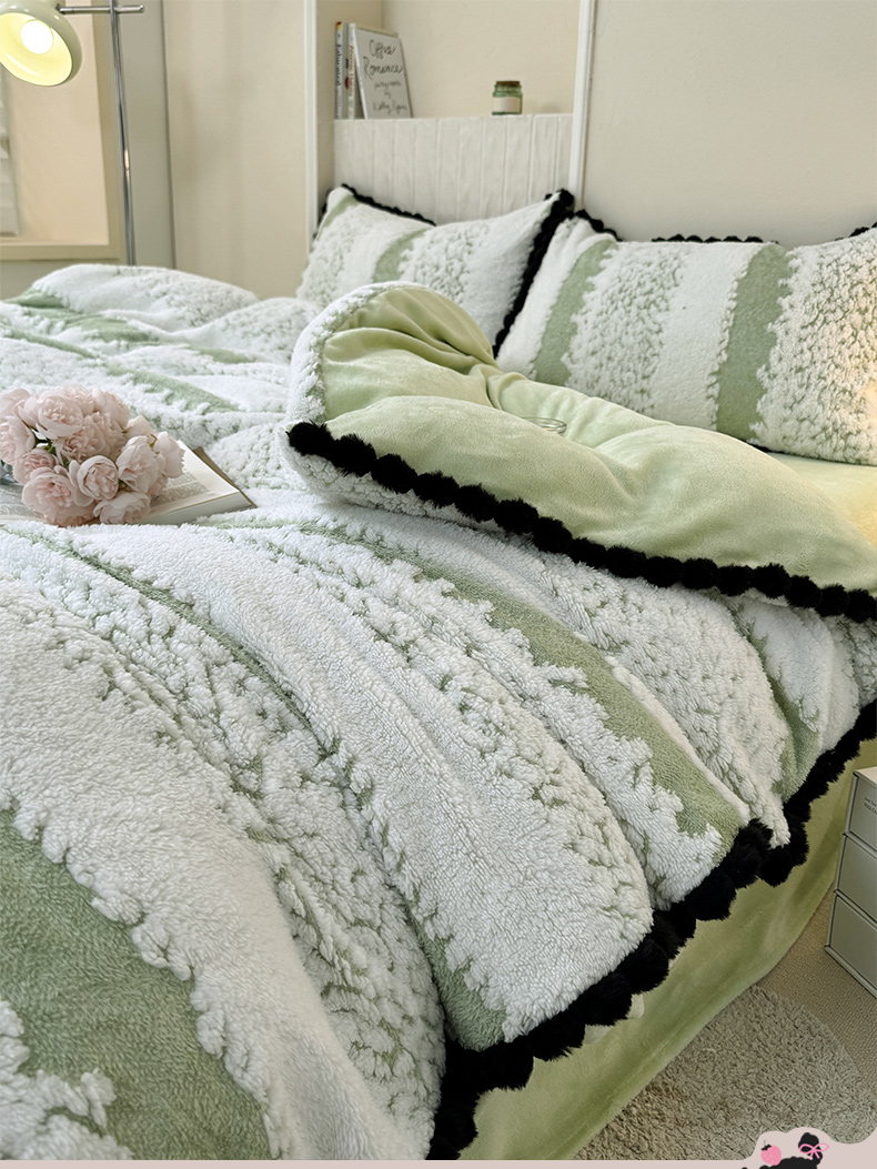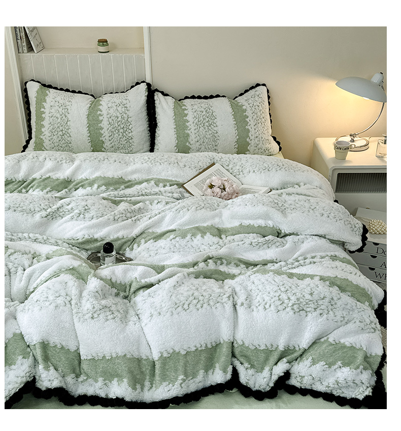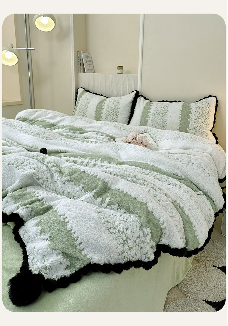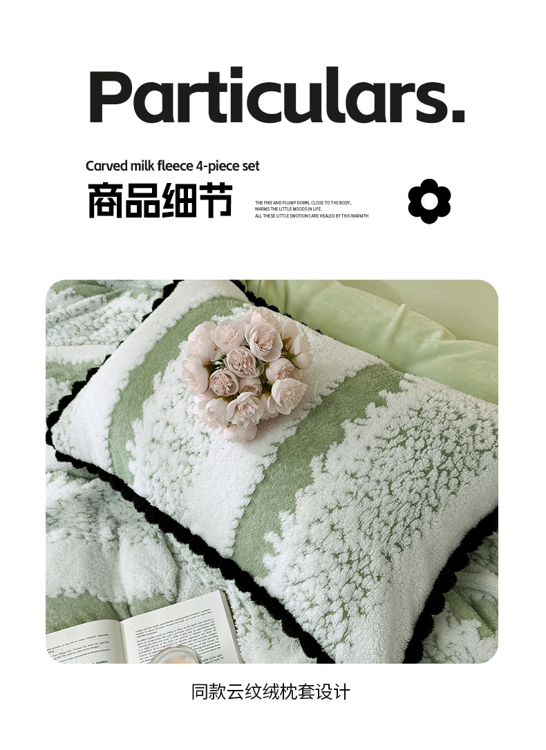 当前位置: 91家纺网 > 商品网购 > 床品套件 > 四件套 > 其它四件套 > 潮邦创意家居 2025新款冬季阳离子提花云纹绒工艺四件套-绒眠小筑系列 绒眠小筑-香草绿
