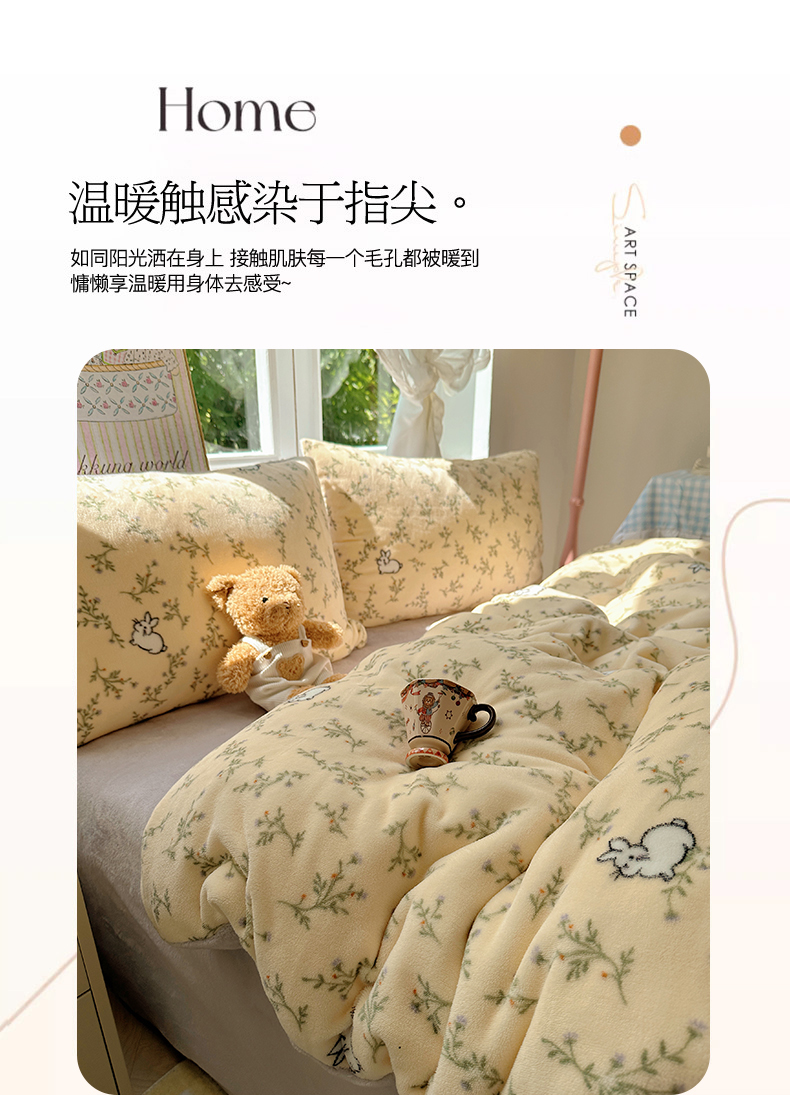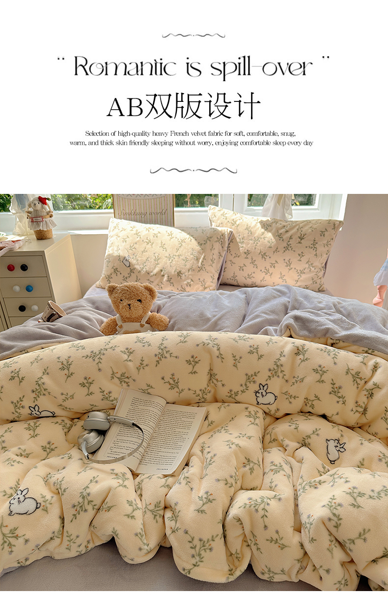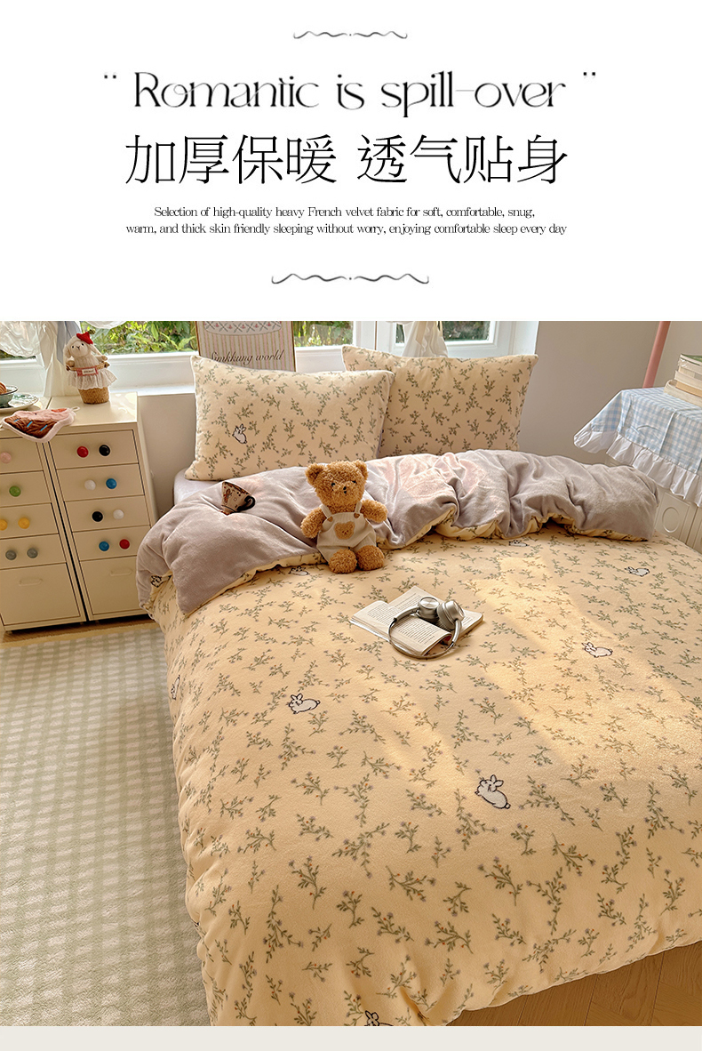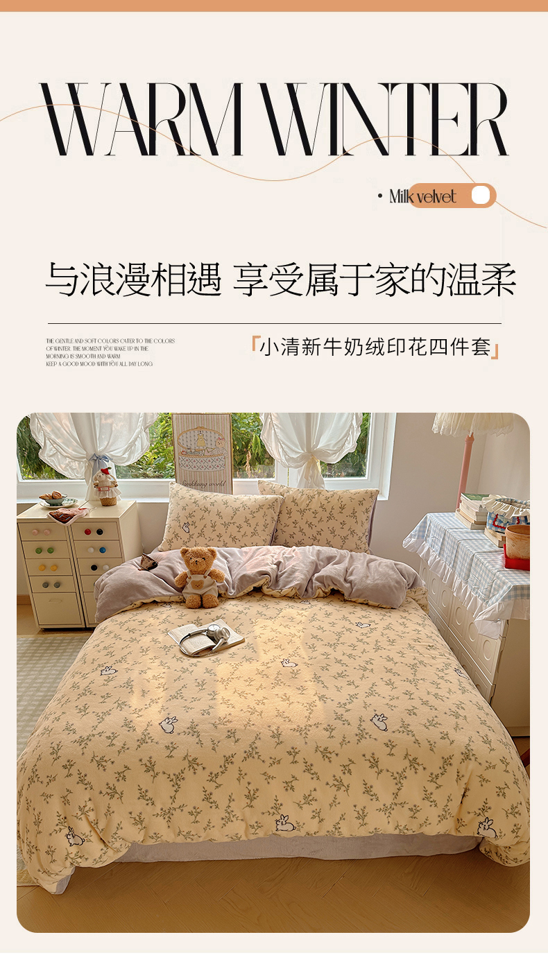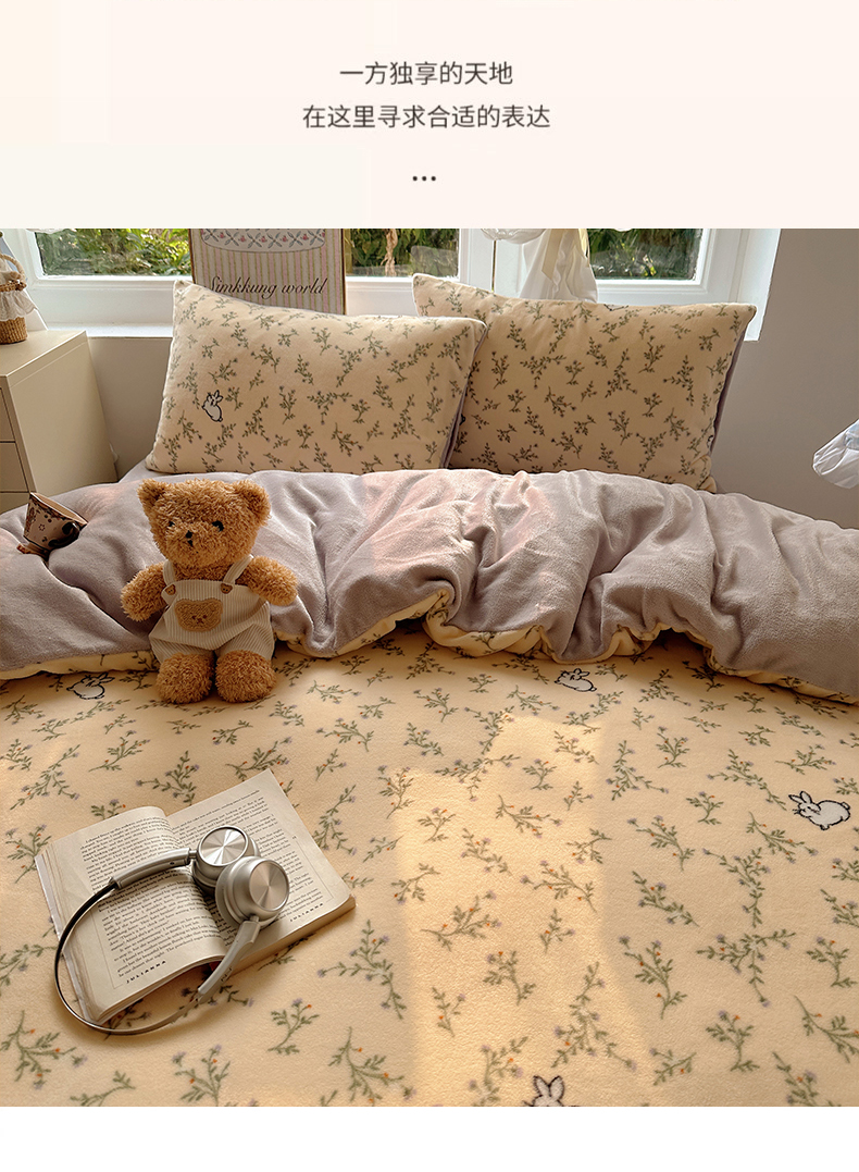当前位置: 91家纺网 > 商品网购 > 床品套件 > 四件套 > 牛奶绒四件套 > 优选 2025新款小清新加厚高克重牛奶绒四件套直播爆款电商爆款可爱小兔