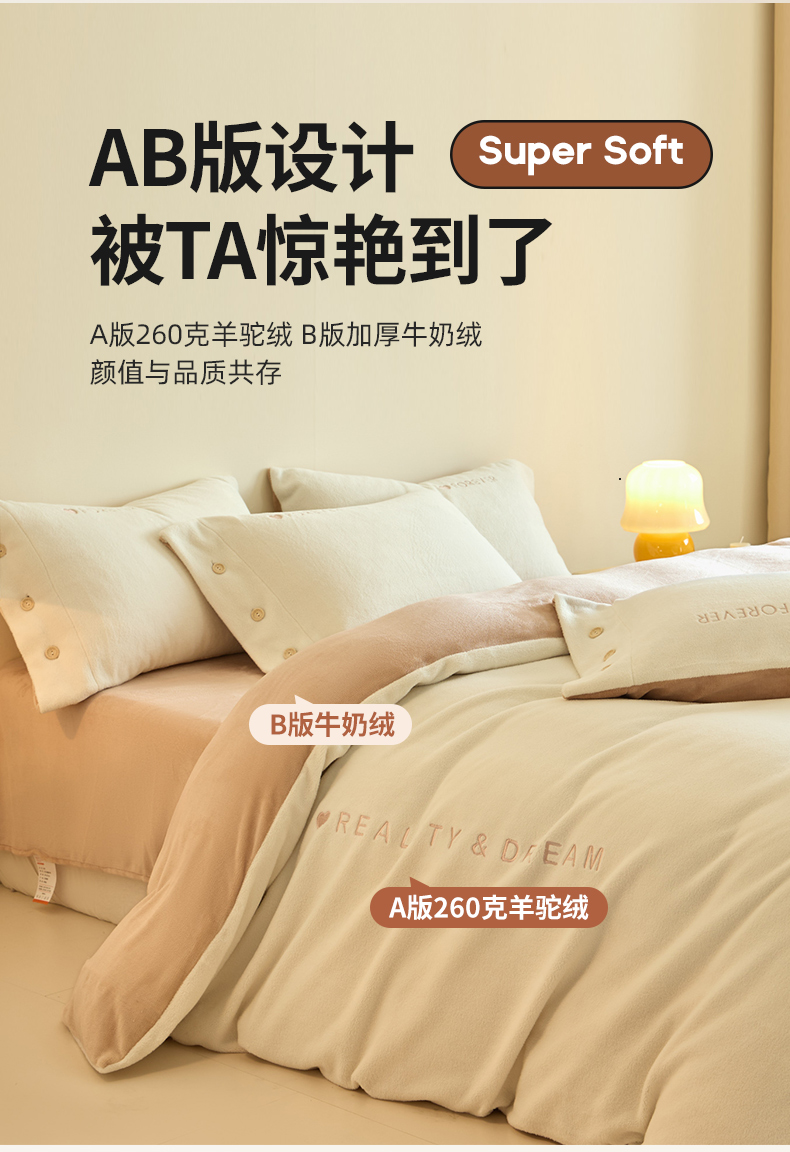 当前位置: 91家纺网 > 商品网购 > 床品套件 > 四件套 > 牛奶绒四件套 > 吾秀家居 2025新款纽扣工艺260克羊驼绒牛奶绒四件套 - 云朵 奶白-米金