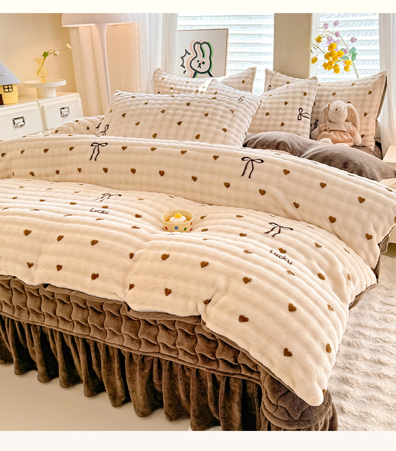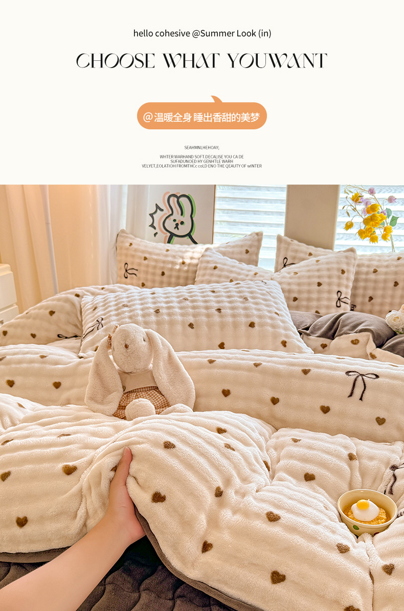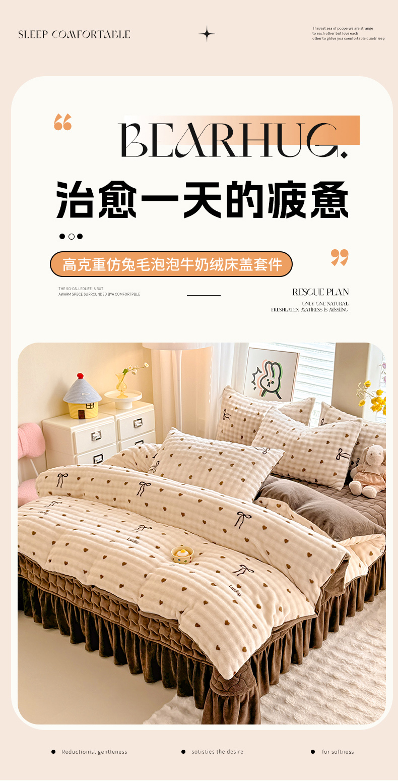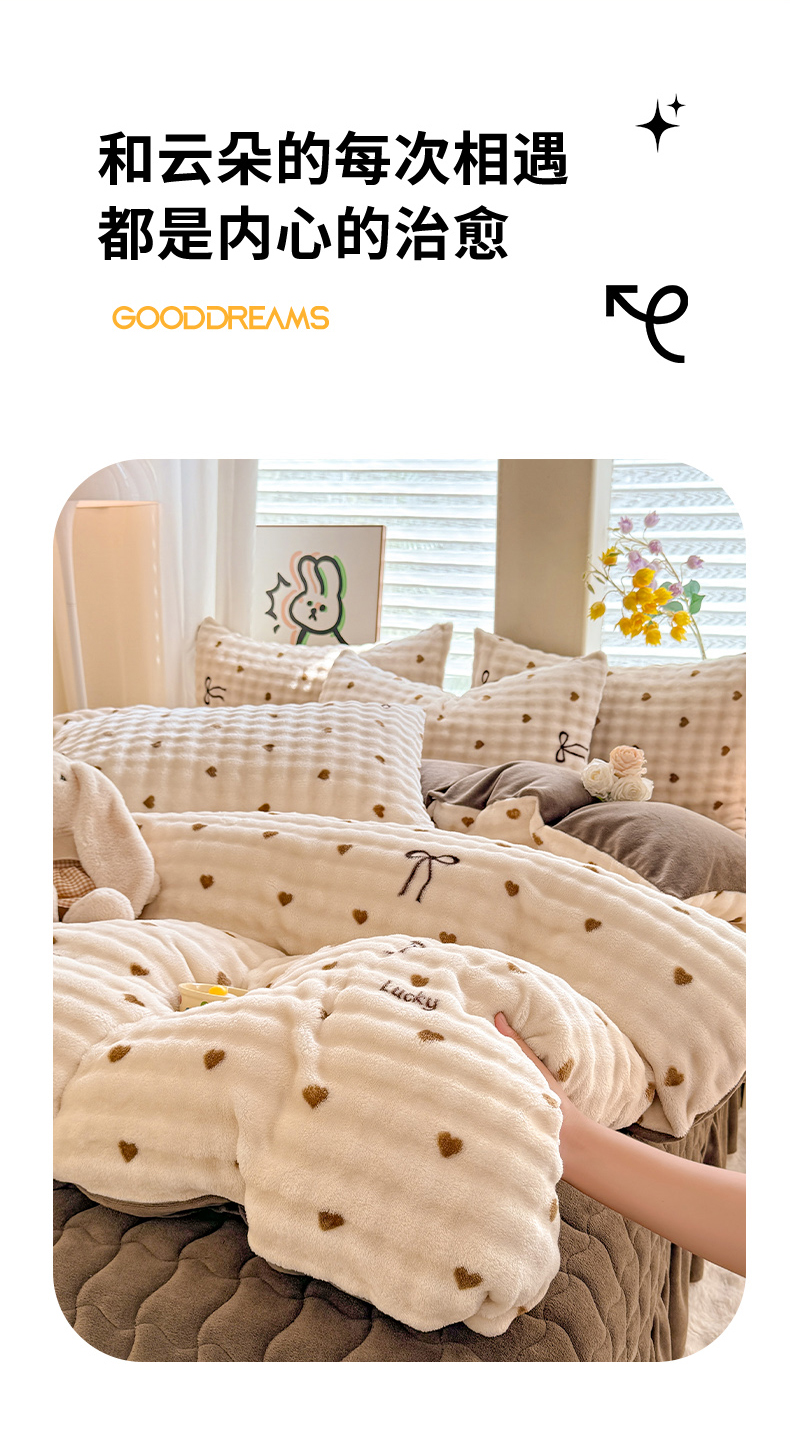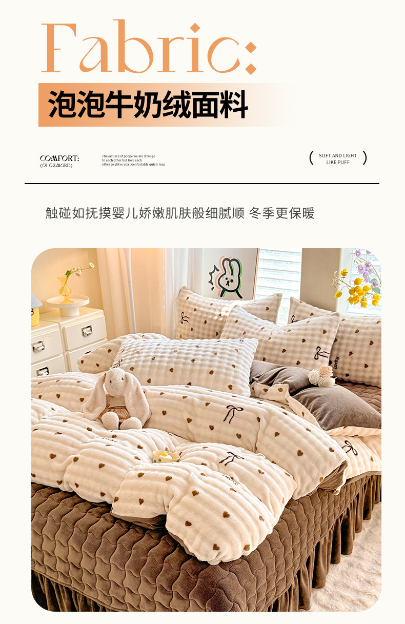 当前位置: 91家纺网 > 商品网购 > 床品套件 > 四件套 > 牛奶绒四件套 > 金盛皇朝家纺 2025新款高克重仿兔毛泡泡牛奶绒床单床盖单件三件四件套 萌心点点