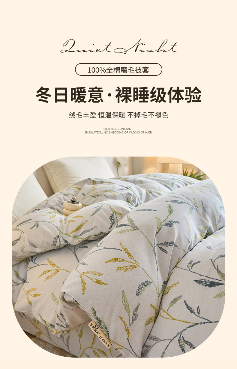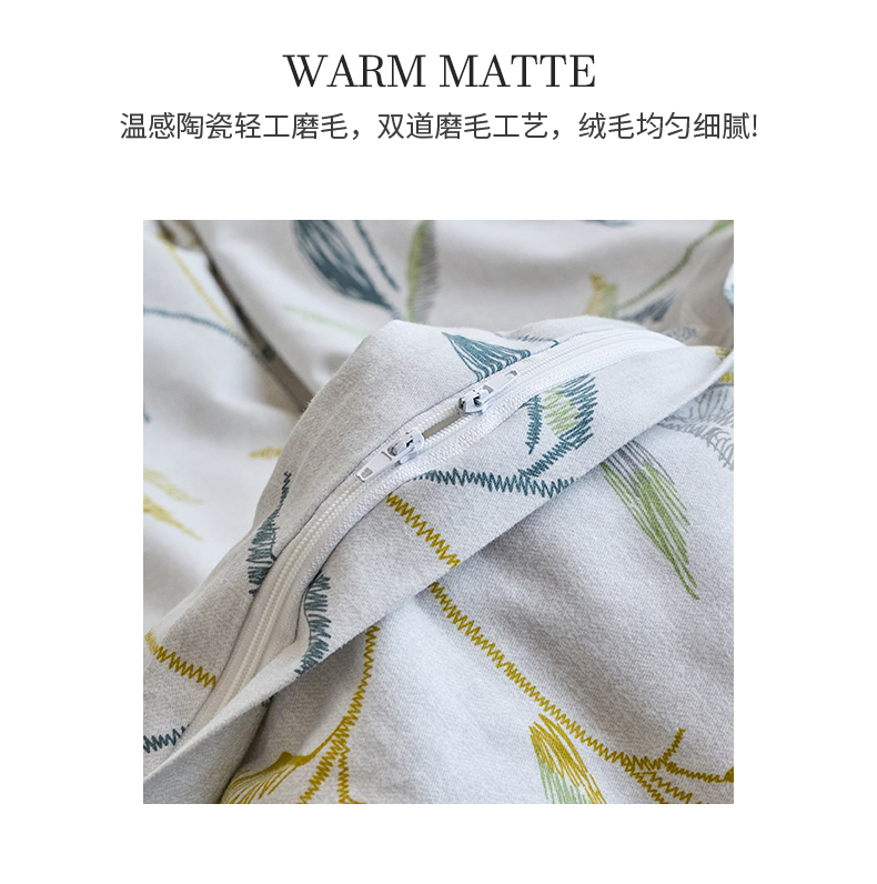 商品名称:春皖家纺 2025新款全棉原棉磨毛色织水洗单被套回暖系列-风格二 叶晴川