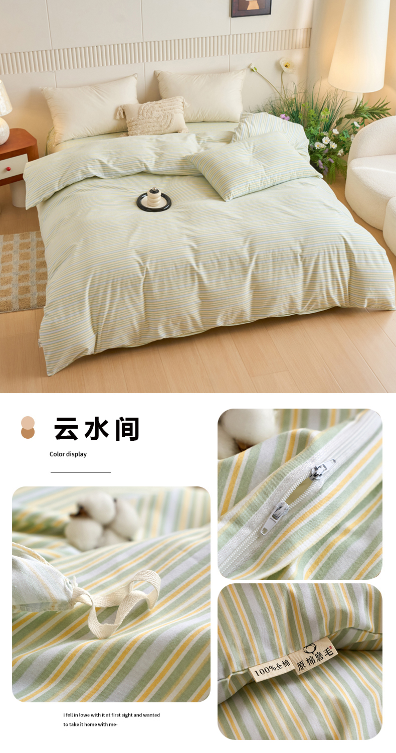 春皖家纺 2025新款全棉原棉磨毛色织水洗单被套回暖系列-风格二 叶晴川