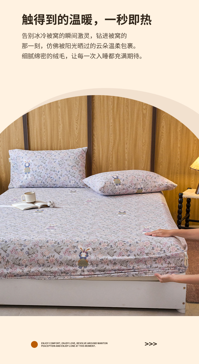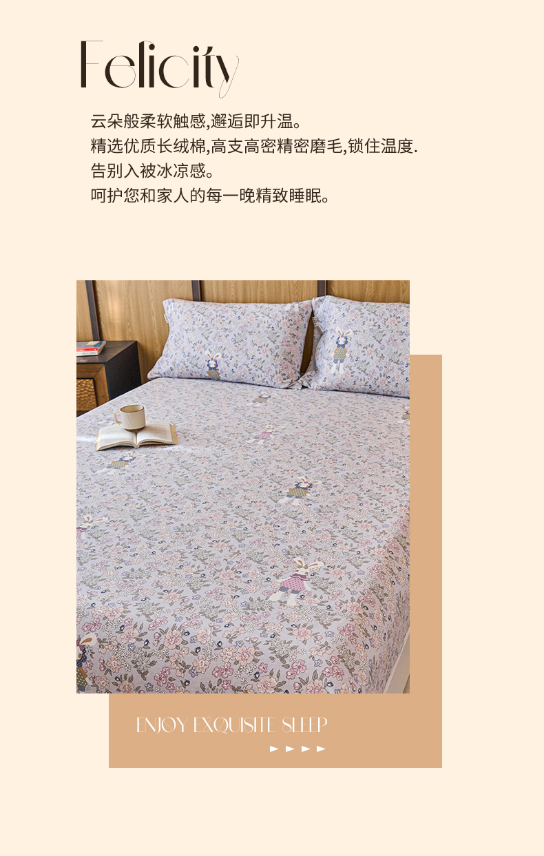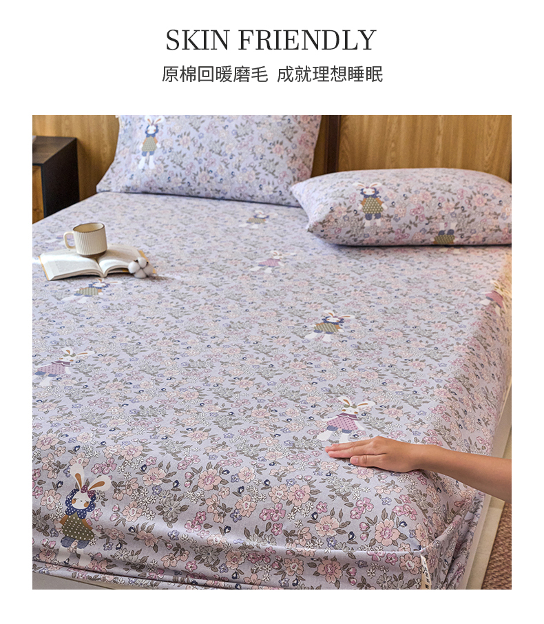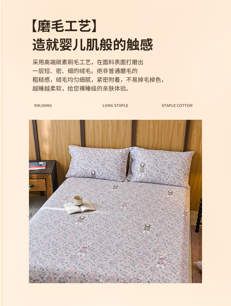 春皖家纺 2025新款原棉磨毛单床笠 床笠单件-风格一萌萌兔