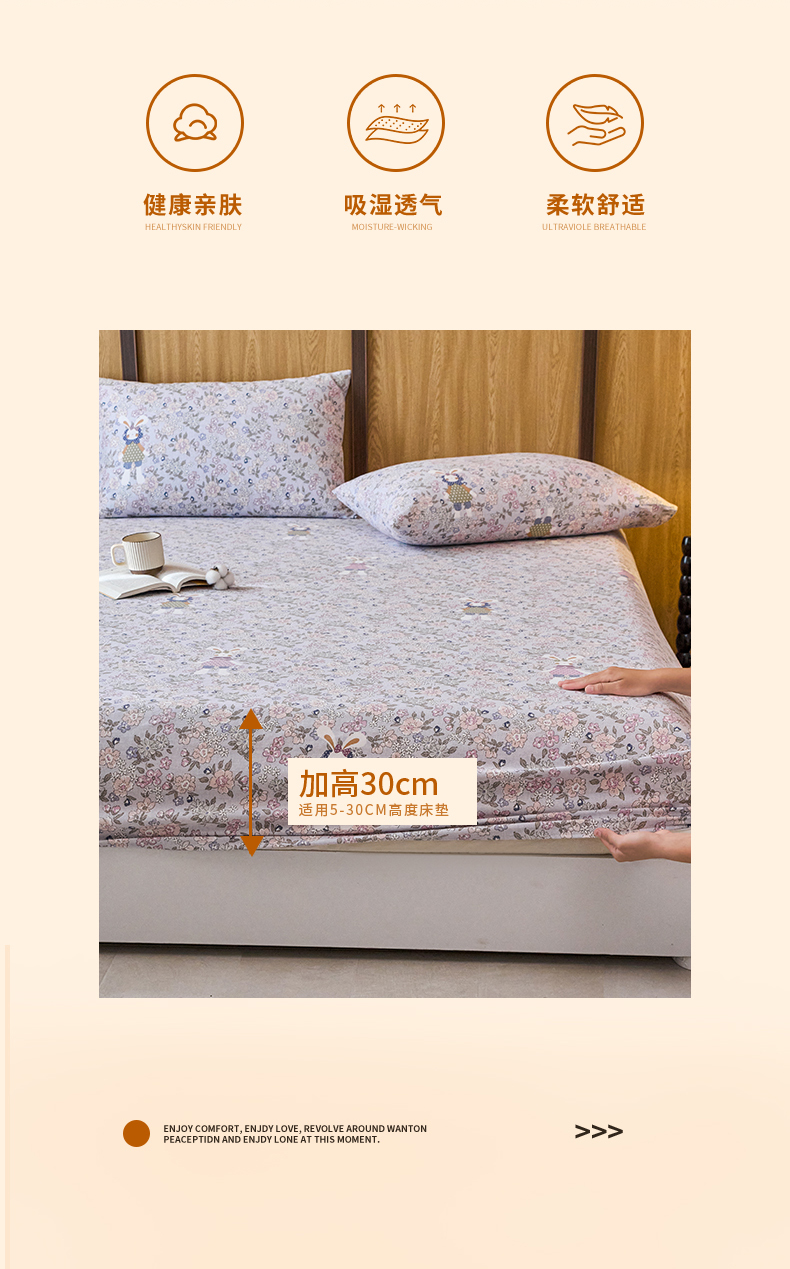 商品名称:春皖家纺 2025新款原棉磨毛单床笠 床笠单件-风格一萌萌兔
