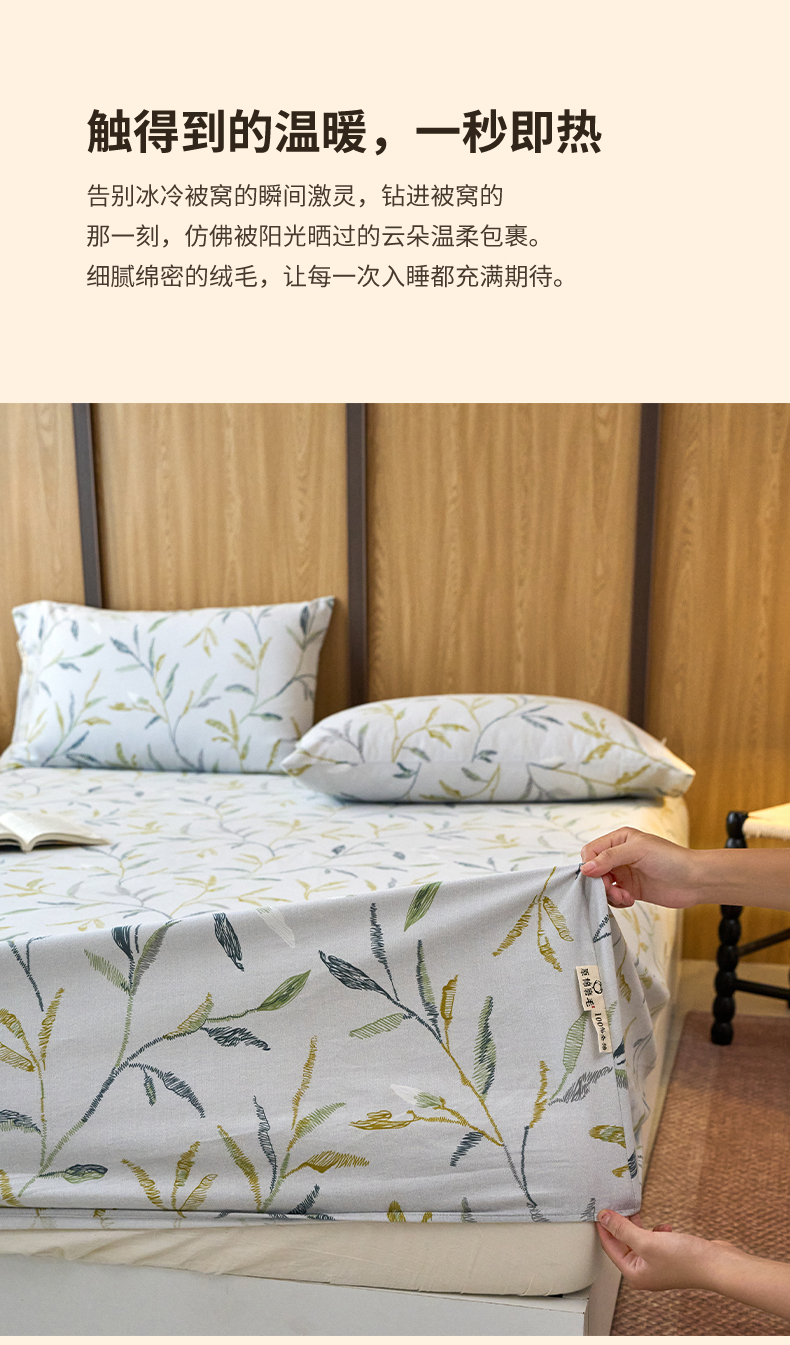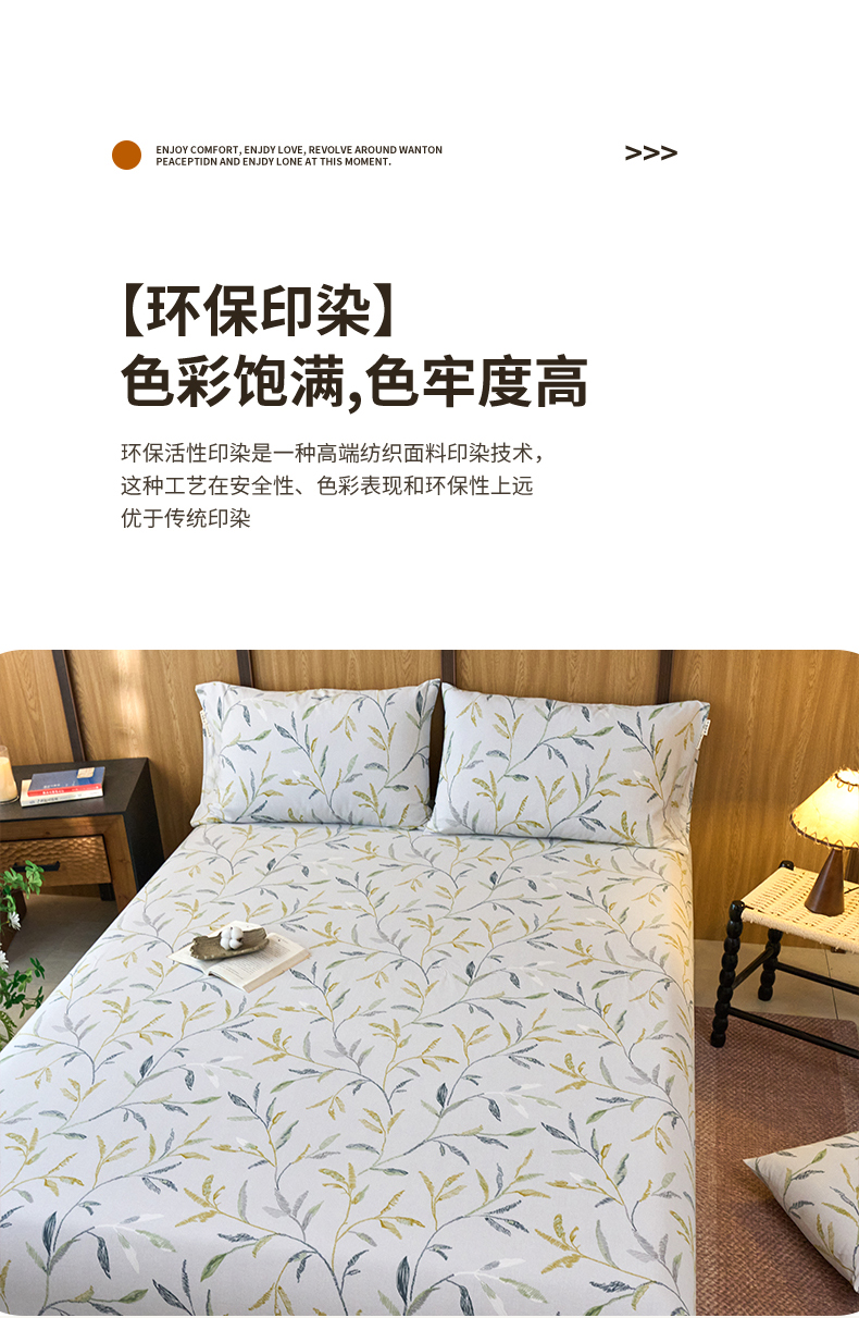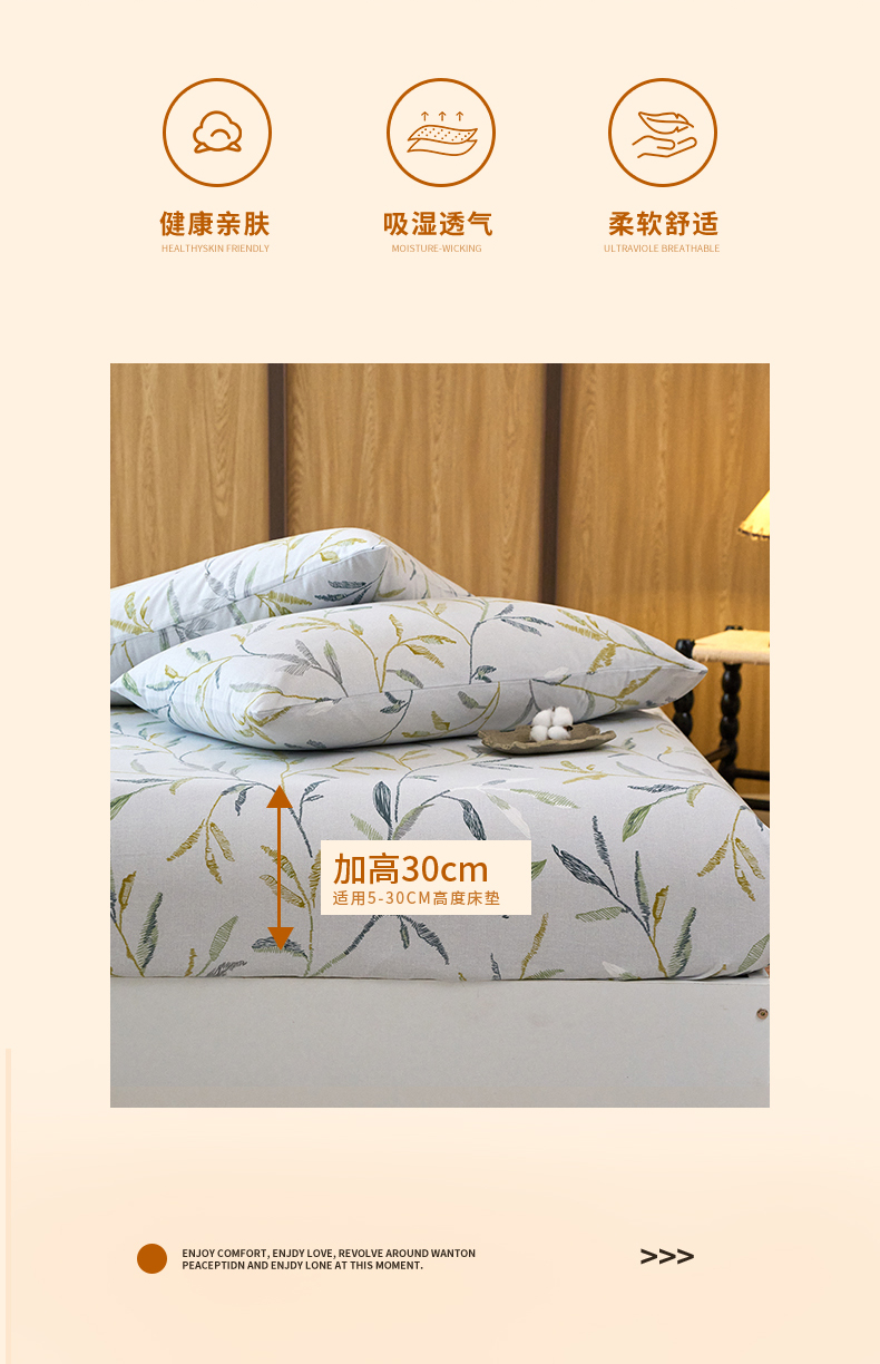 春皖家纺 2025新款全棉原棉磨毛色织水洗单床笠回暖系列-风格二 叶晴川