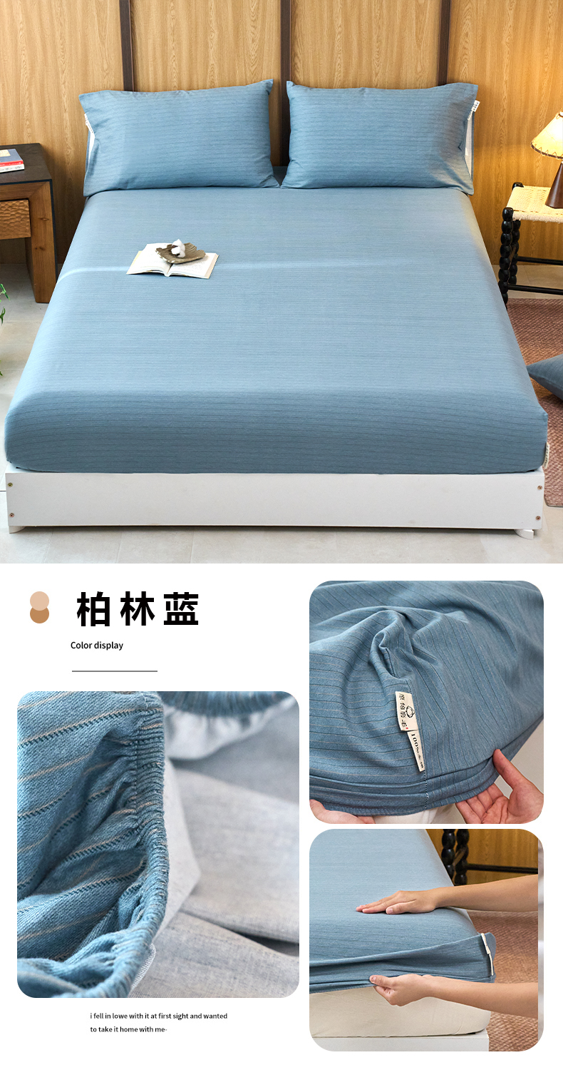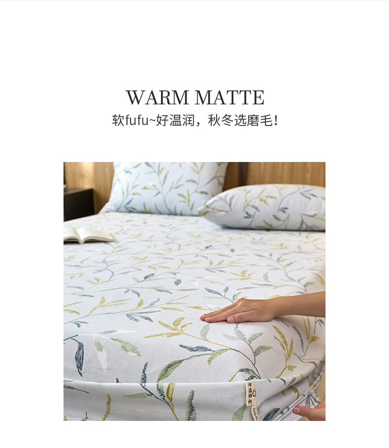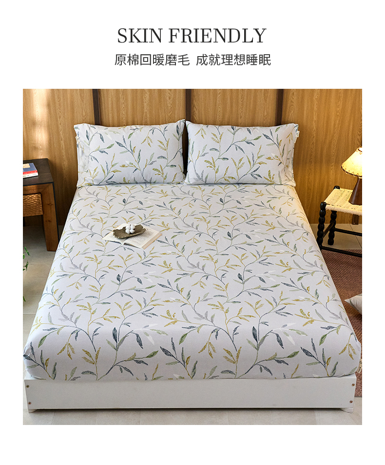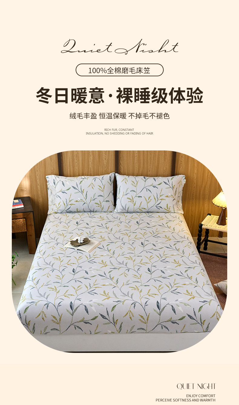 春皖家纺 2025新款全棉原棉磨毛色织水洗单床笠回暖系列-风格二 叶晴川