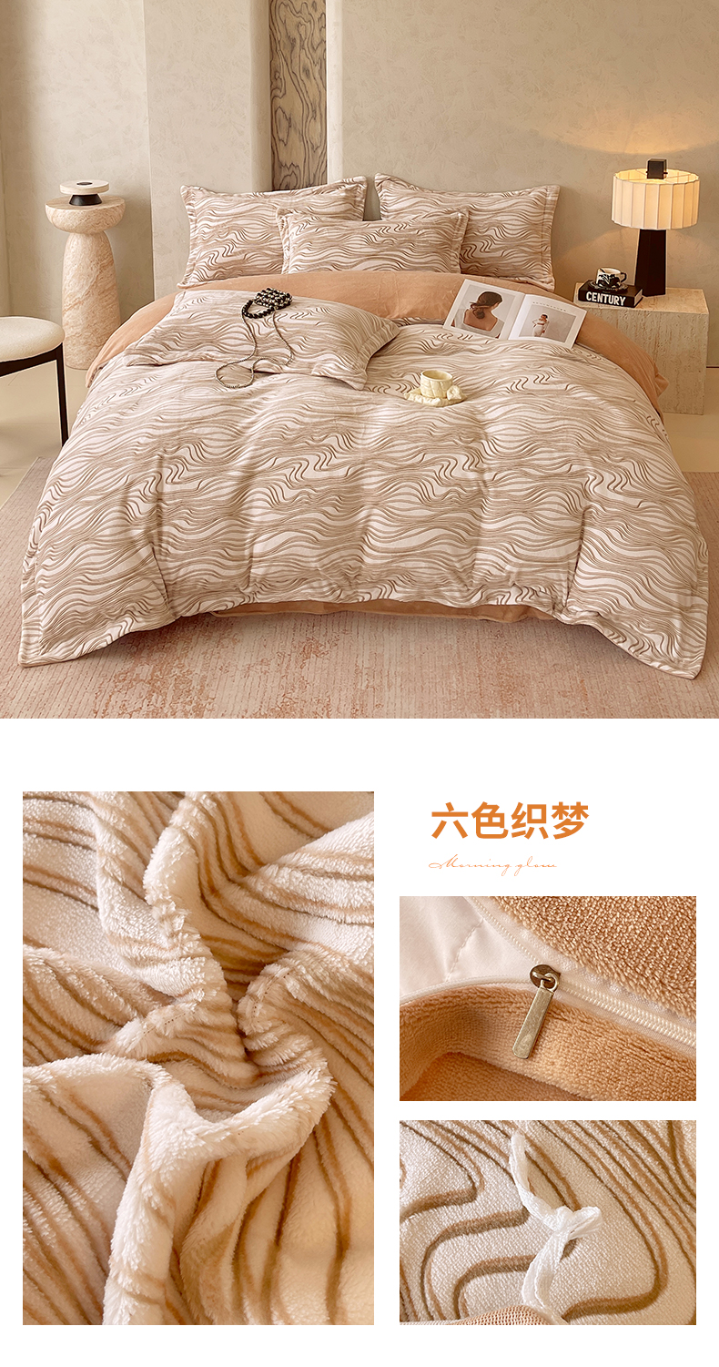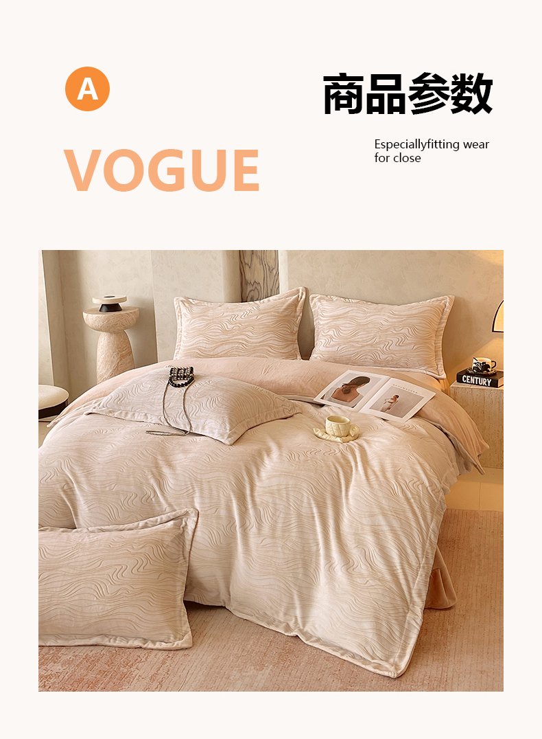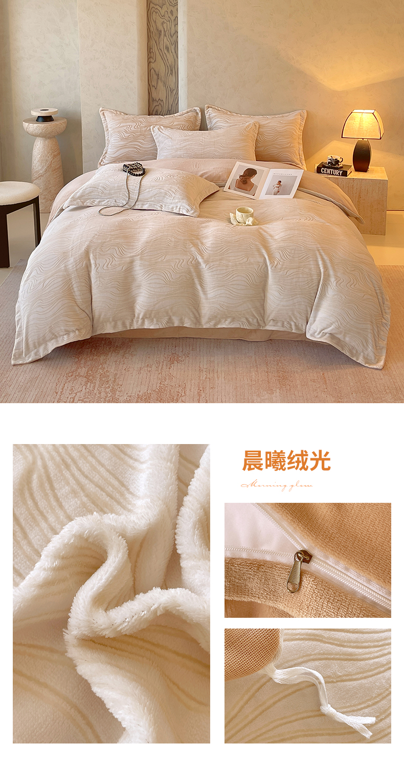 商品名称:春皖家纺 2025新款全消光雕花绒牛奶绒四件套 晨曦绒光