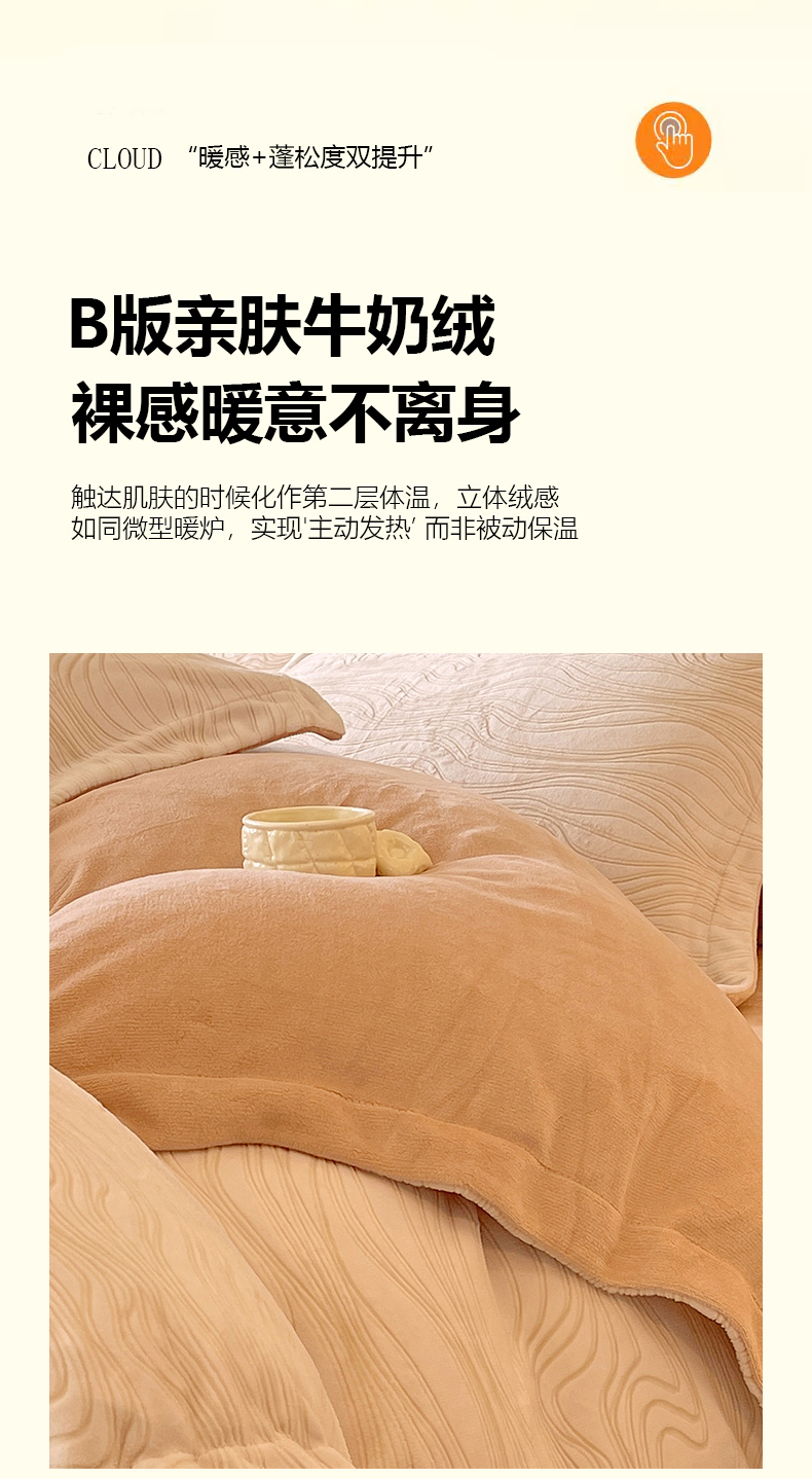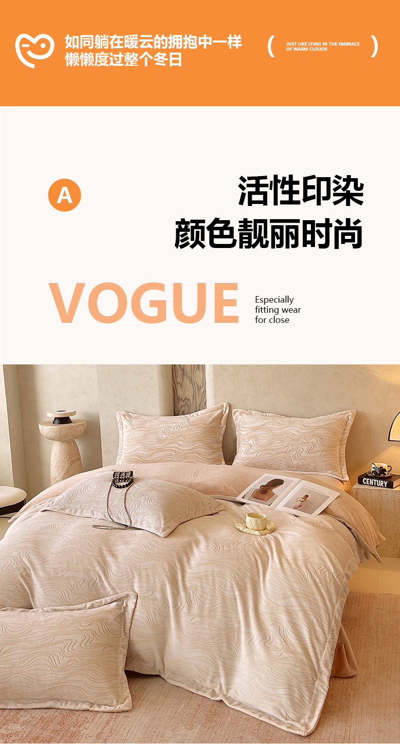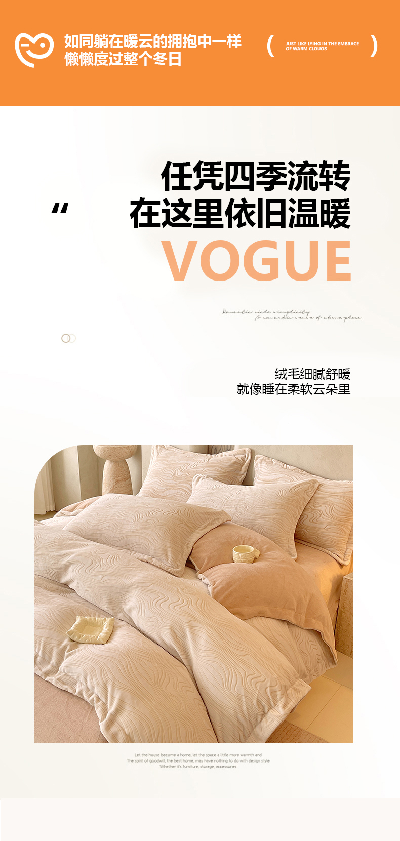 商品名称:春皖家纺 2025新款全消光雕花绒牛奶绒四件套 晨曦绒光