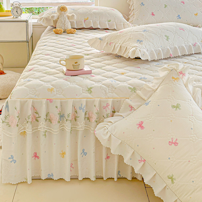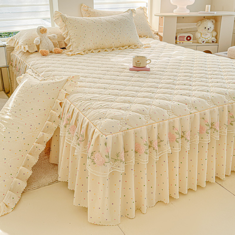 当前位置: 91家纺网 > 商品网购 > 床品套件 > 四件套 > 其它四件套 > 雨田家纺 2025新款夹棉蕾丝床裙四件套 彩色圆点