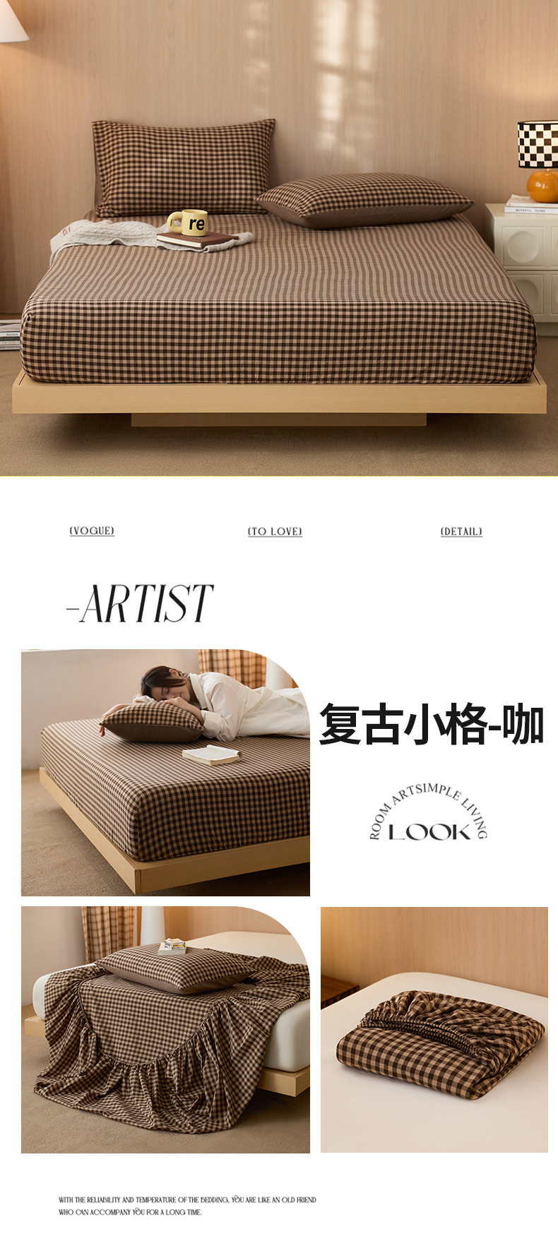 商品名称:(总)启程家纺 2026新款纯棉水洗棉复古小格多规格系列单品床笠