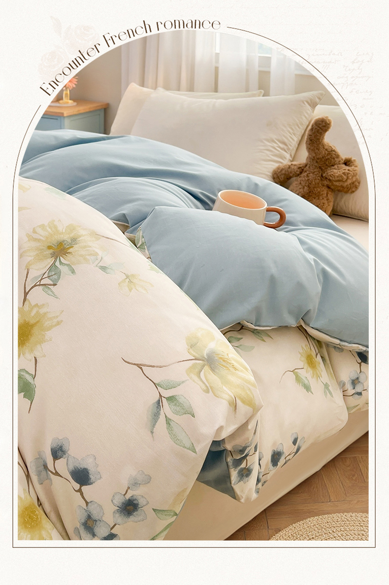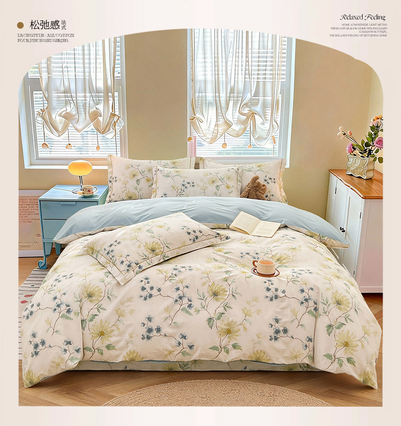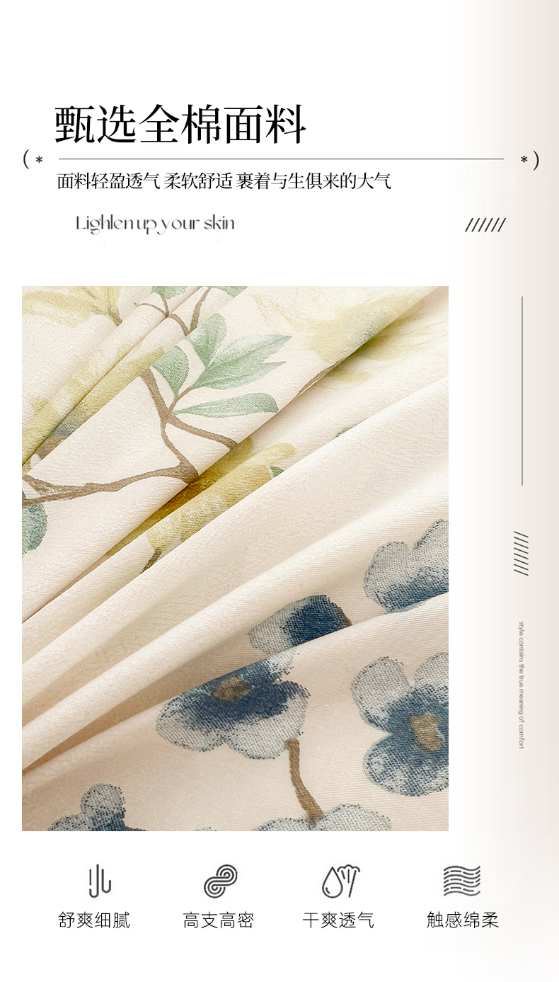 当前位置: 91家纺网 > 商品网购 > 床品套件 > 四件套 > 全棉普通四件套 > 名优家纺 2026新款60S13374高支密全棉印花纯色四件套 洛颜-蓝