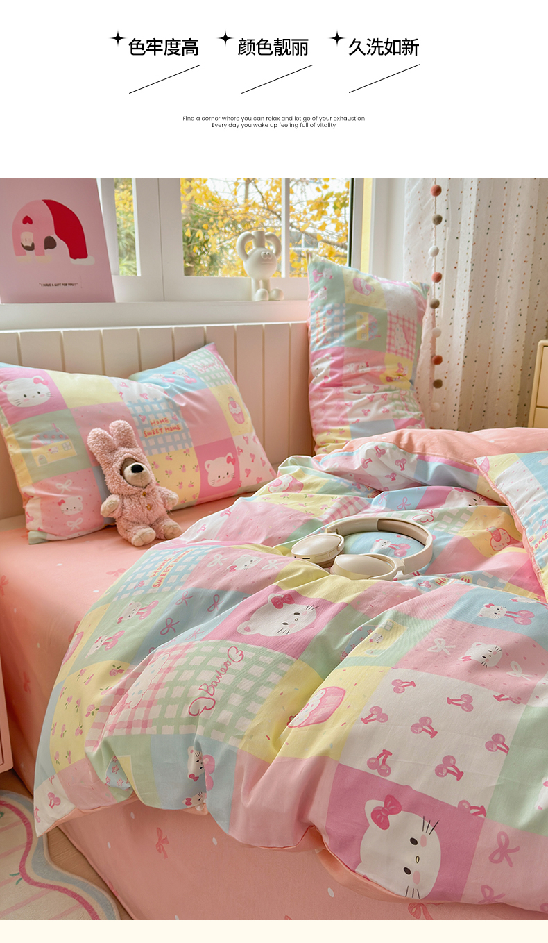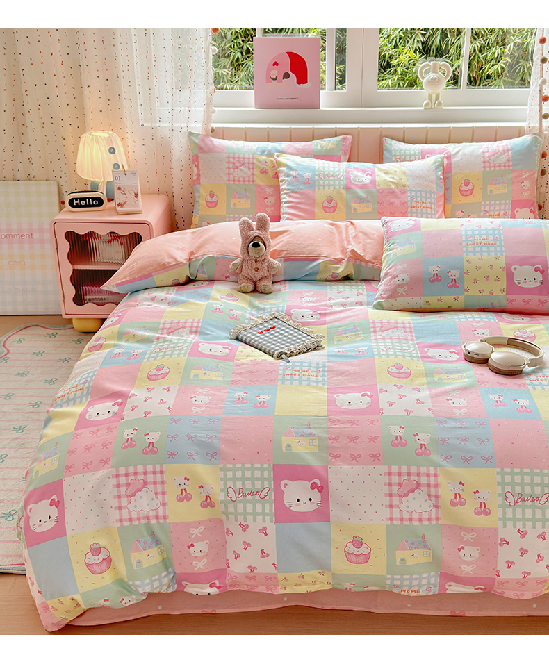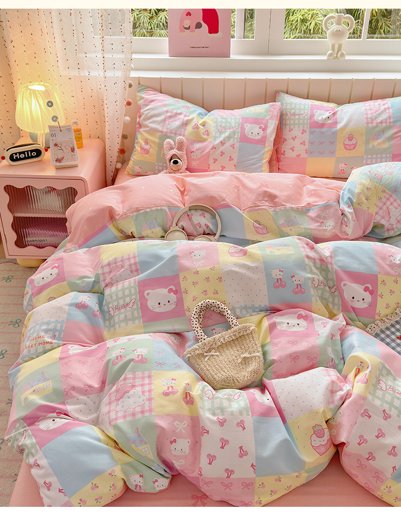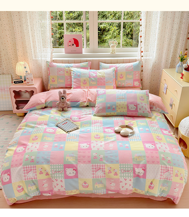 当前位置: 91家纺网 > 商品网购 > 床品套件 > 四件套 > 全棉普通四件套 > 清雅福 2026春夏新款INS小清新40支全棉13372四件套第二批 可爱喵喵