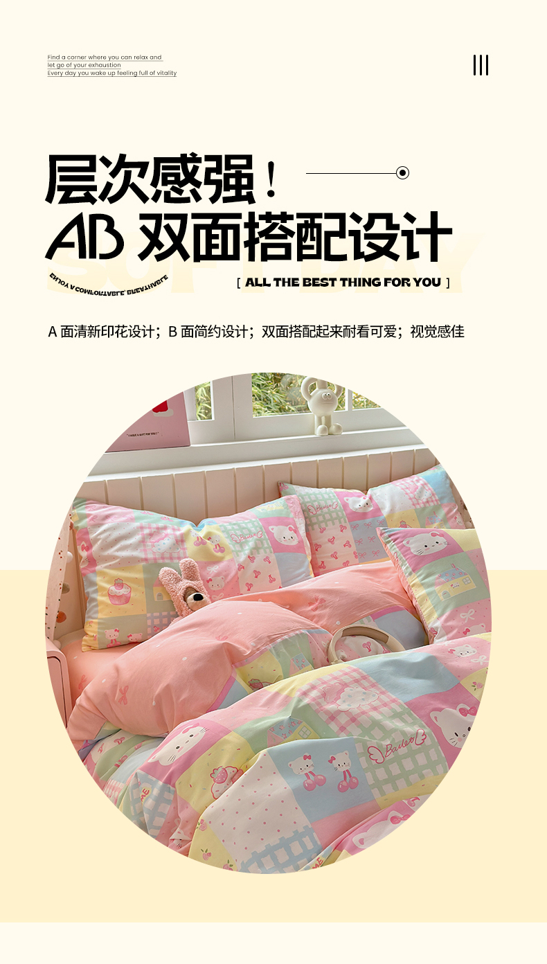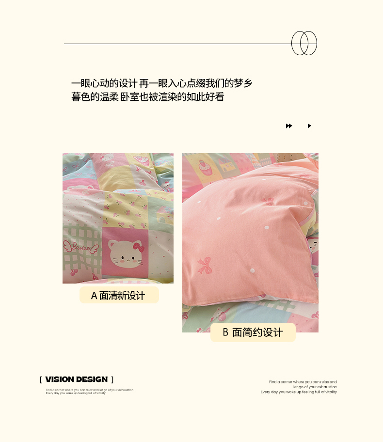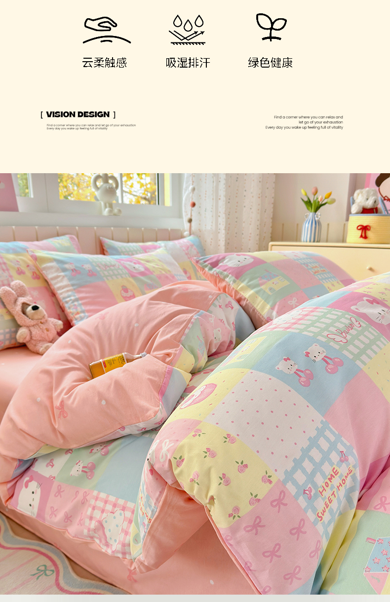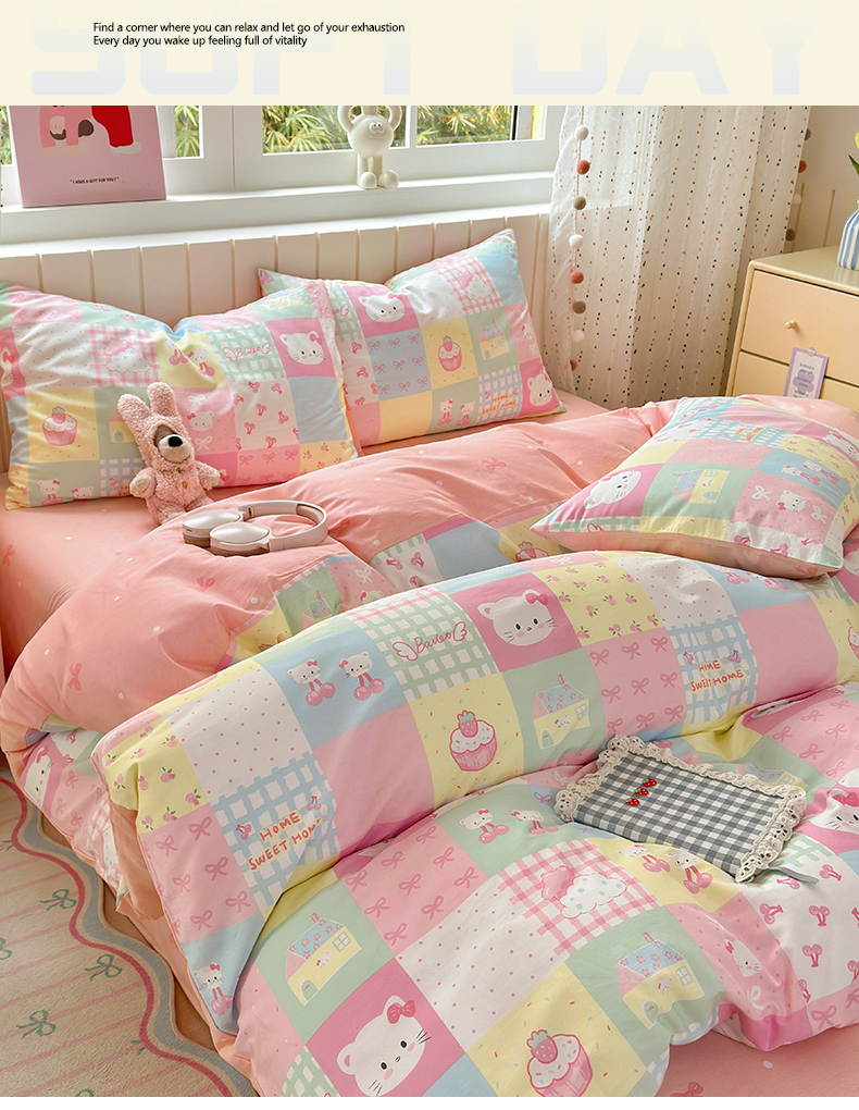 当前位置: 91家纺网 > 商品网购 > 床品套件 > 四件套 > 全棉普通四件套 > 清雅福 2026春夏新款INS小清新40支全棉13372四件套第二批 可爱喵喵