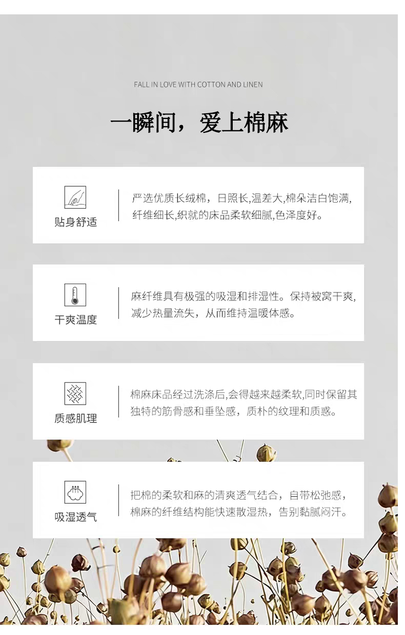 被面材质: 棉麻:棉+亚麻(混纺)