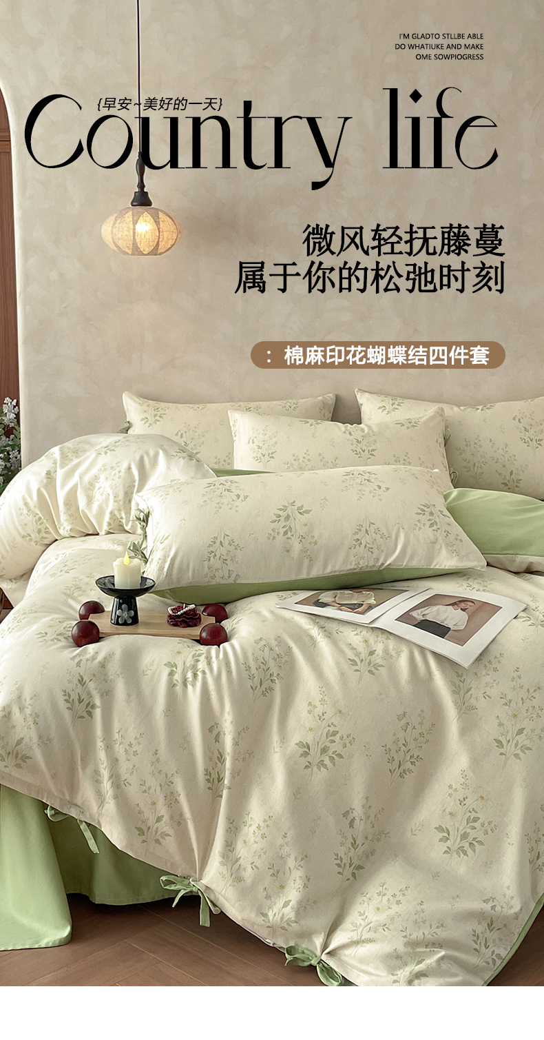 商品名称:(总)沐棉家居 2026春夏新款绑带蝴蝶结棉麻四件套