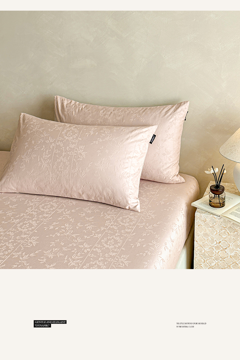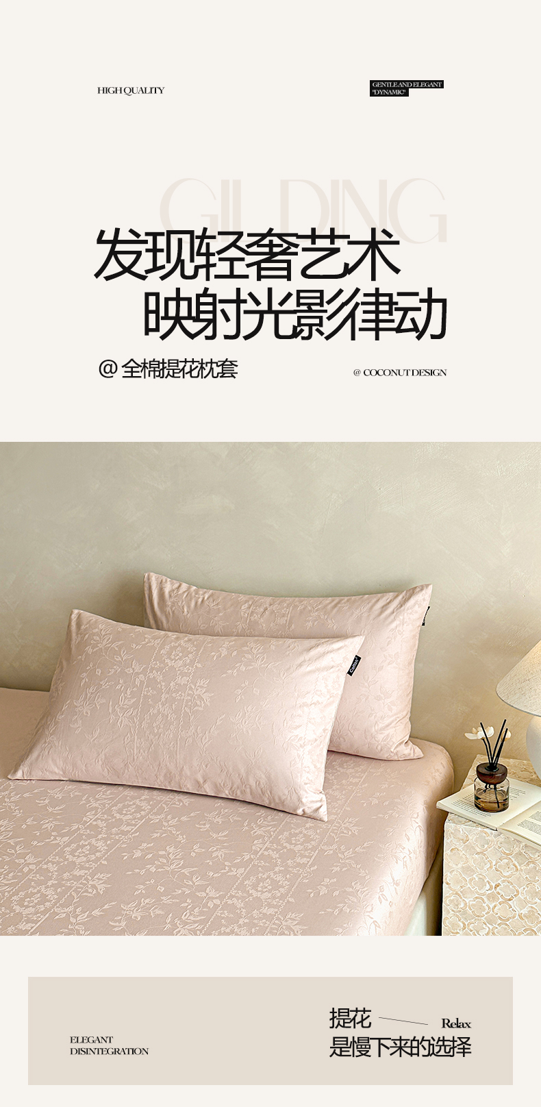 商品名称:涵宸家纺 2026新款全棉提花里拉系列单枕套 枕套-沁语-粉金