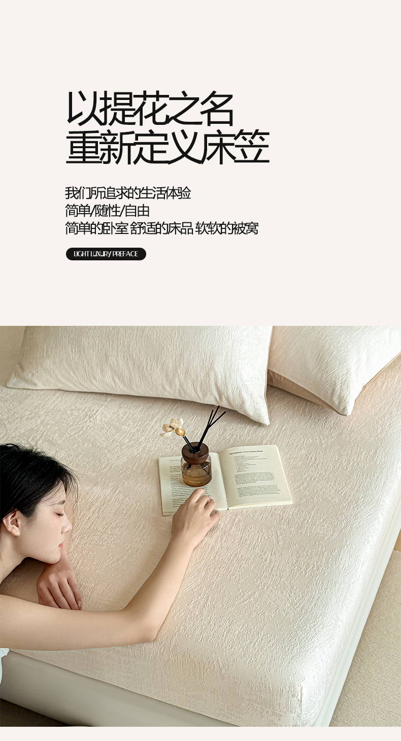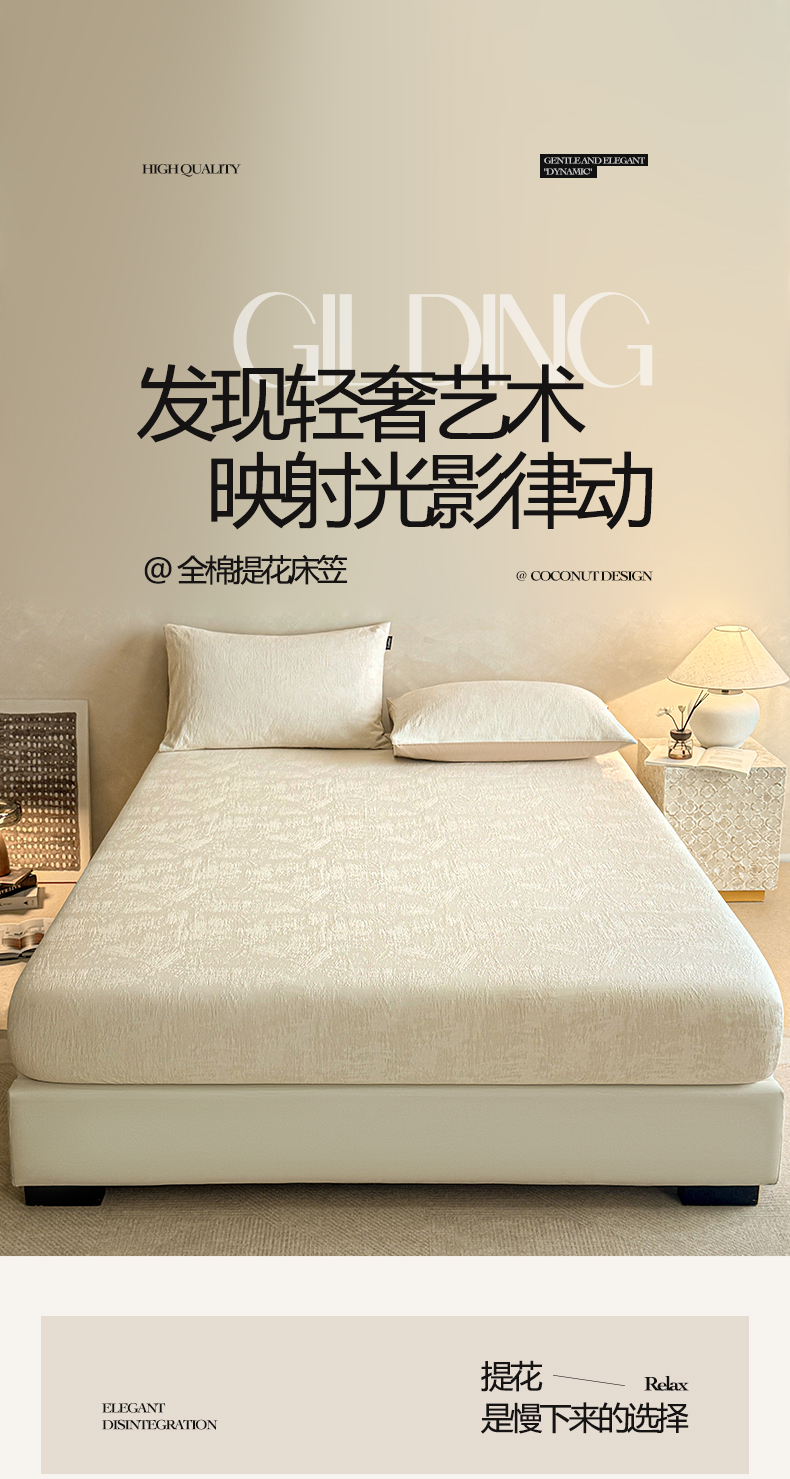• 91家纺网 家纺一手货源 找家纺 涵宸家纺 2026新款全棉提花里拉系列单床笠 床笠-雾絮-奶白