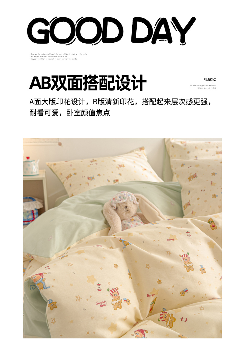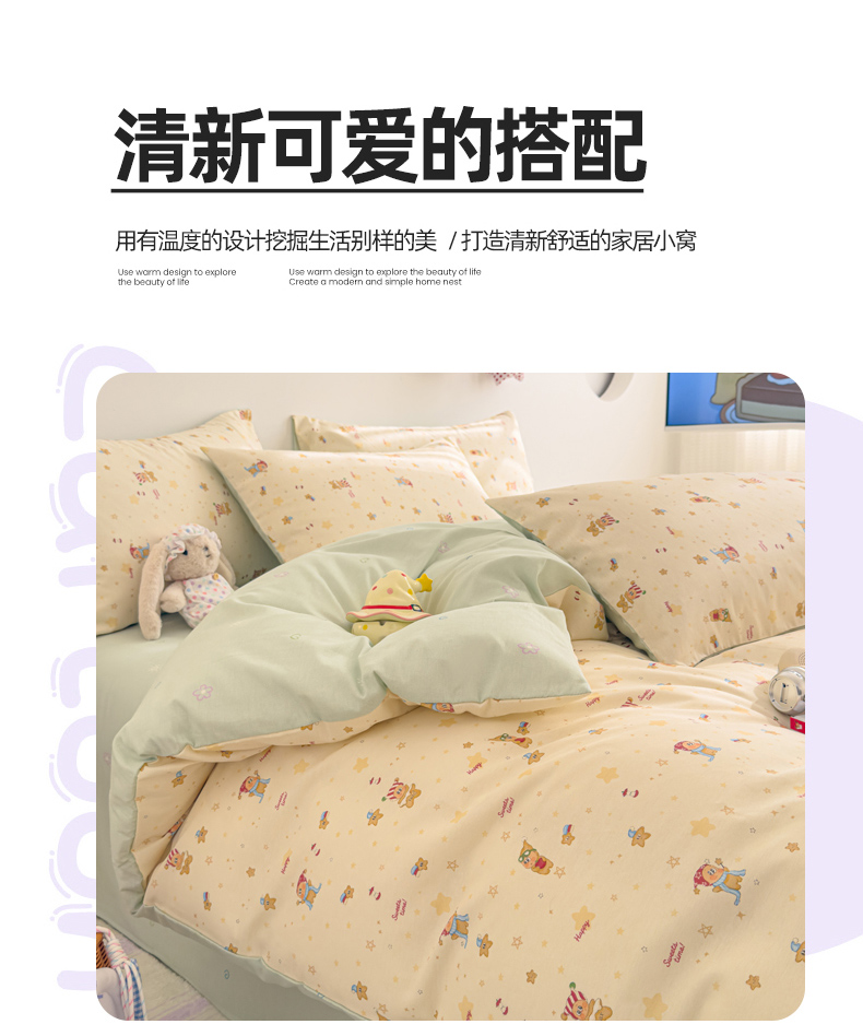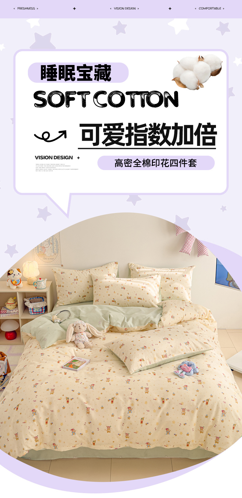 当前位置: 91家纺网 > 商品网购 > 床品套件 > 四件套 > 全棉普通四件套 > 沐辰 2026新款13070全棉纯棉印花四件套-萌趣 好梦星星