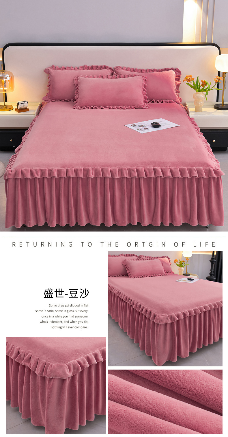 优家居工厂店 2026新款纯色韩版花边牛奶绒床裙床罩加厚直播外贸可定做 盛世-魅紫