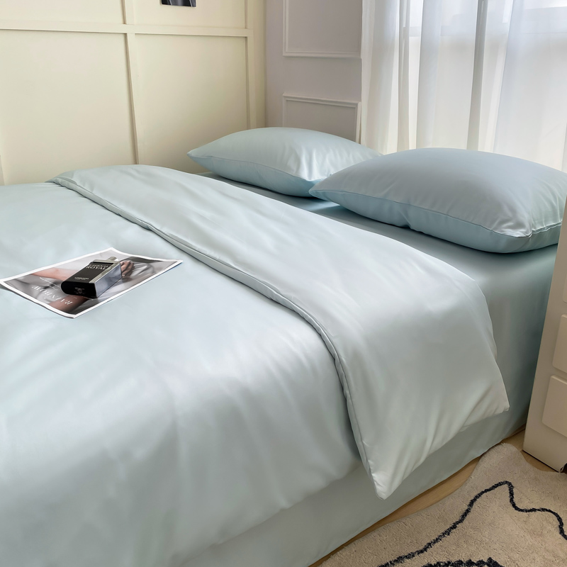 乐沐家纺 2026新款春夏水洗冰丝单被套 浅蓝米黄