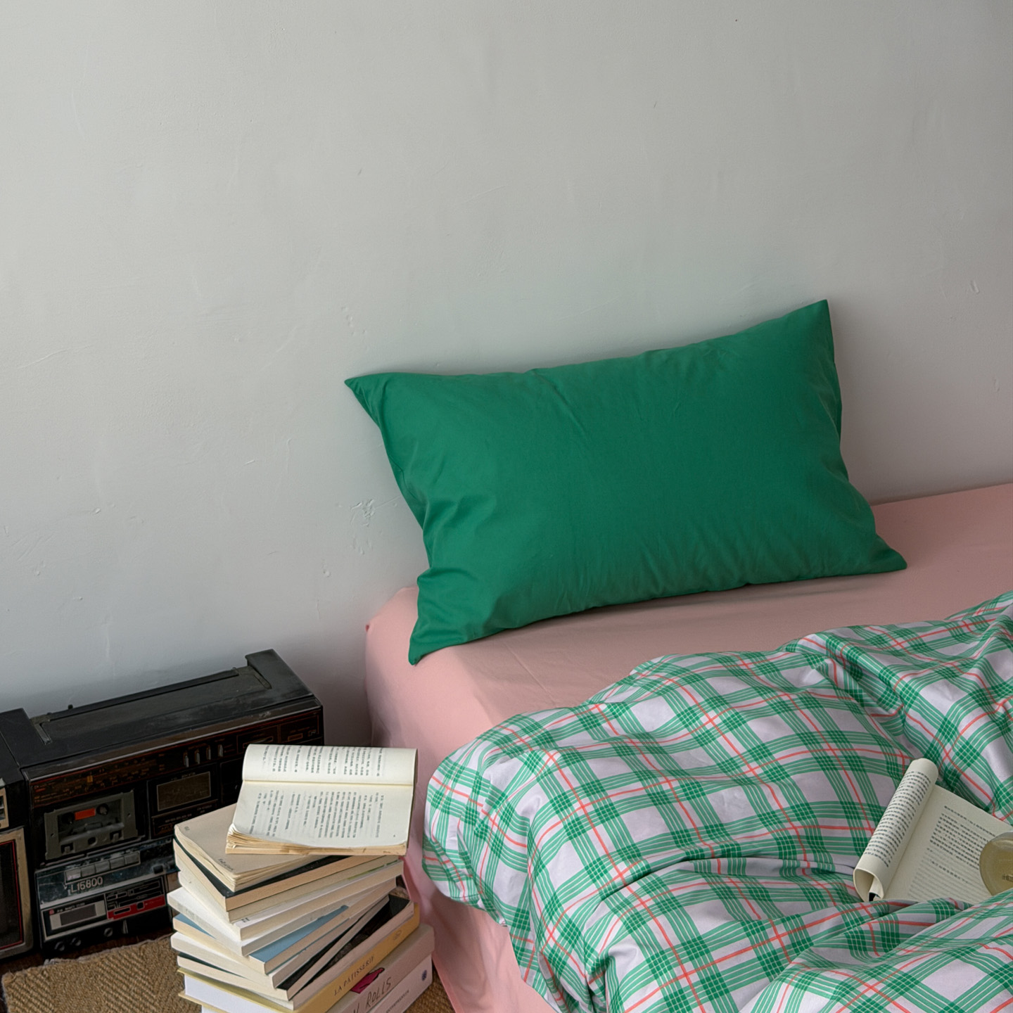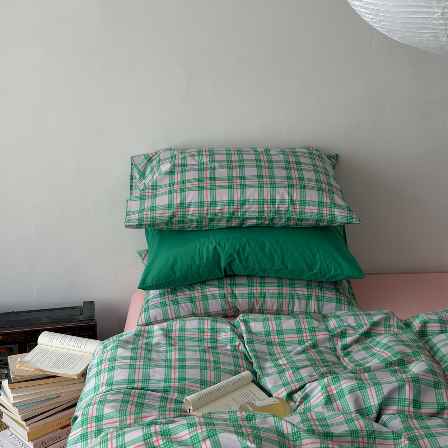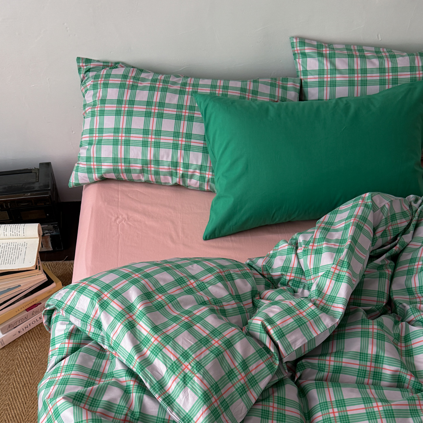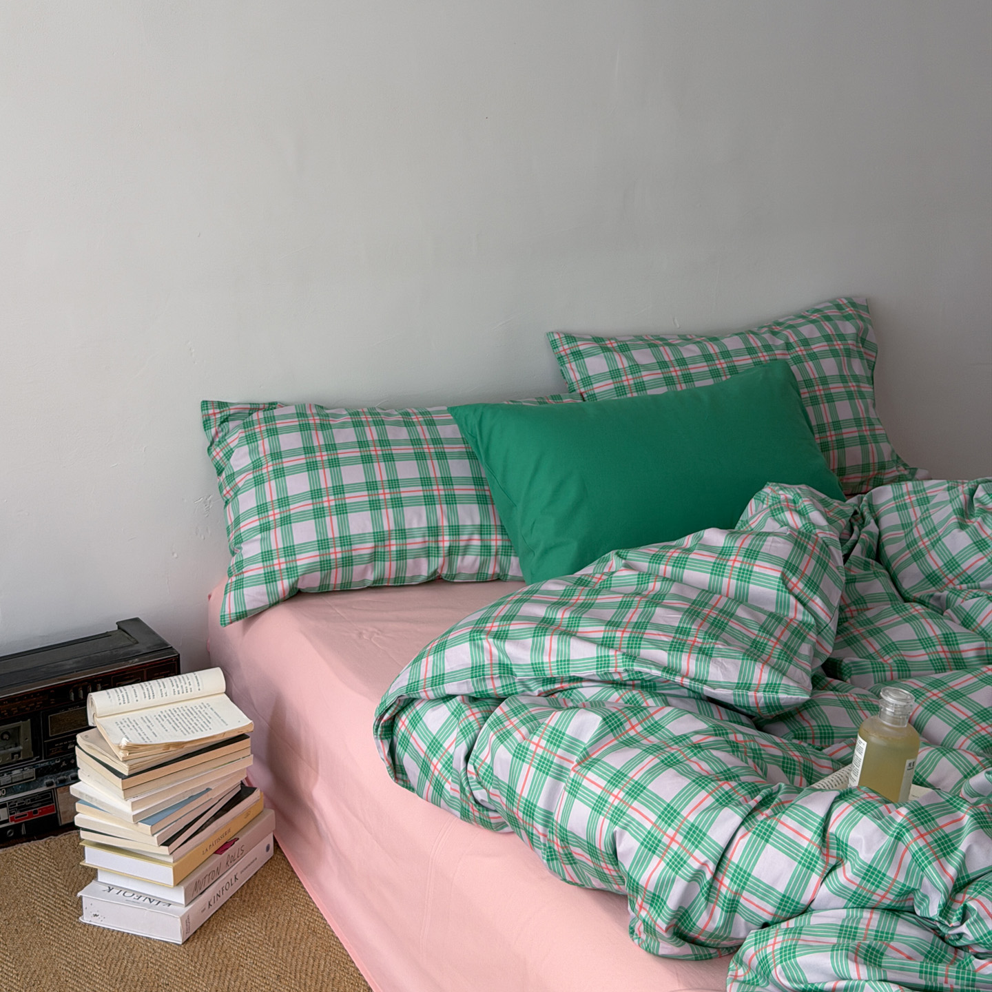 (总)艾沁家纺 2026新款13372全棉数码印花小清新格子四件套-蜜桃青柠