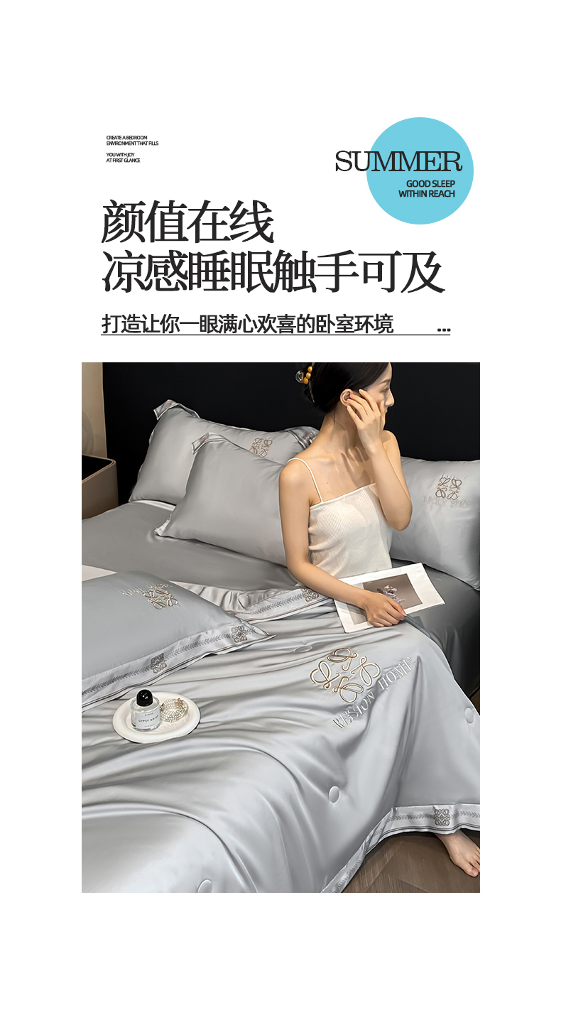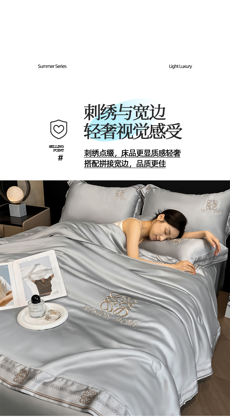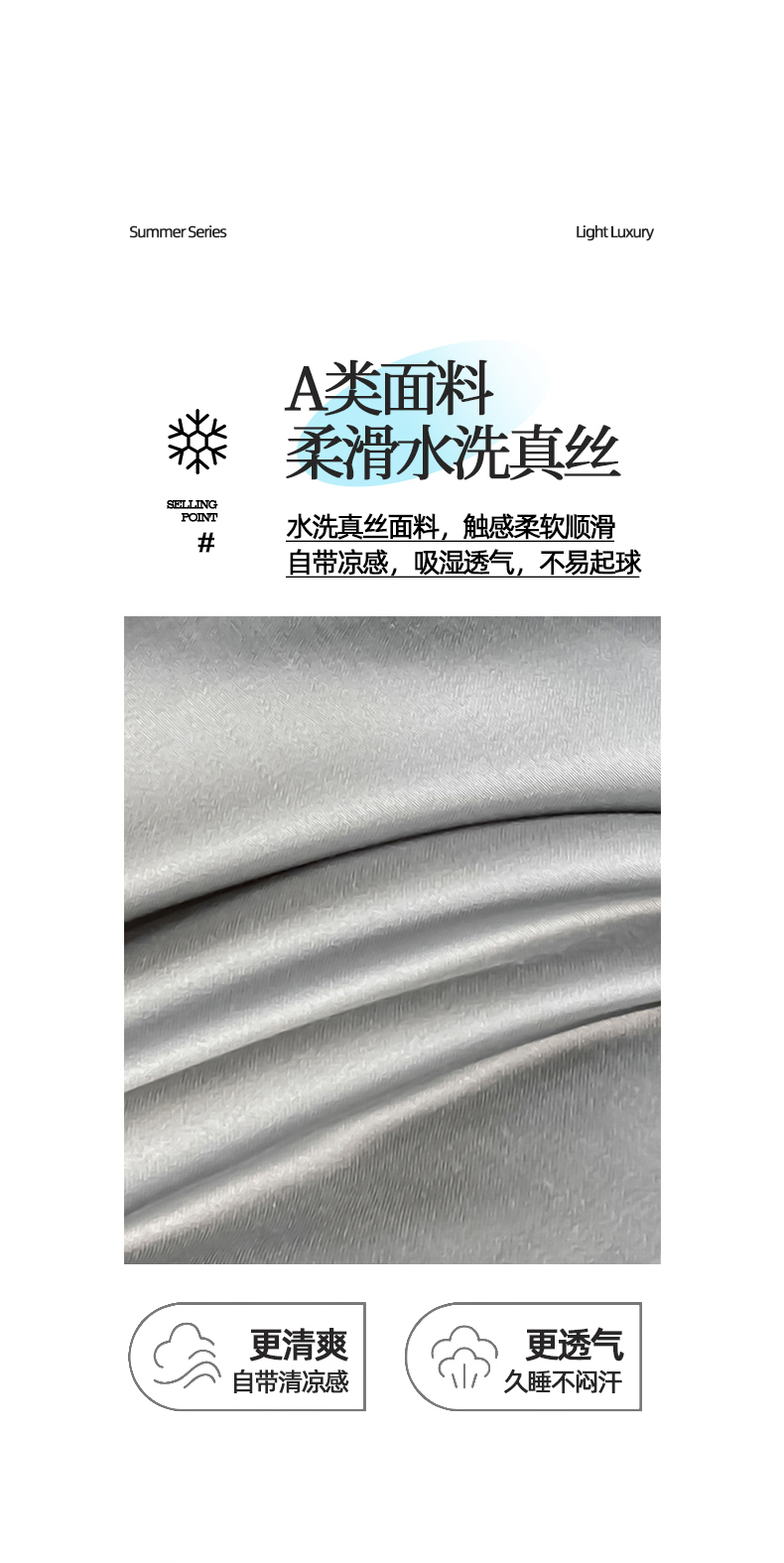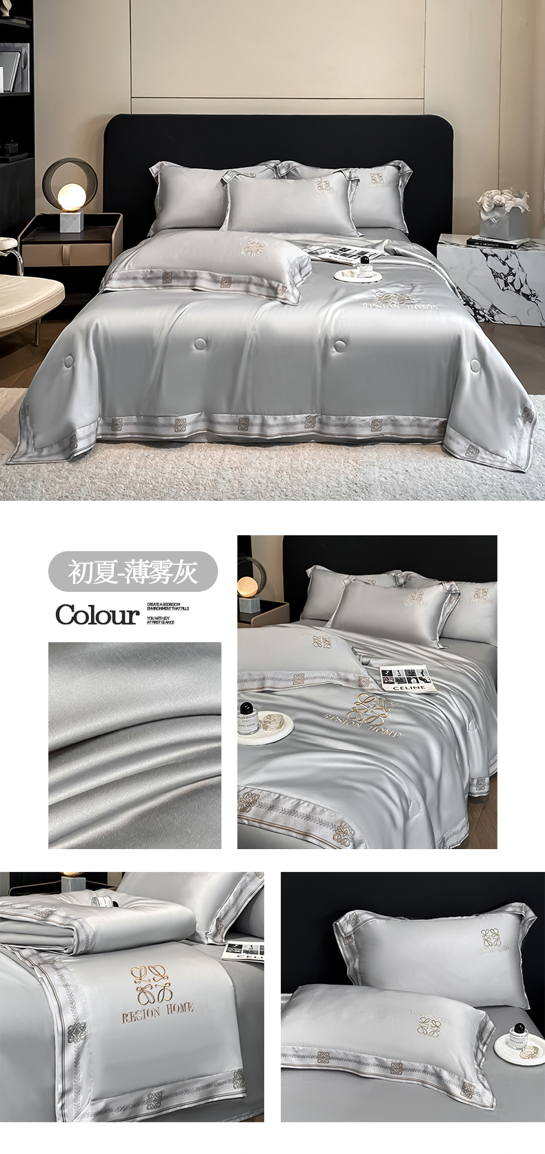 • 91家纺网 家纺一手货源 找家纺 露梦家纺 2026新款初夏水洗真丝夏被四件套 初夏-薄雾灰