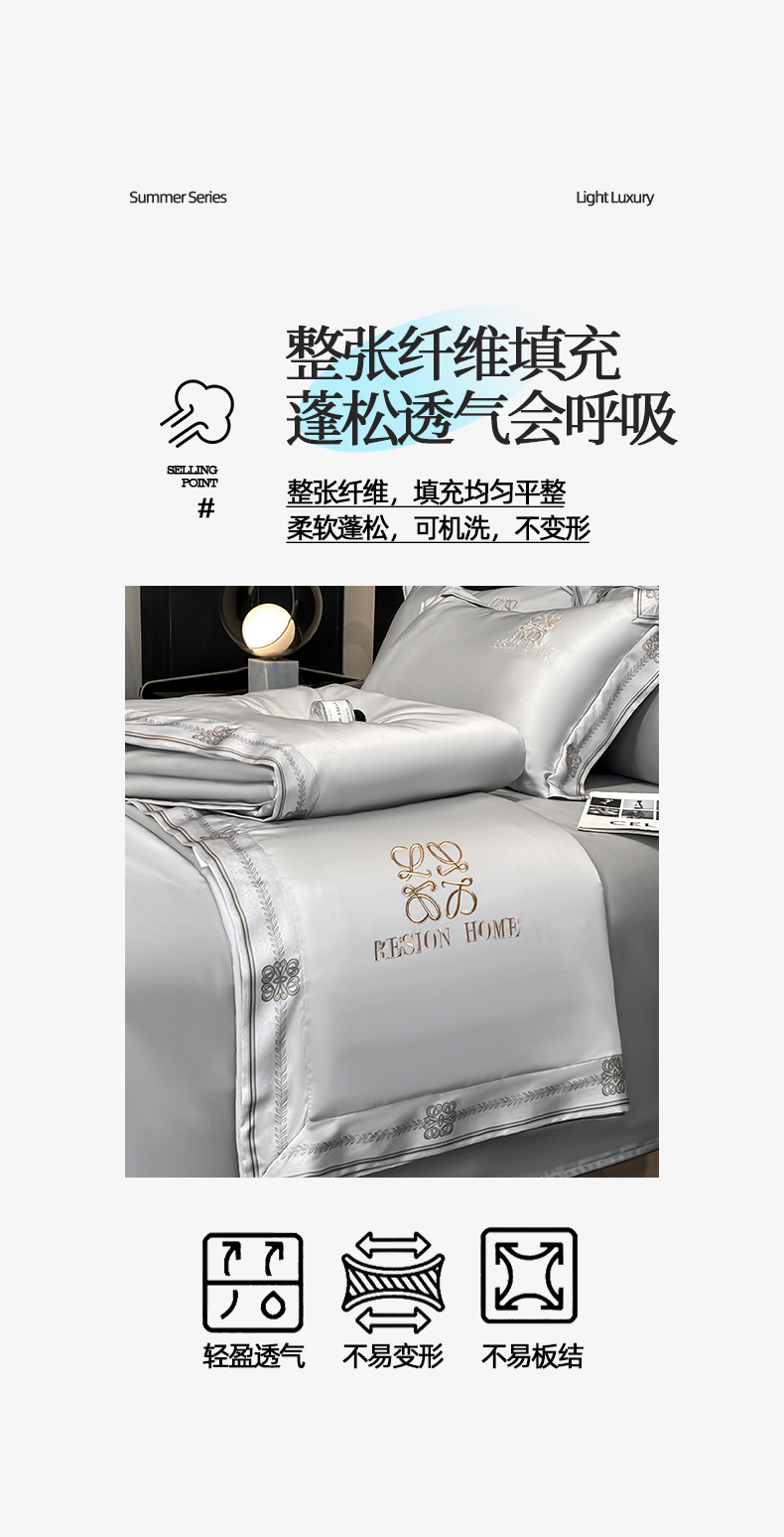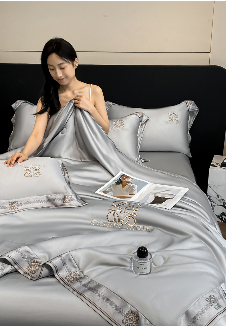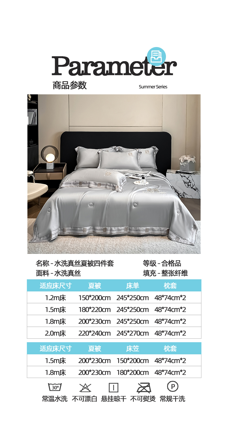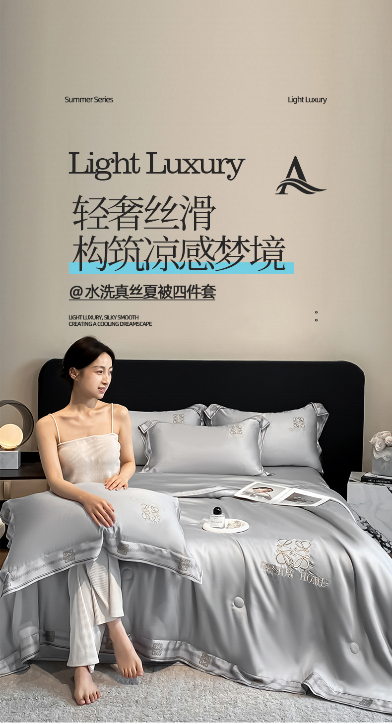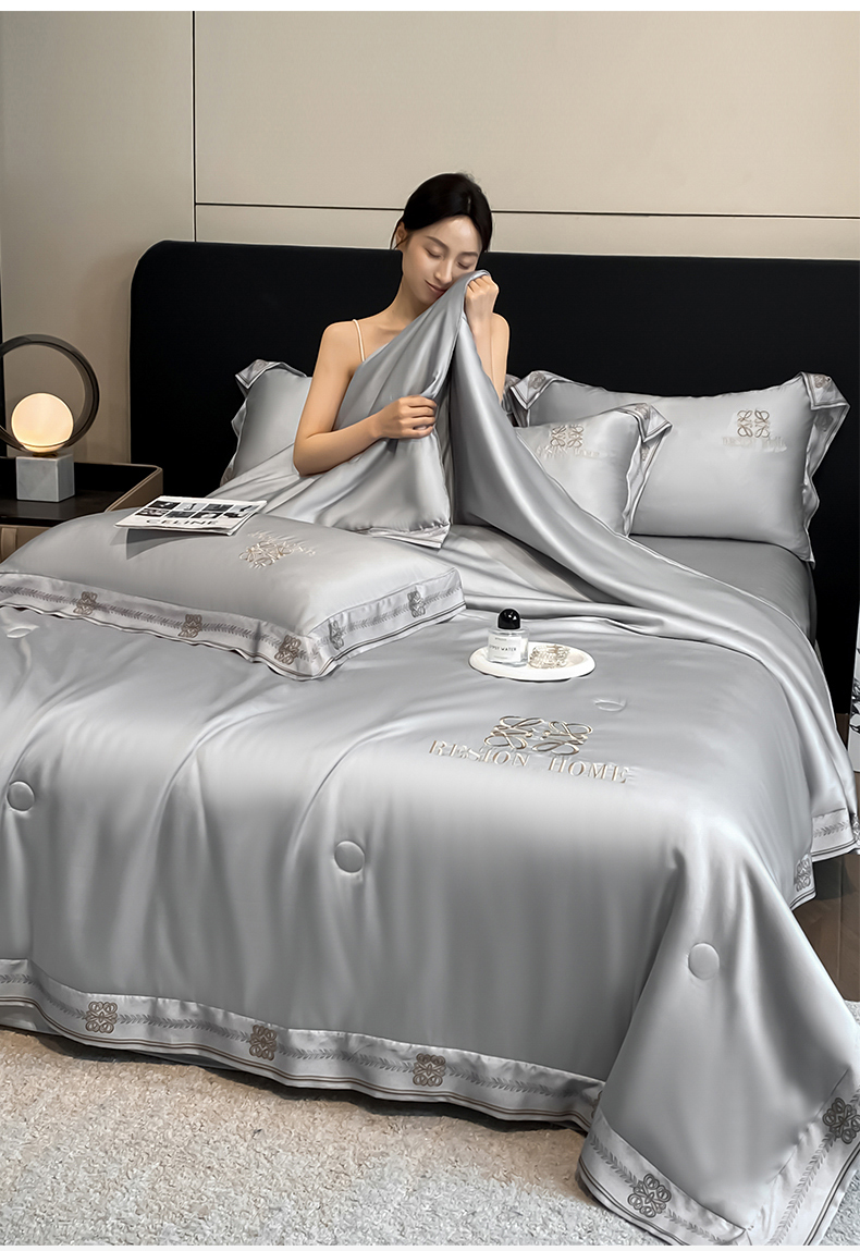 • 91家纺网 家纺一手货源 找家纺 露梦家纺 2026新款初夏水洗真丝夏被四件套 初夏-薄雾灰