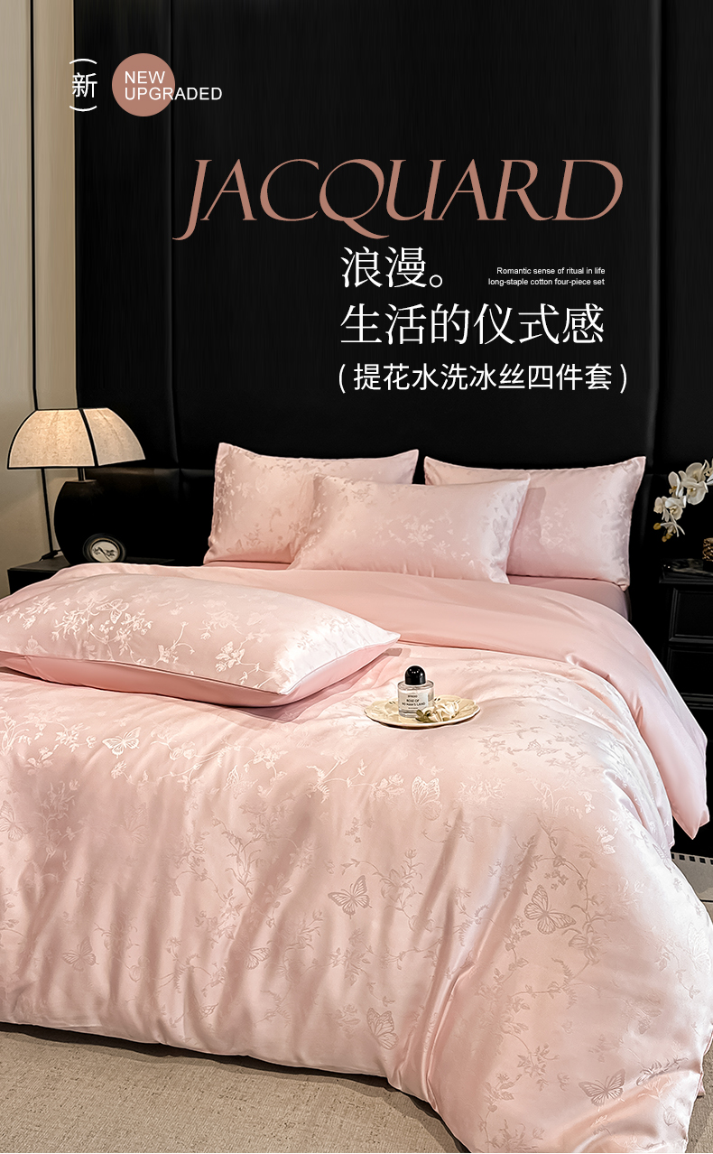 当前位置: 91家纺网 > 商品网购 > 床品套件 > 四件套 > 其它四件套 > 顺兴家居 2026新款提花水洗真丝四件套 雾中花影-粉玉