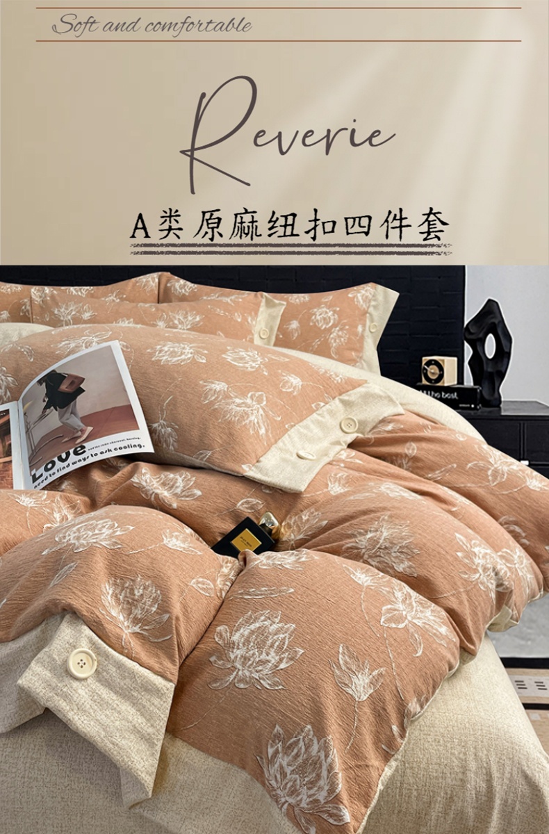当前位置: 91家纺网 > 商品网购 > 床品套件 > 四件套 > 其它四件套 > 圣比熊 2026春夏新款A类原麻纽扣四件套加厚被套床单宿舍双人床仿亚麻套件-最新款 映山客
