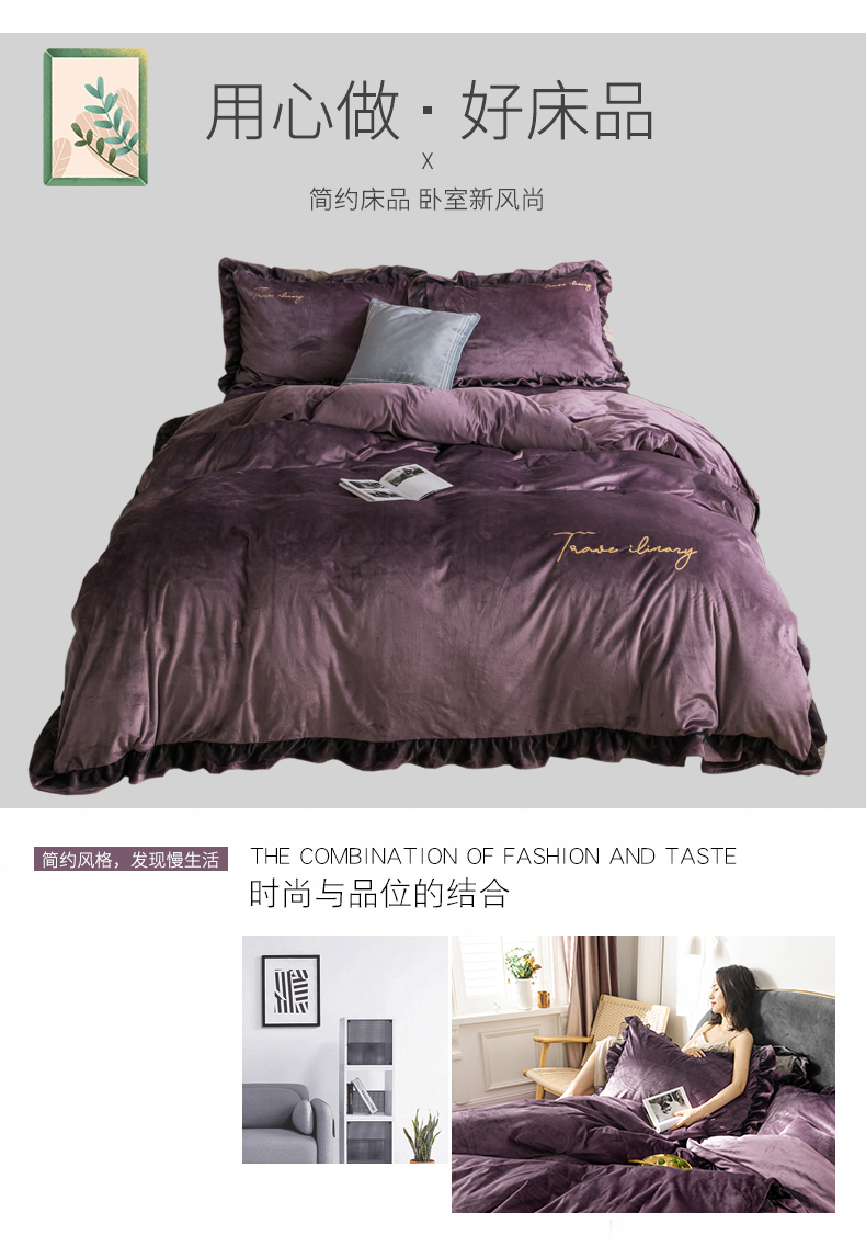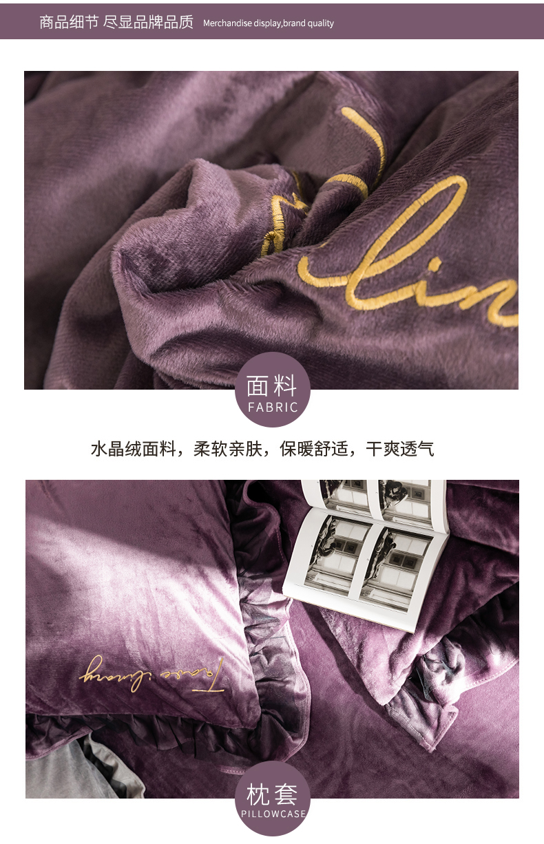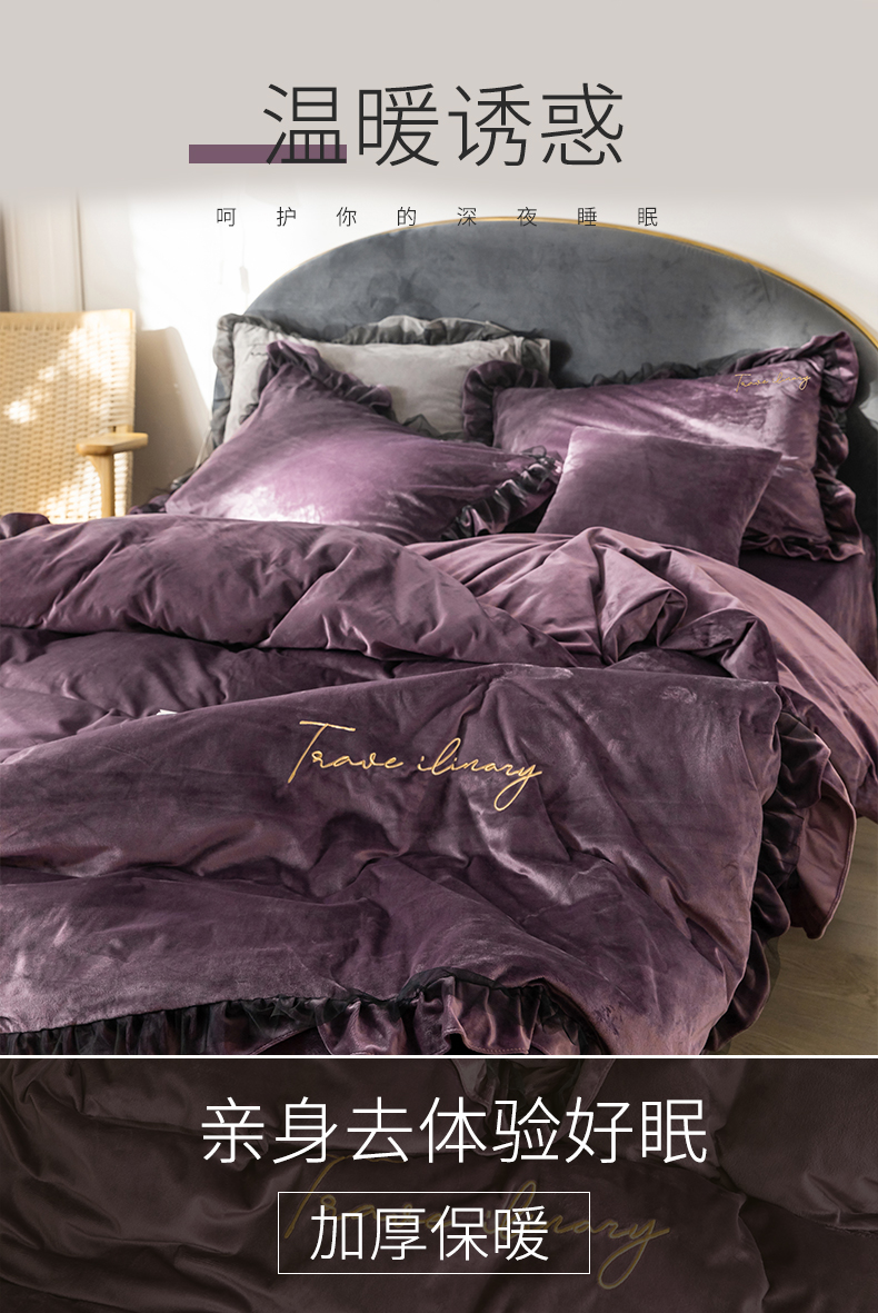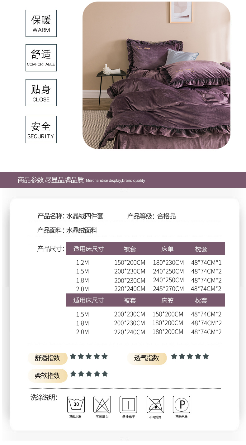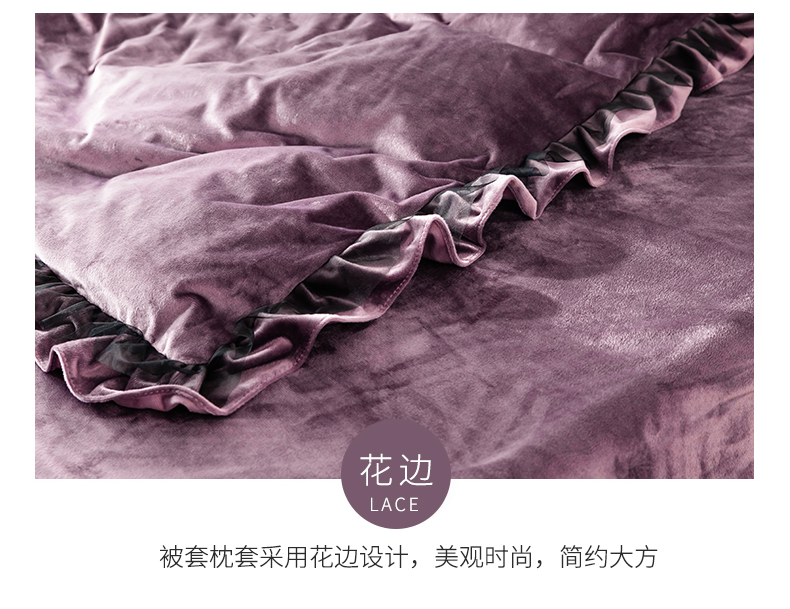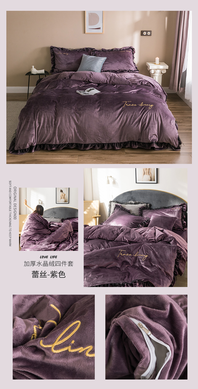 商品名称:润缦 2019新款水晶绒蕾丝边四件套 蕾丝-紫色