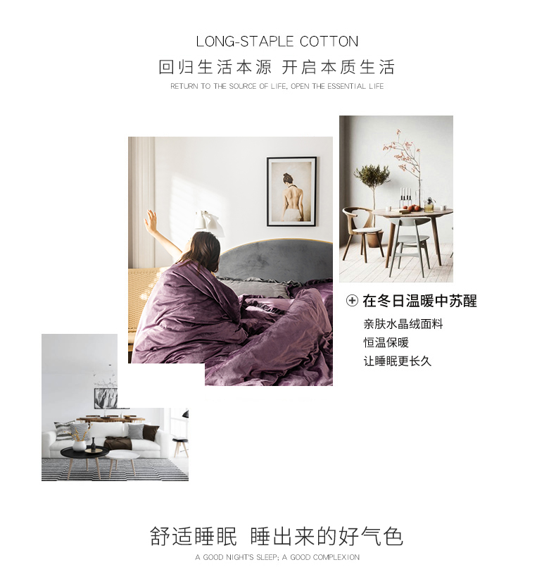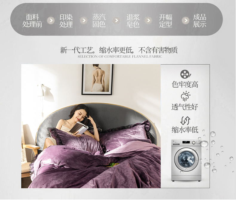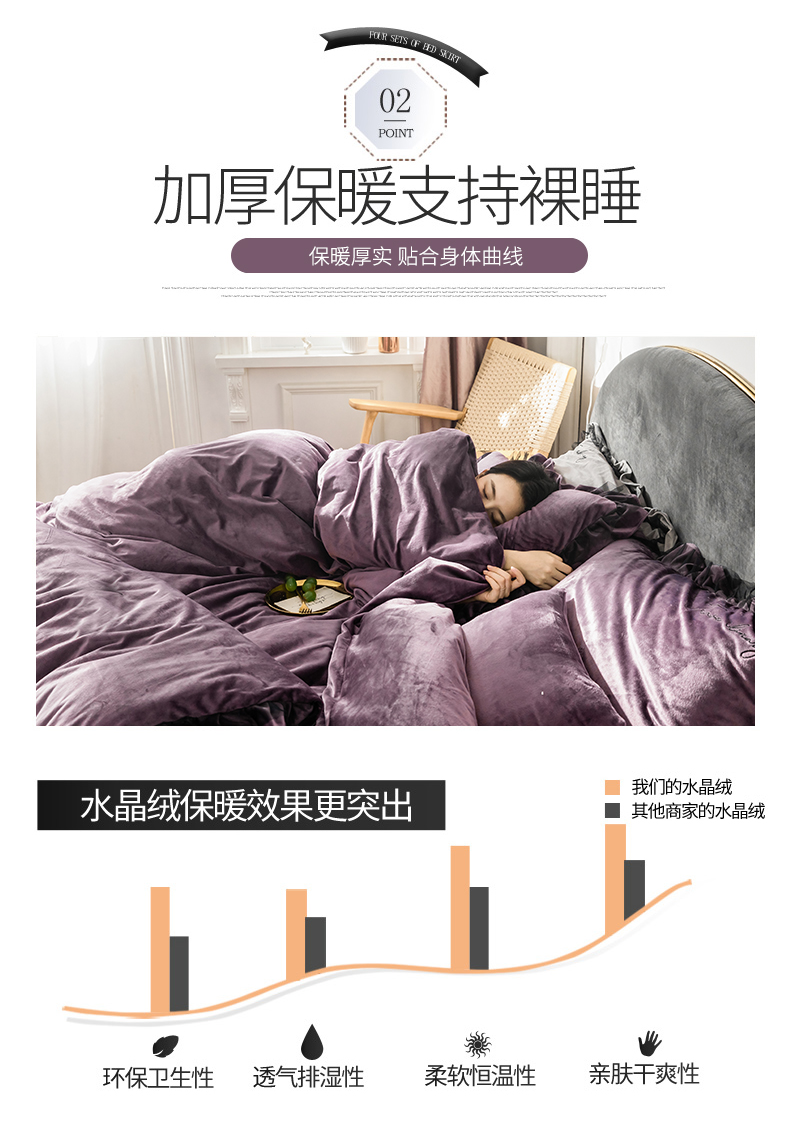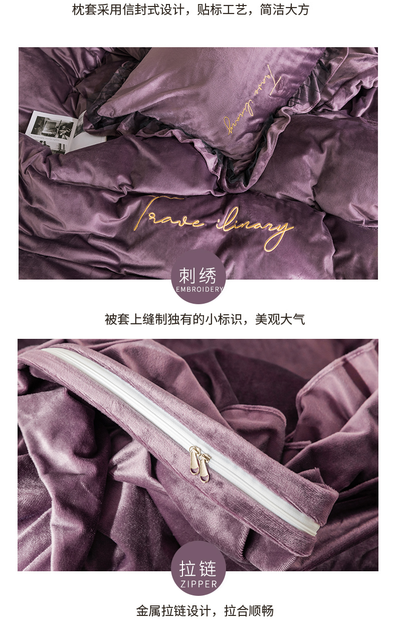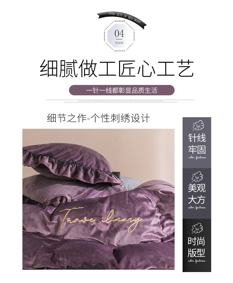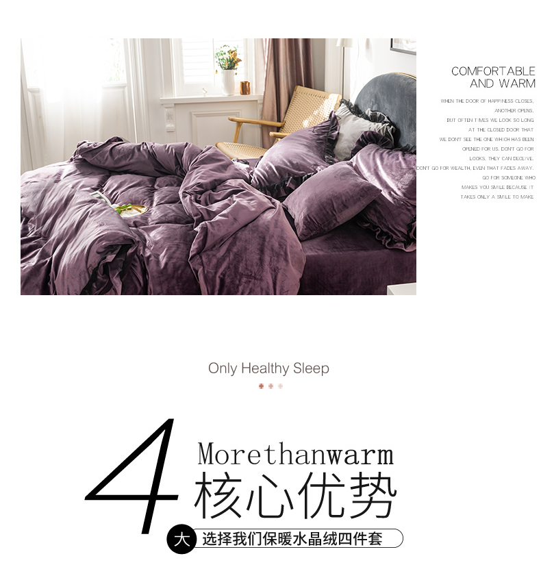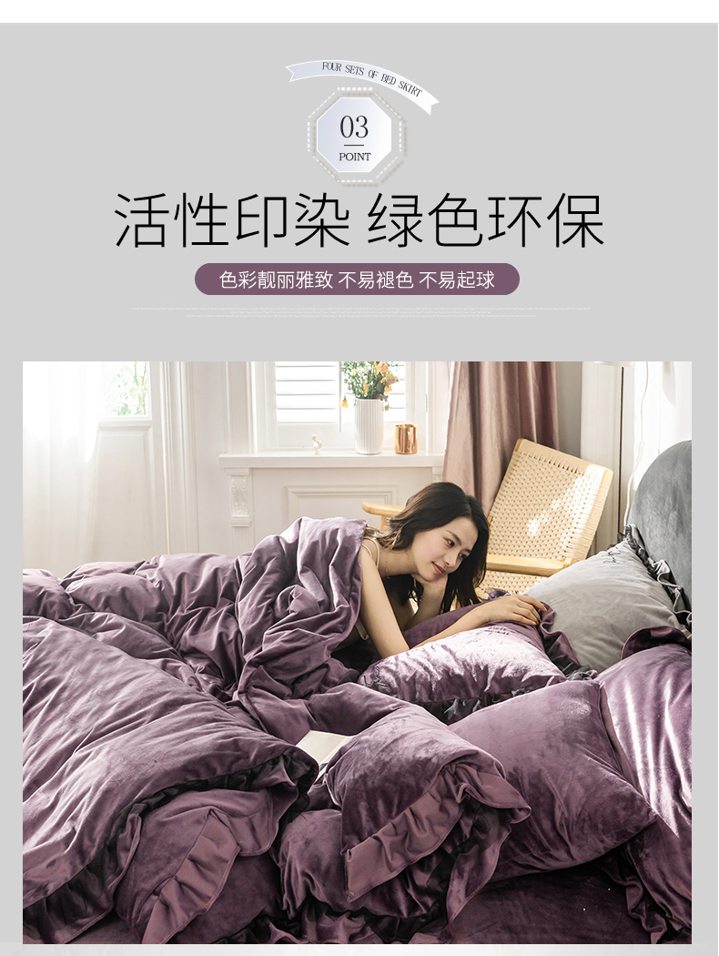 商品名称:润缦 2019新款水晶绒蕾丝边四件套 蕾丝-紫色