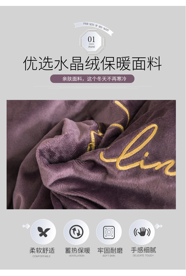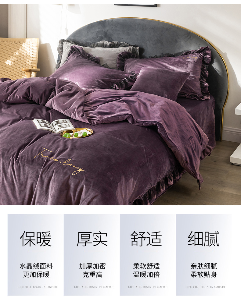 润缦 2019新款水晶绒蕾丝边四件套 蕾丝-紫色