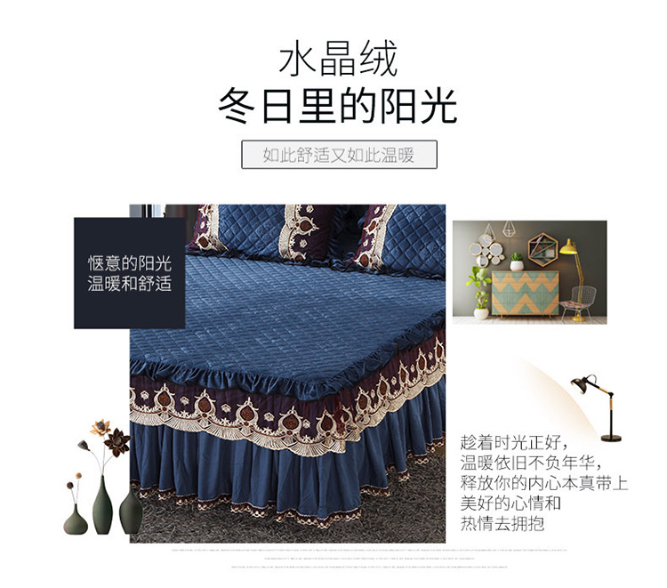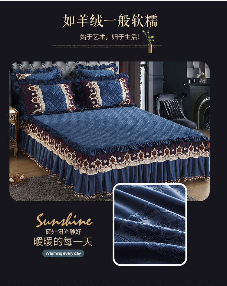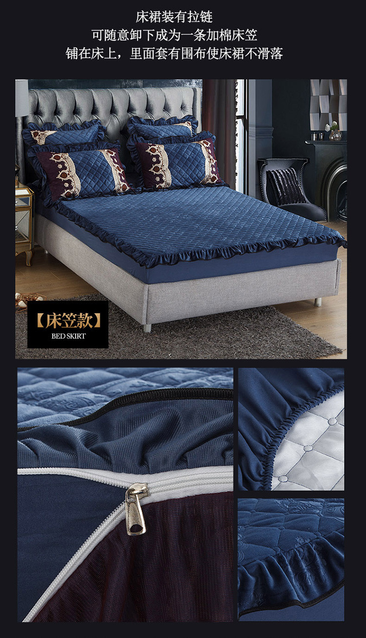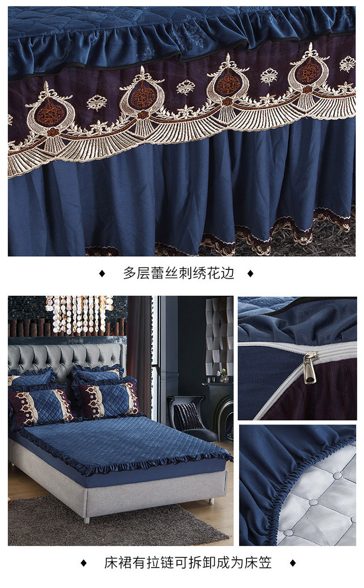 商品名称:兴美佳水晶绒压花拉链款单床裙-豪庭盛世 宝石蓝