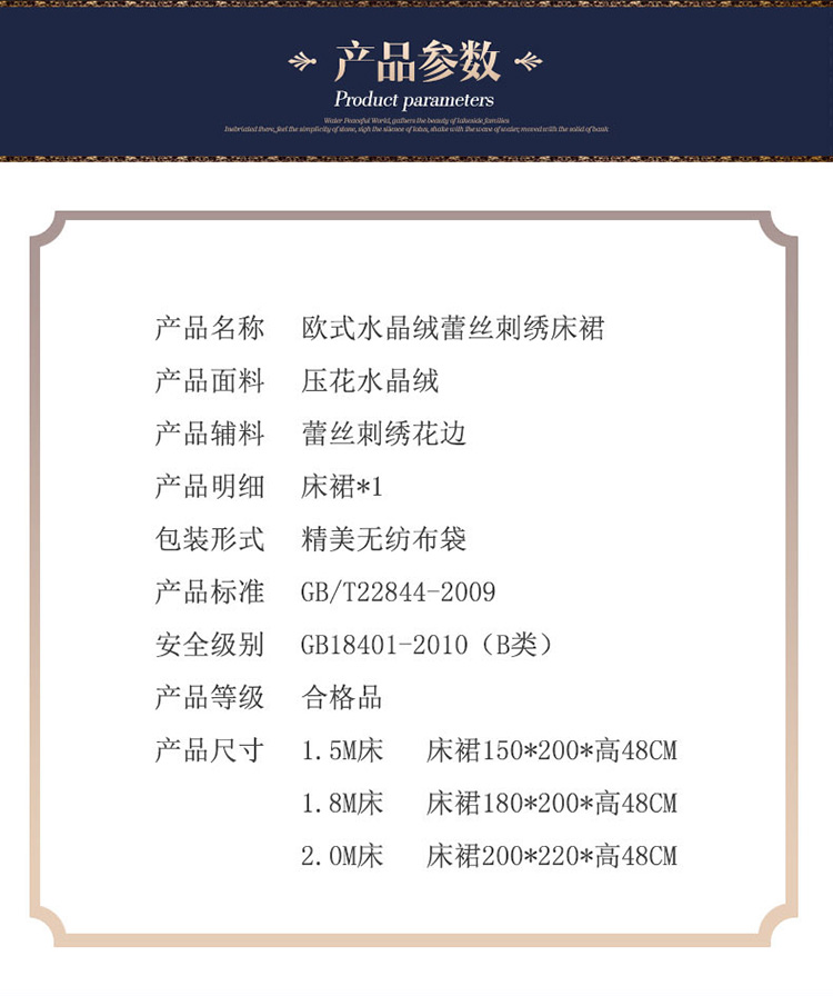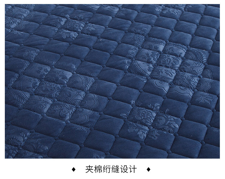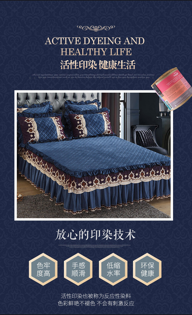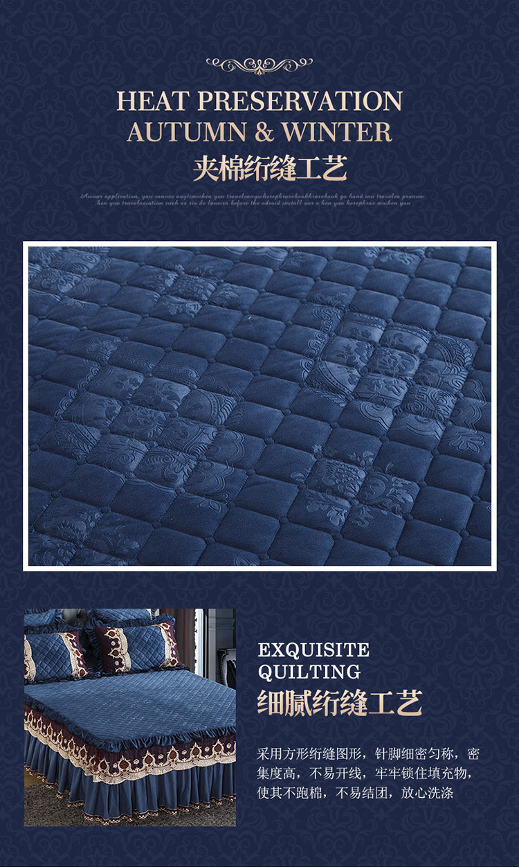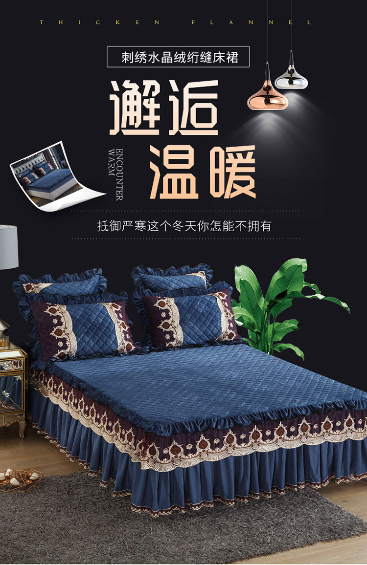 商品名称:兴美佳水晶绒压花拉链款单床裙-豪庭盛世 宝石蓝