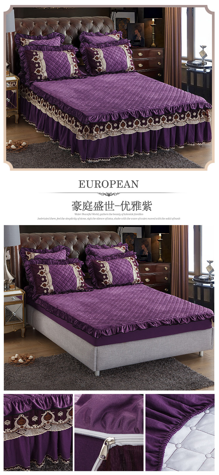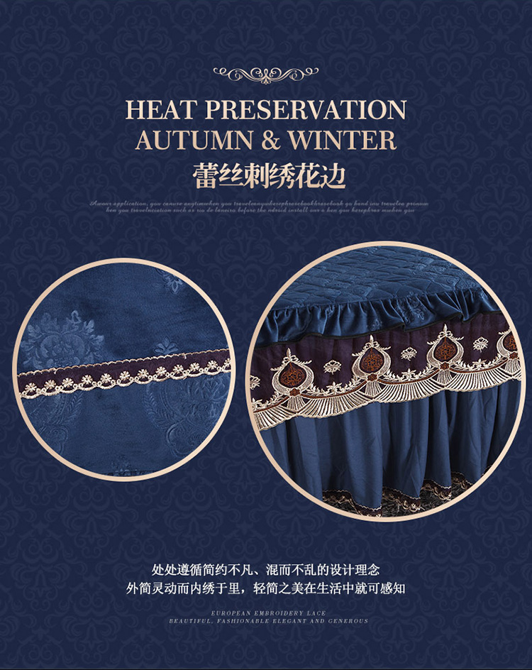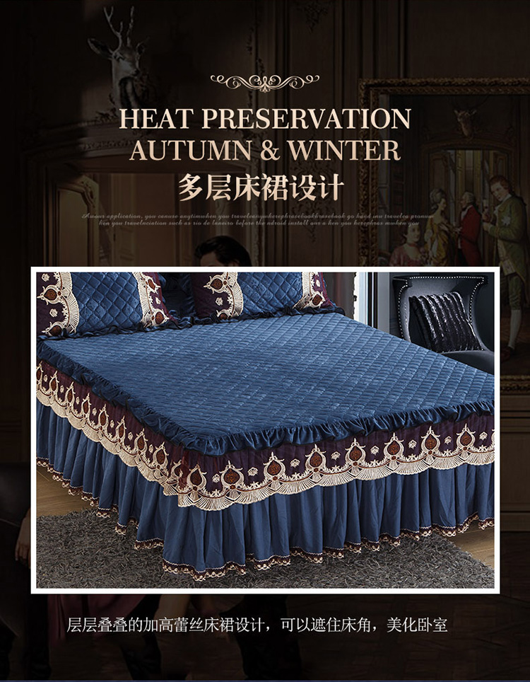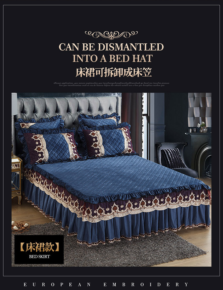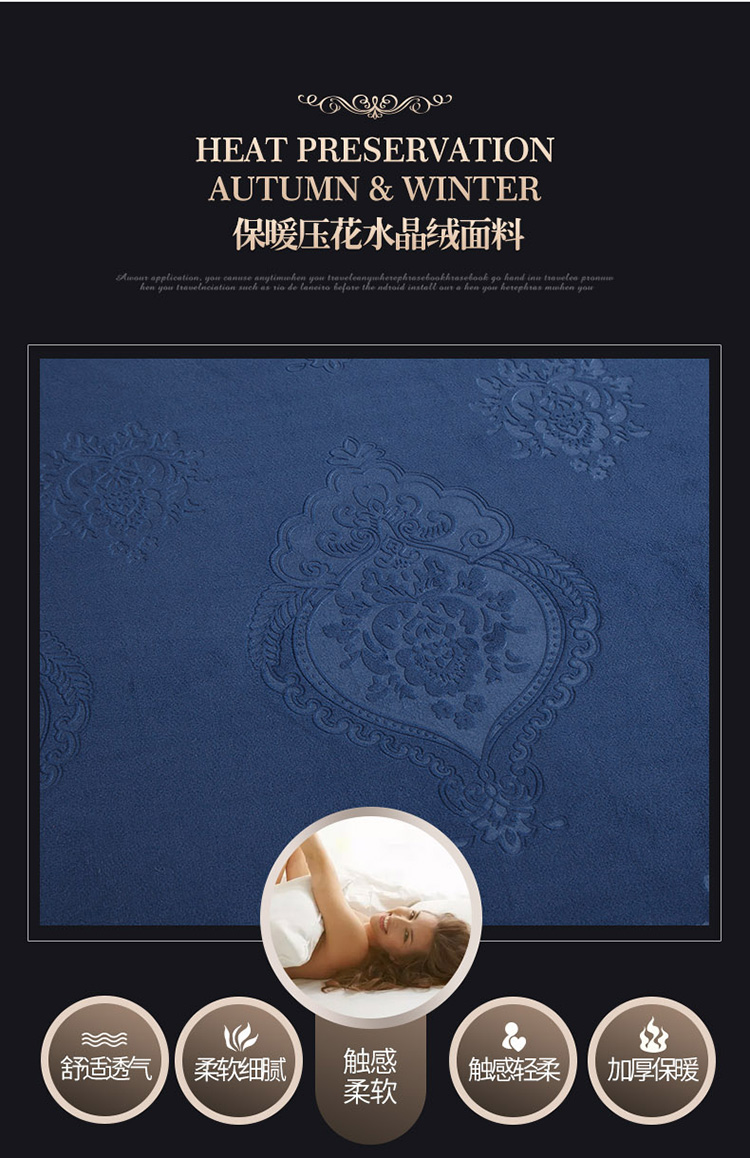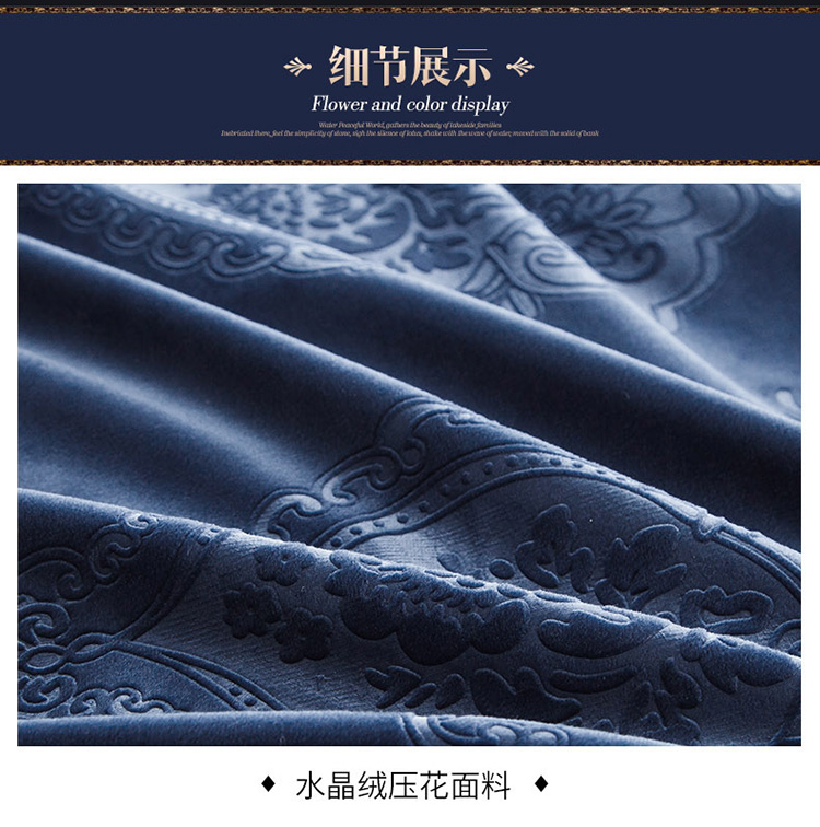 兴美佳水晶绒压花拉链款单床裙-豪庭盛世 宝石蓝