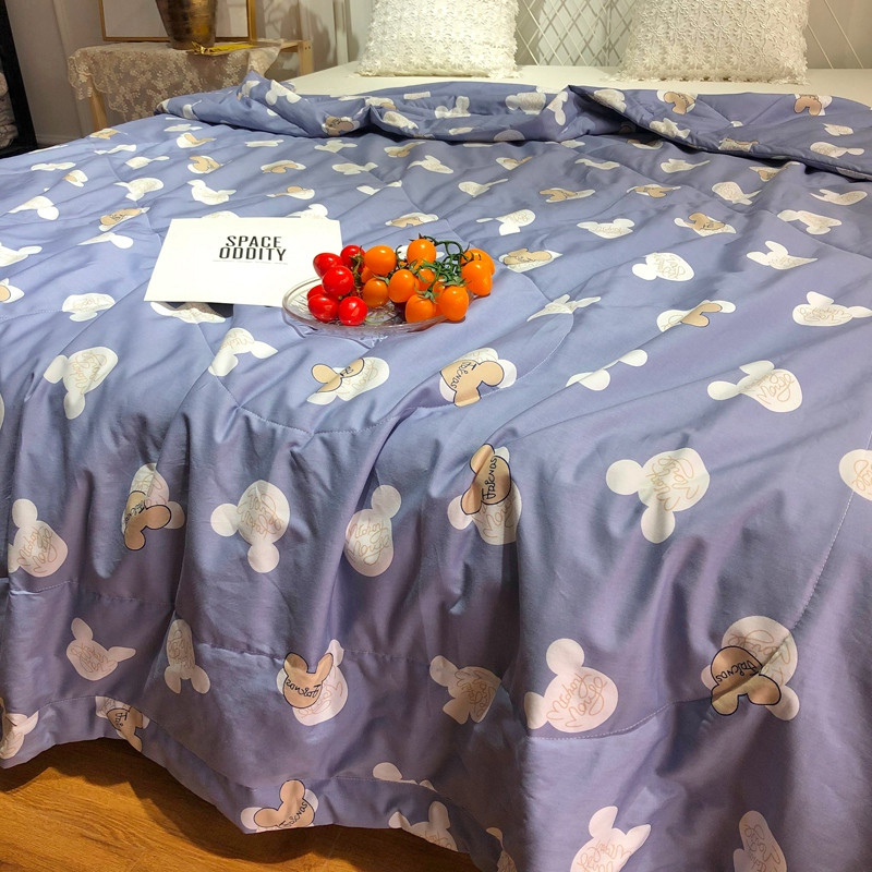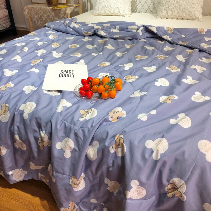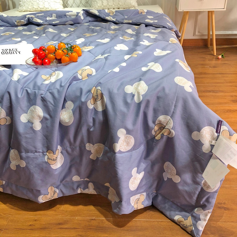 润缦 2020新款纯棉全棉精梳棉夏被 米奇蓝灰