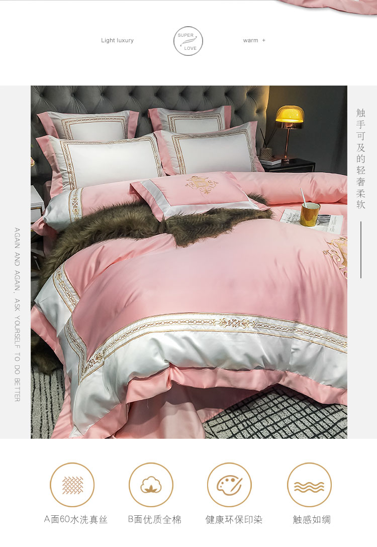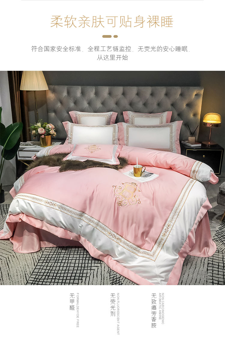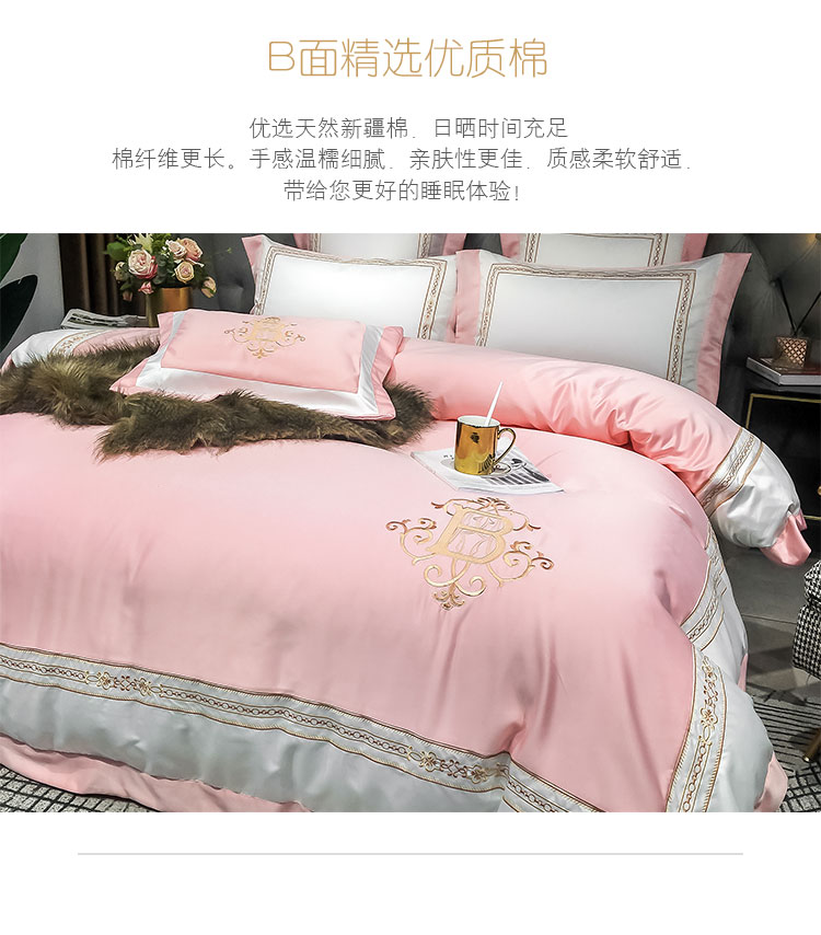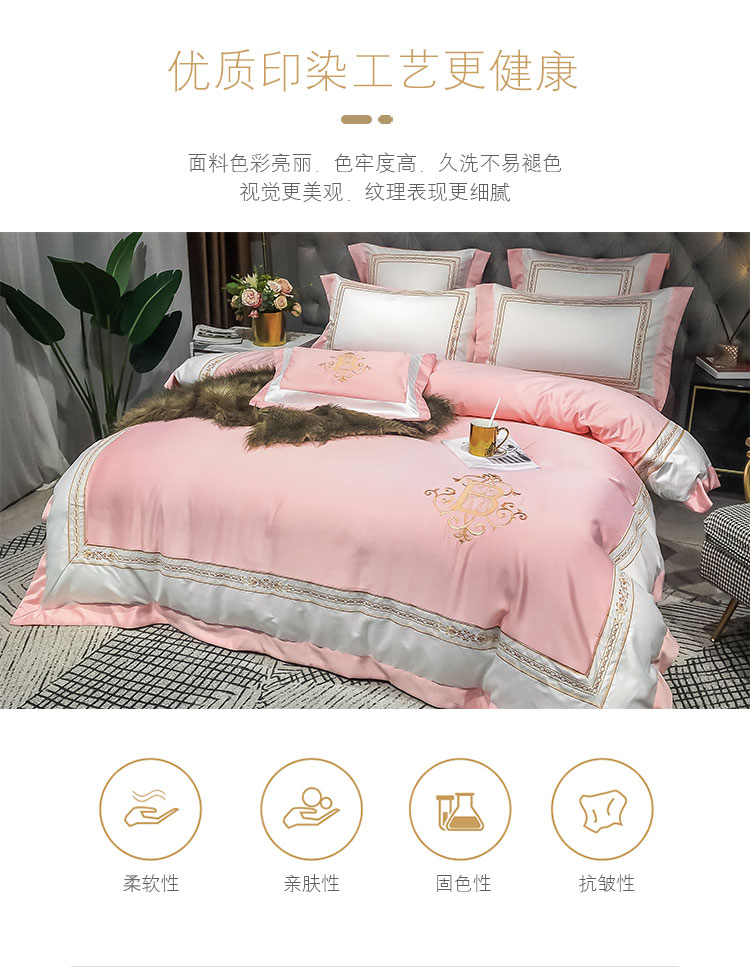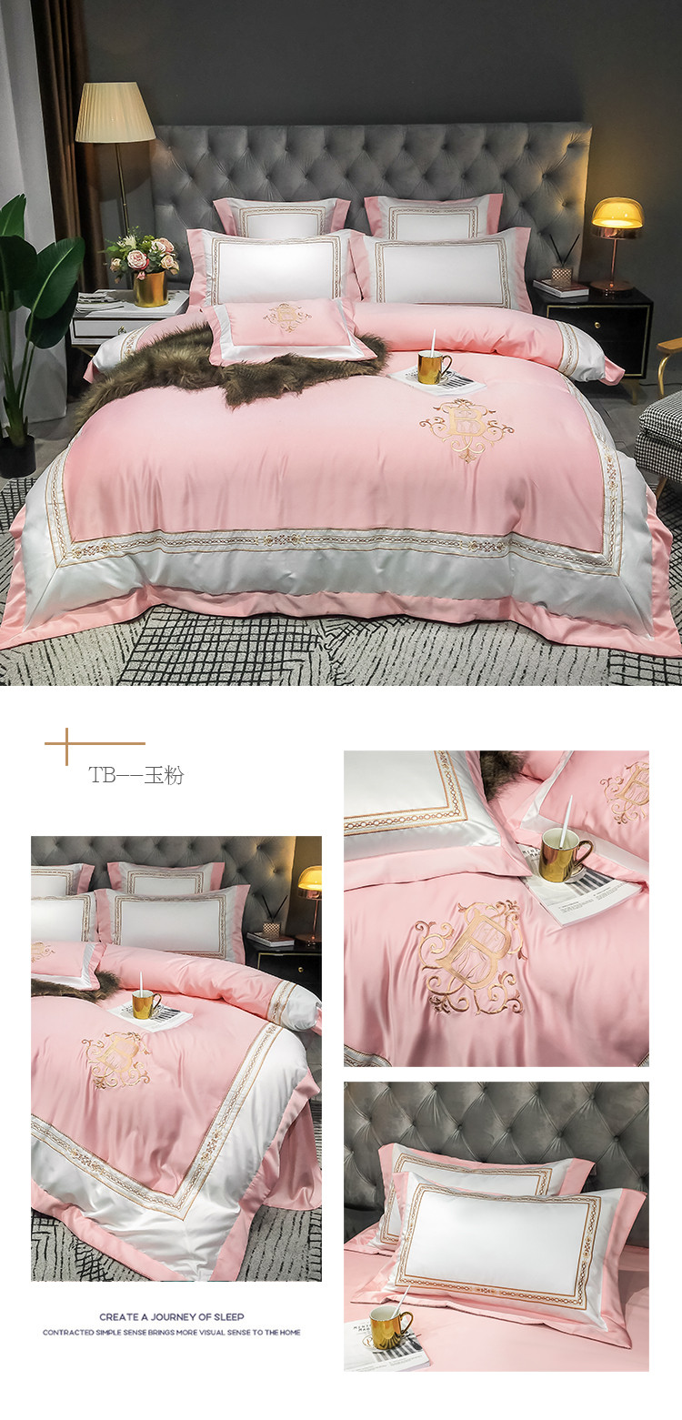 商品名称:安妮家居 2020新款TB大牌风贡缎全棉四件套影棚图 玉粉