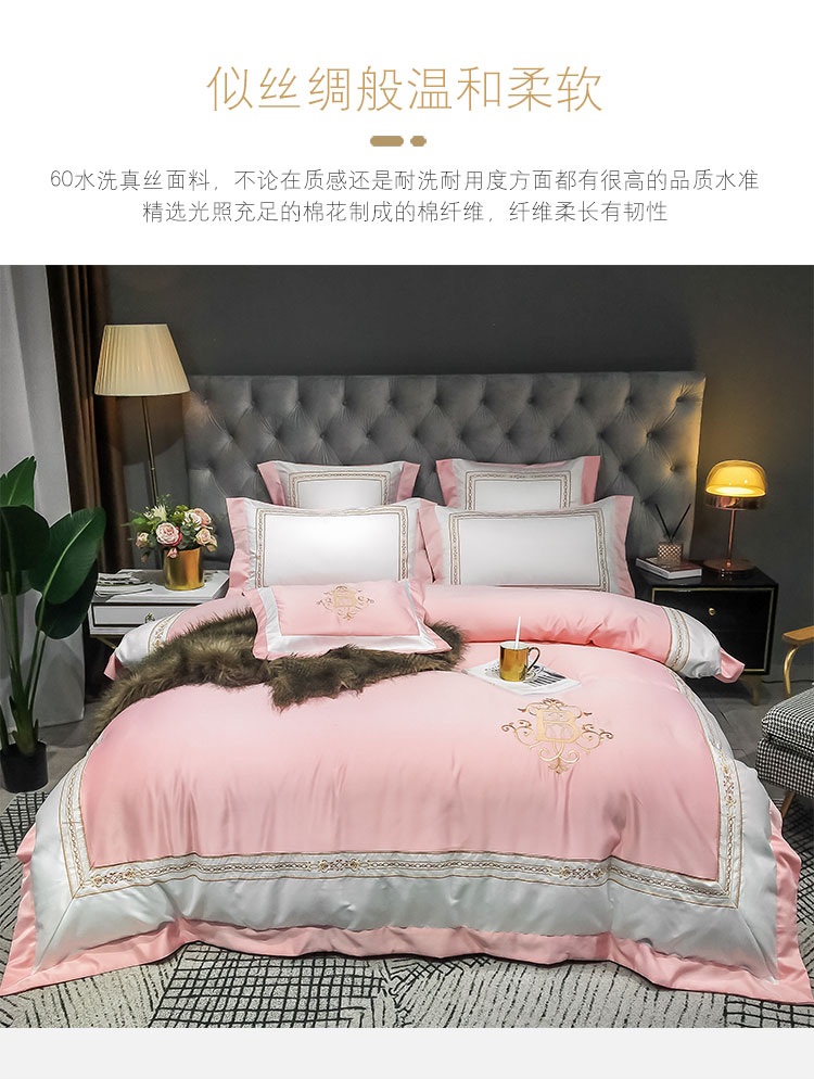 安妮家居 2020新款TB大牌风贡缎全棉四件套影棚图 玉粉